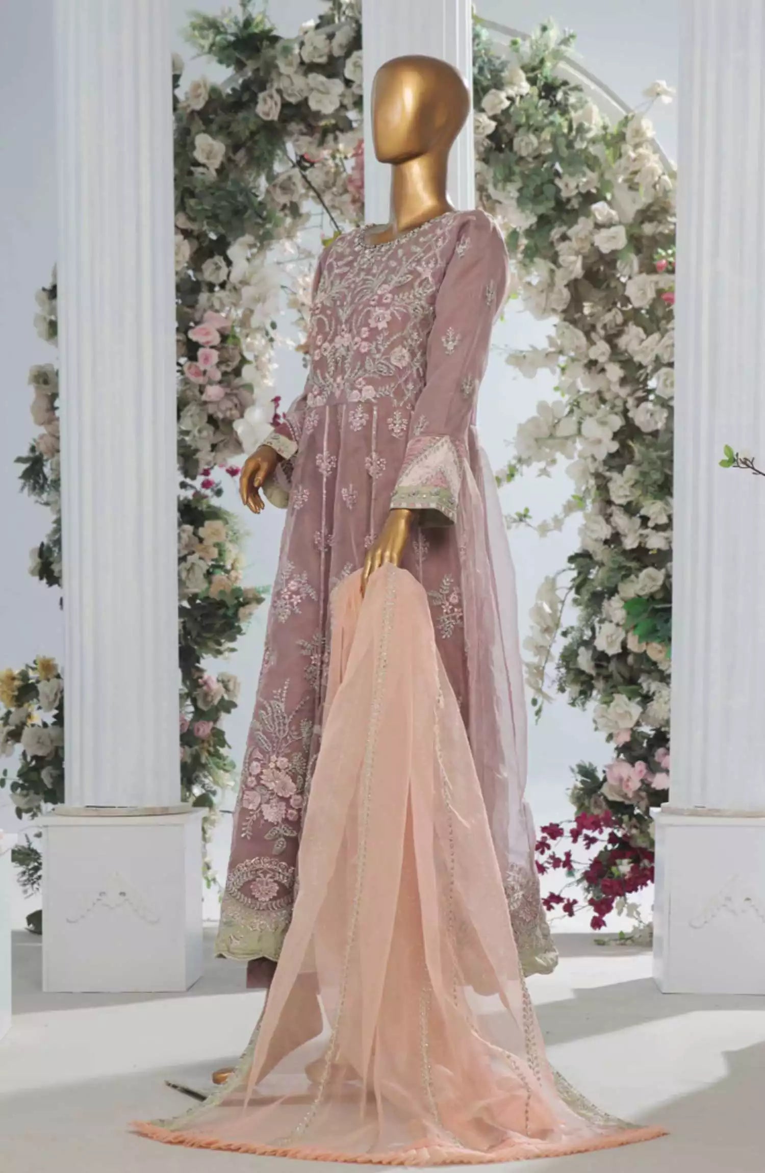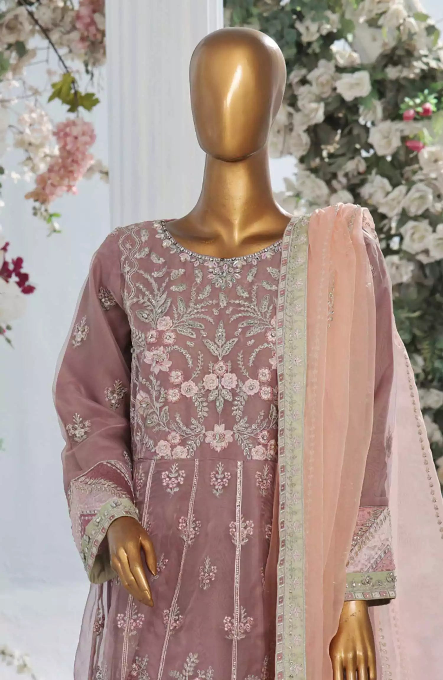 3 Piece Stitched Full Organza Embroidered Shirt with Embroidered Dupatta and Trouser .