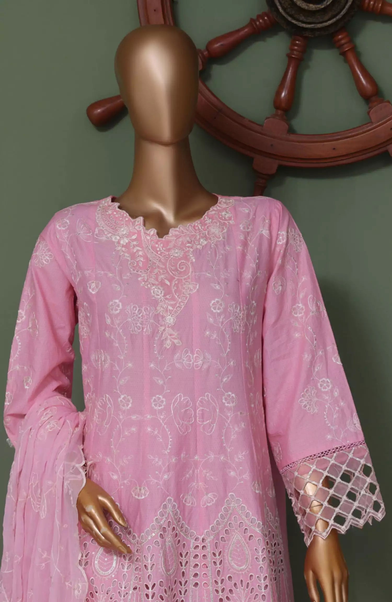 Ayla Embroidered Chambray Stitched 2 Piece Solids - EAE210105A - AY25SW - Pink - Winter Collection