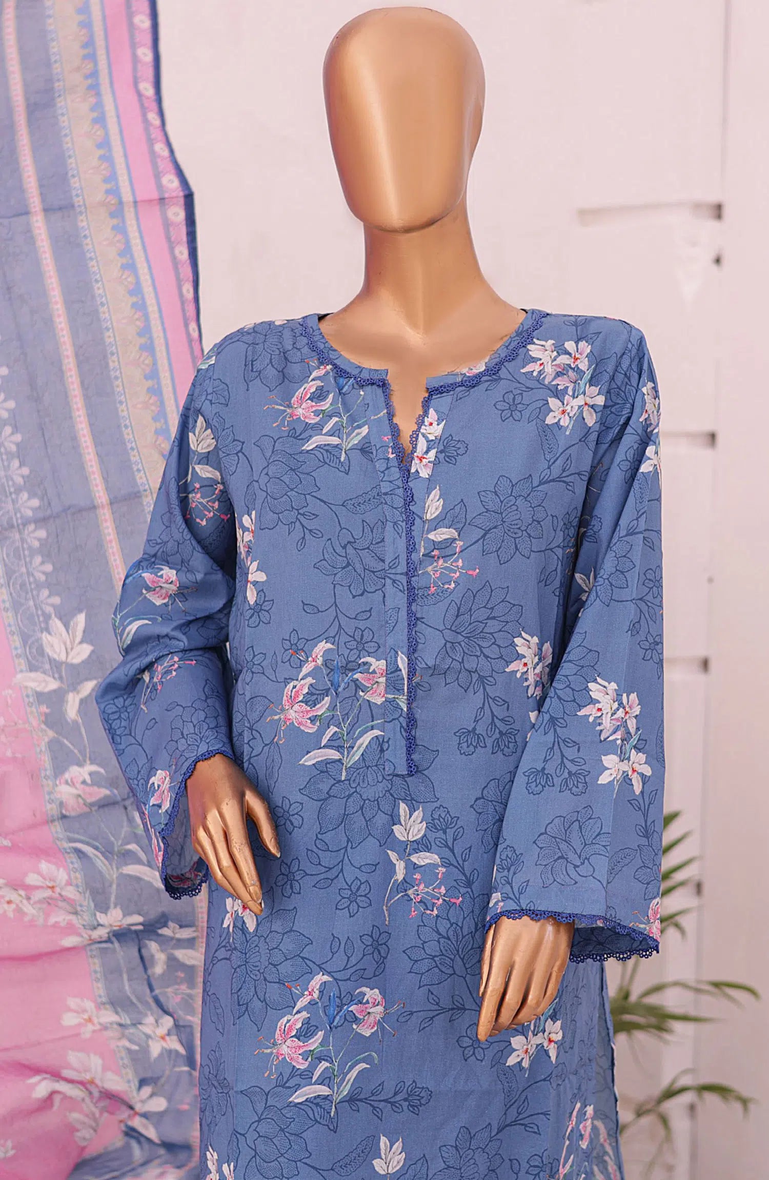 Bin Saeed Printed Lawn Collection 2024 has been styled in the image for photography and illustrative purposes.