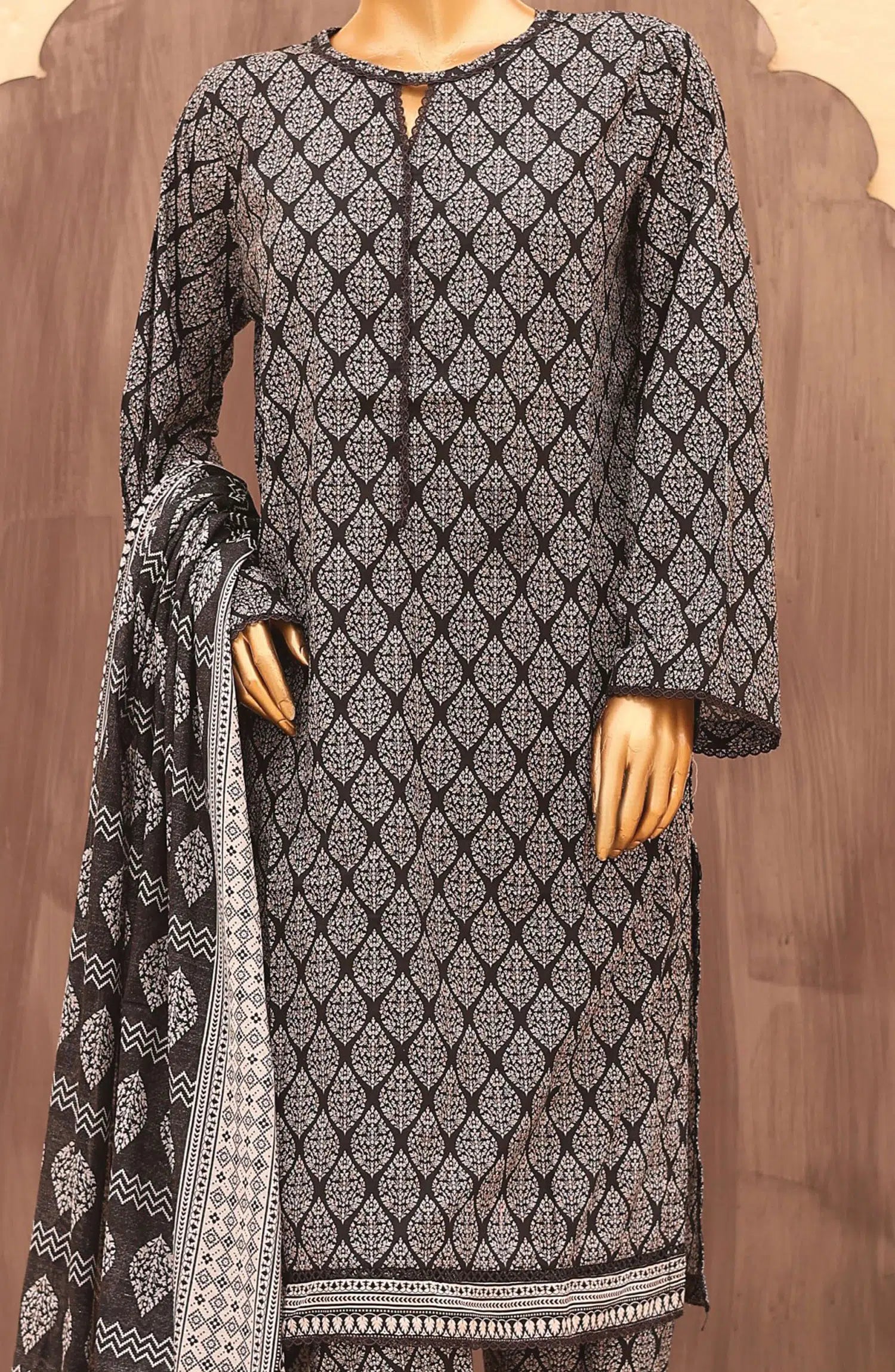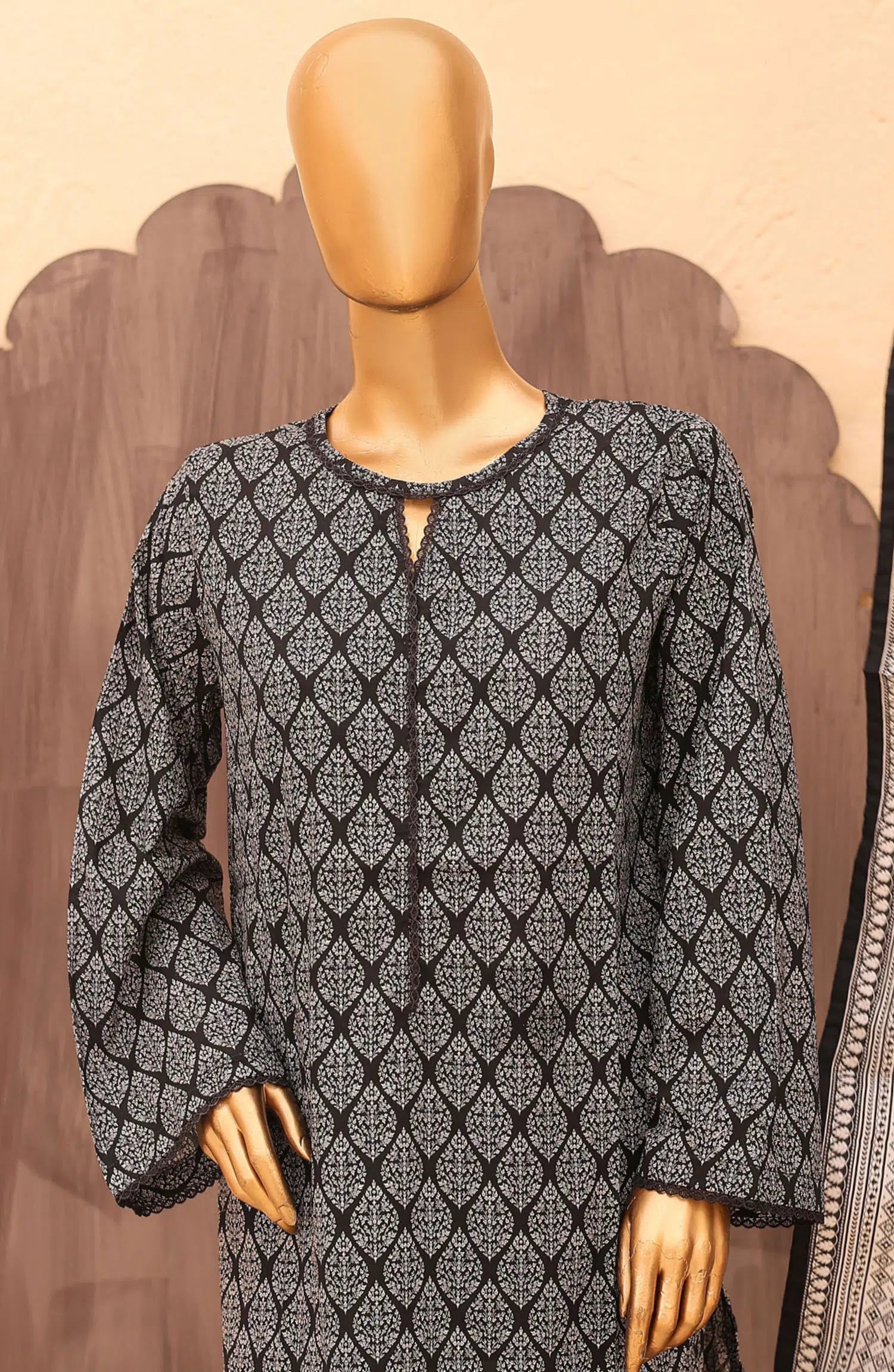 Modest Embroidered Khaddar Stitched 3 Piece Suit - 9990-Blk - MOD25WNT - Black - Winter Collection