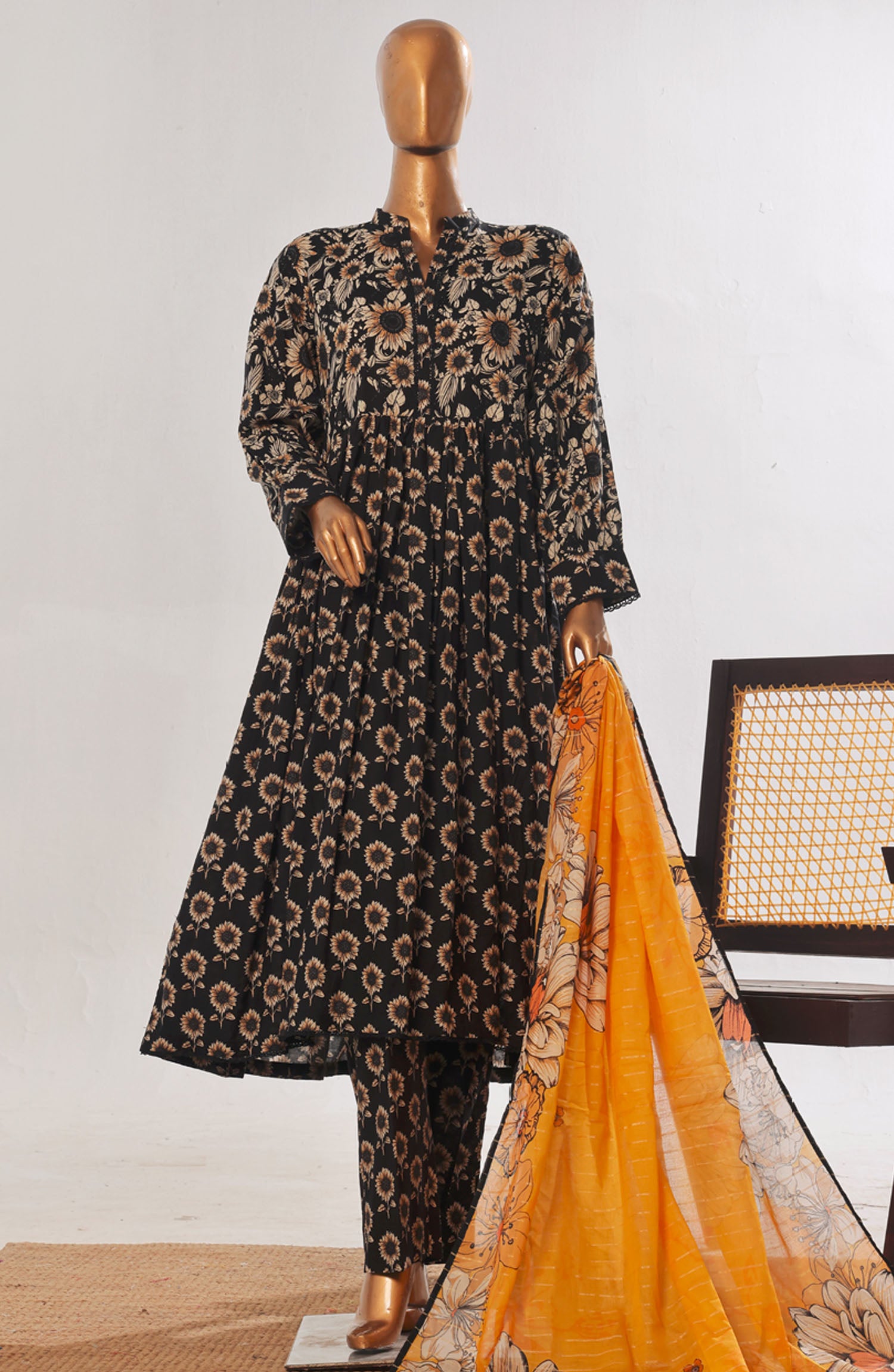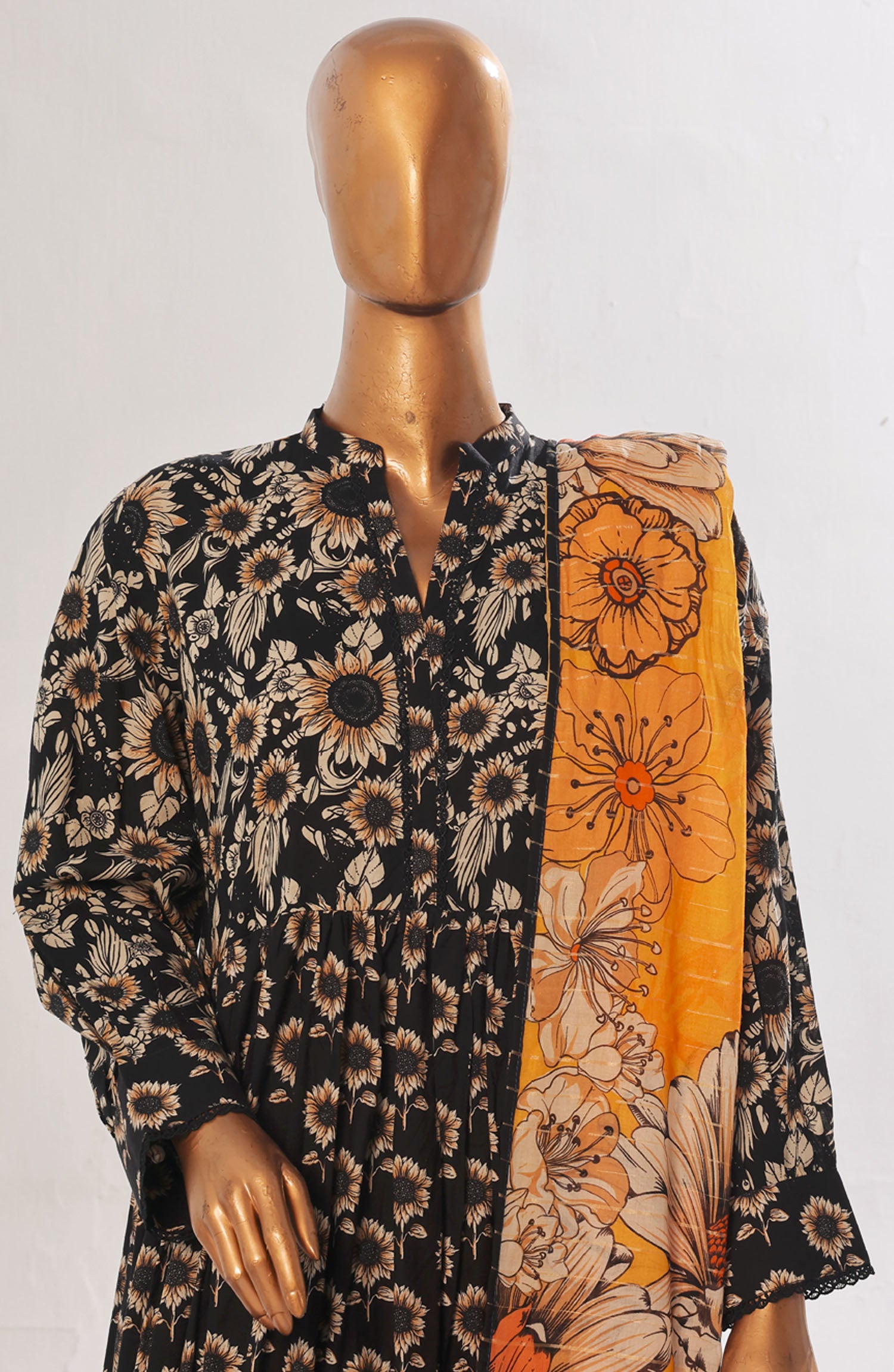 Bin Saeed Printed Lawn Stitched 3 Piece Frock - D-05 - BS25PPFC - Black - Summer Collection