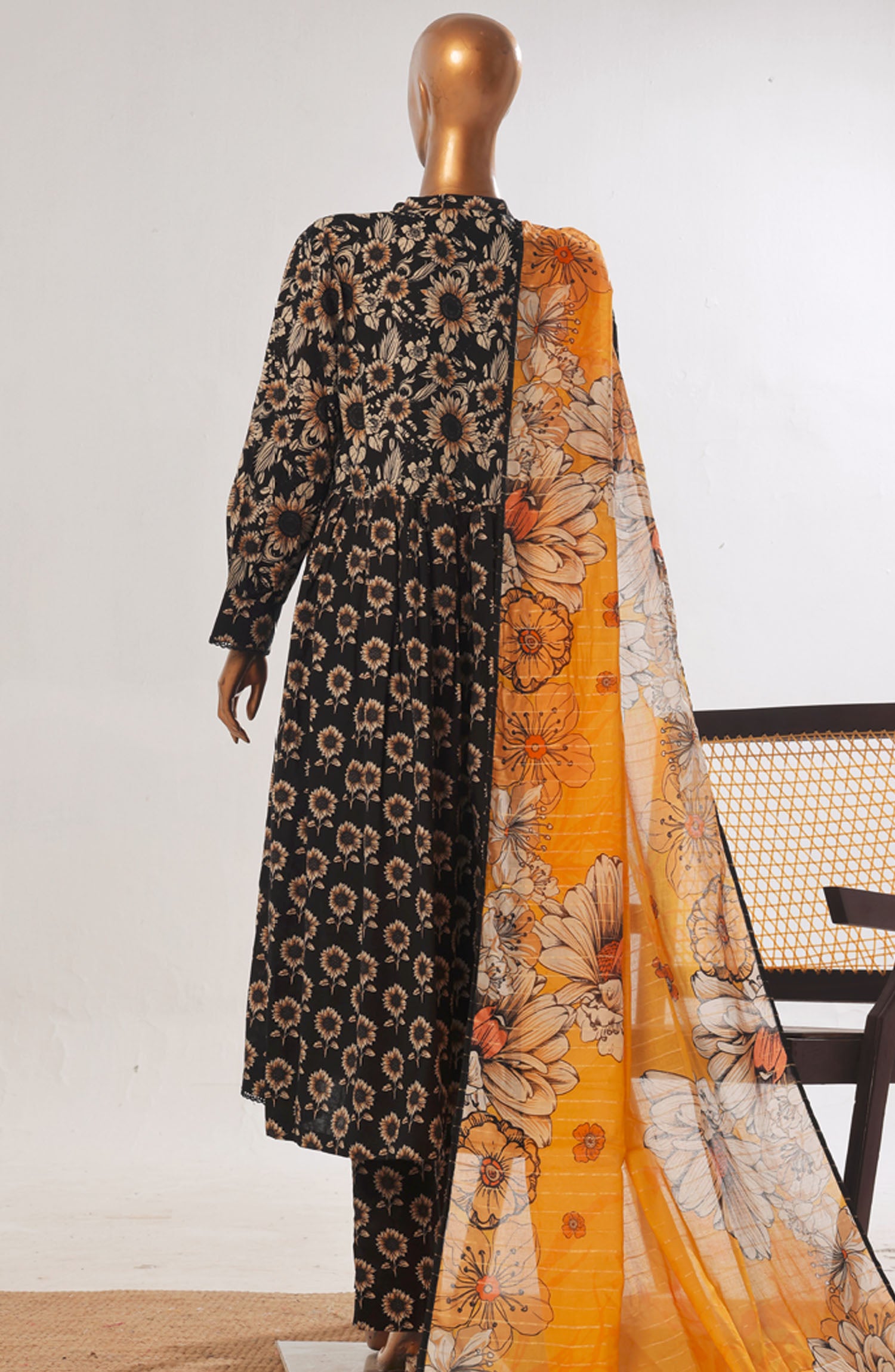 Home Bin Saeed Printed Lawn Stitched 3 Piece Frock - D-05 - BS25PPFC - Black - Summer Collection