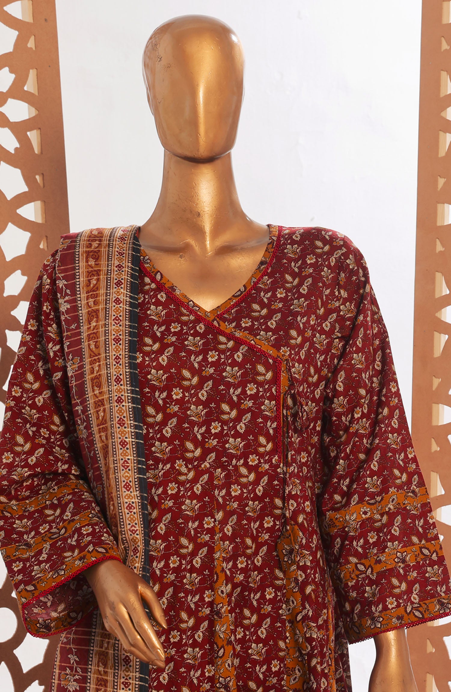 Home Bin Saeed Printed Lawn Stitched 3 Piece Frock - D-09 - BS25PPFC - Maroon - Summer Collection