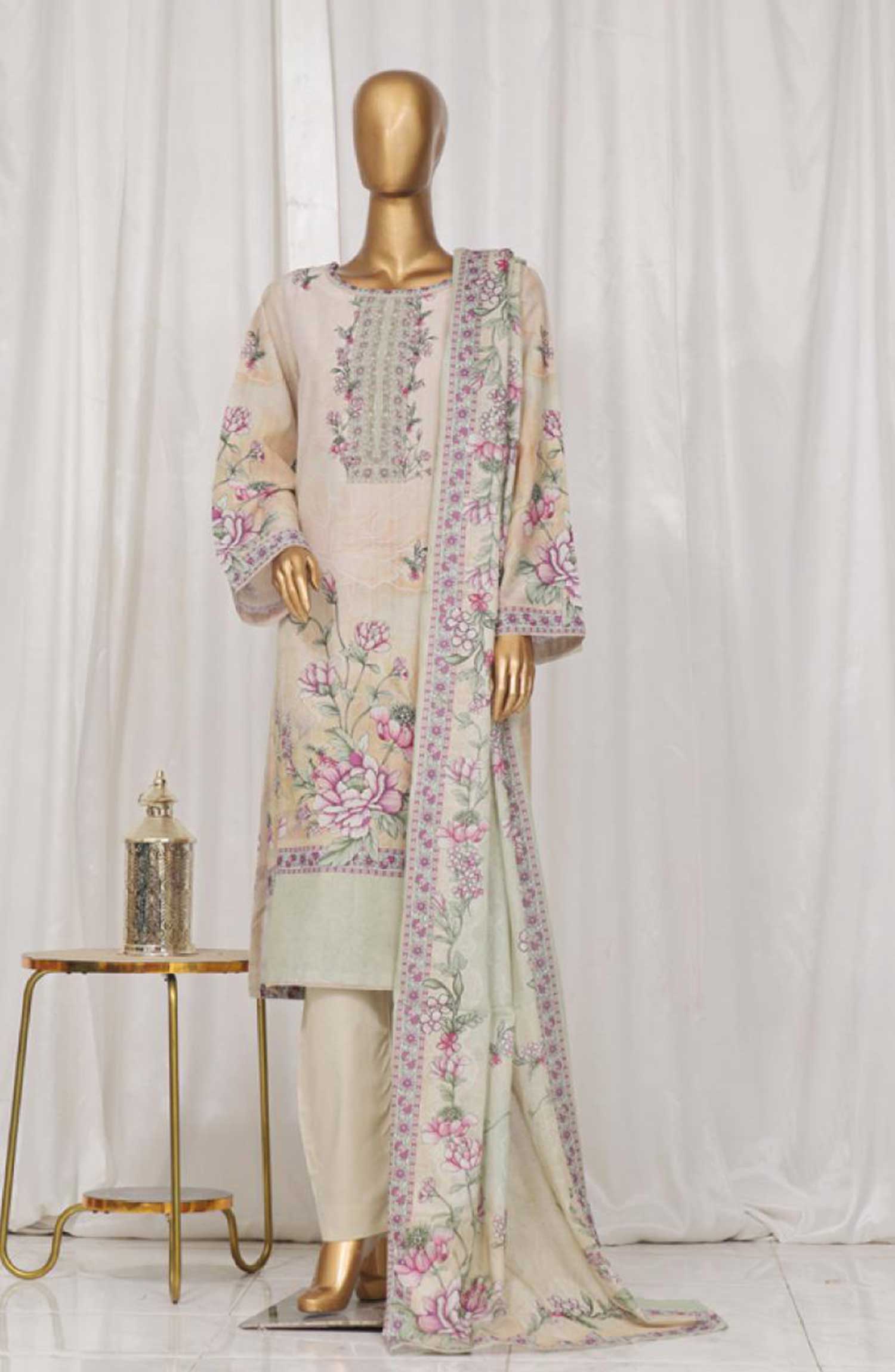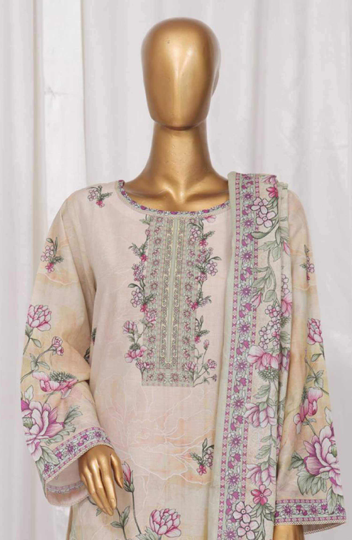 Home Bin Saeed Printed Lawn Stitched 3 Piece - SM 024 - BS25EL - Cream - Summer Collection