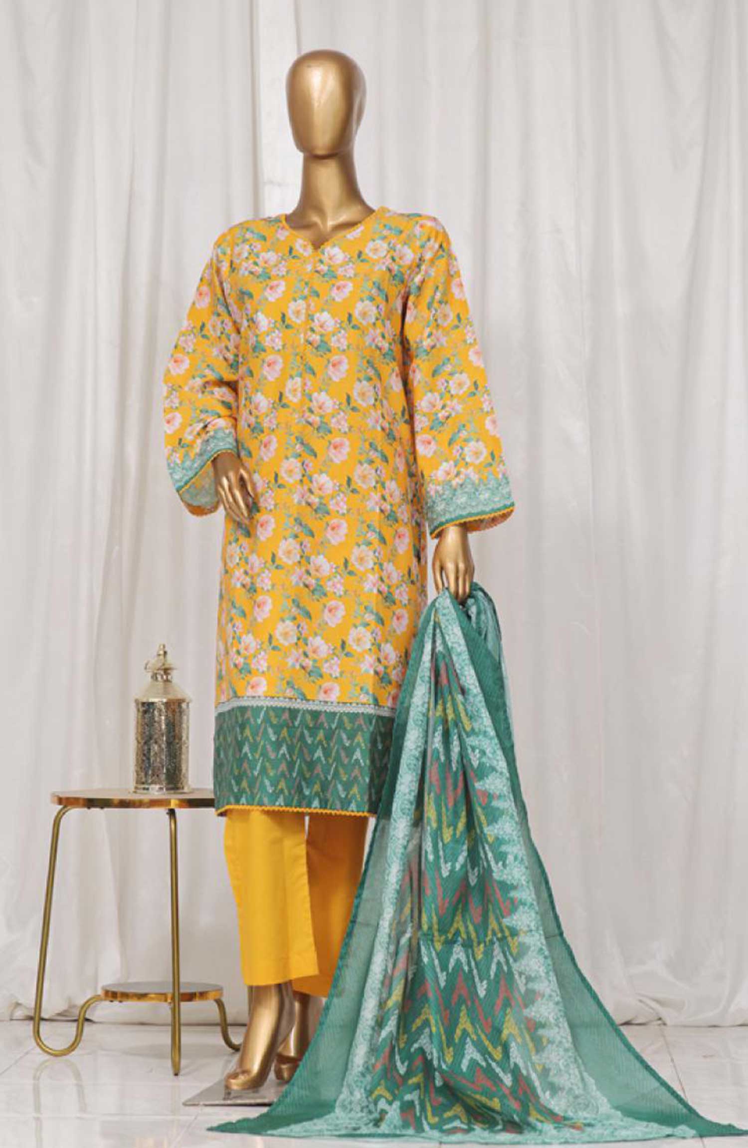 Home Bin Saeed Printed Lawn Stitched 3 Piece - SM 05 - BS25EL - Yellow - Summer Collection
