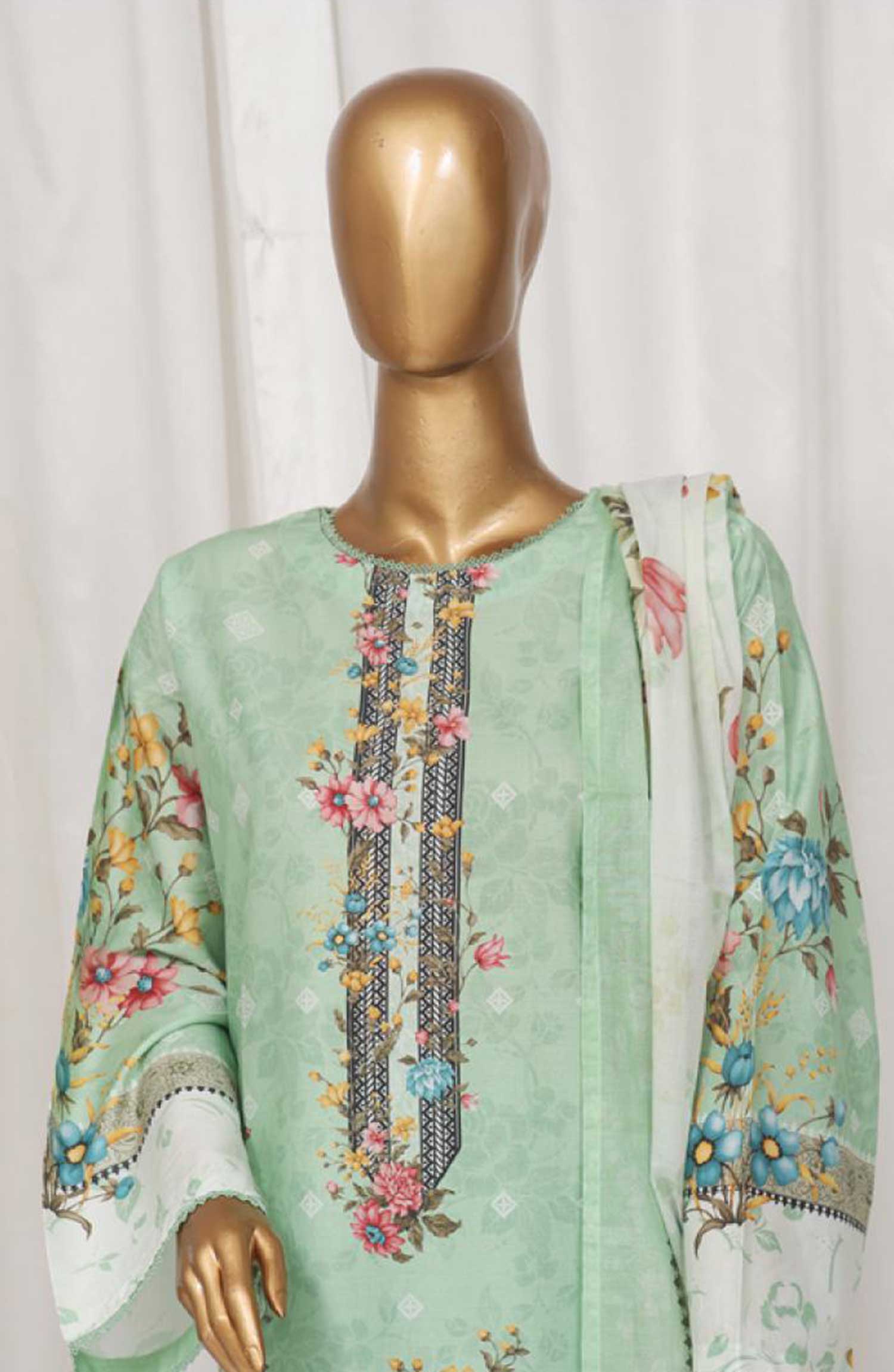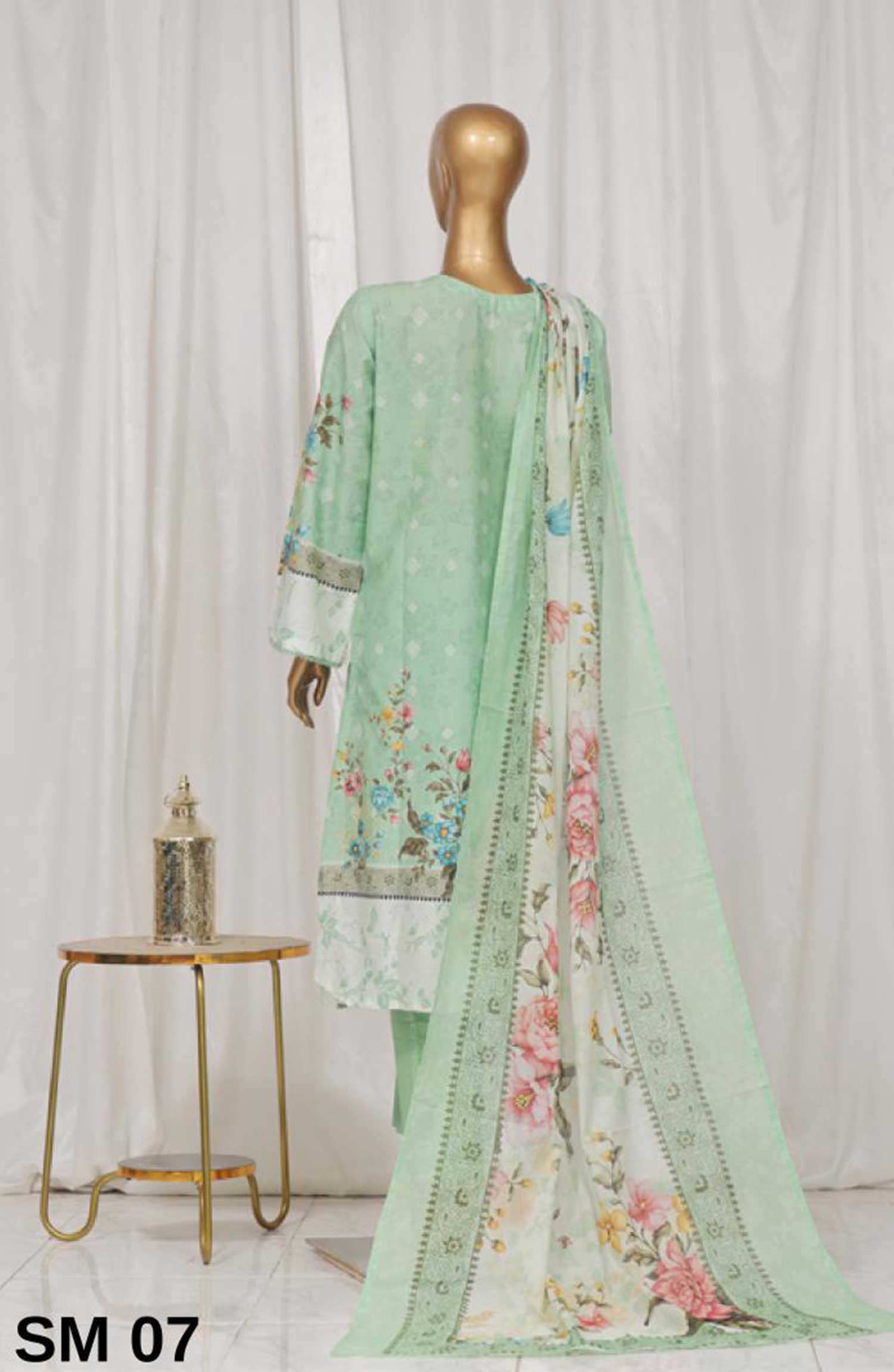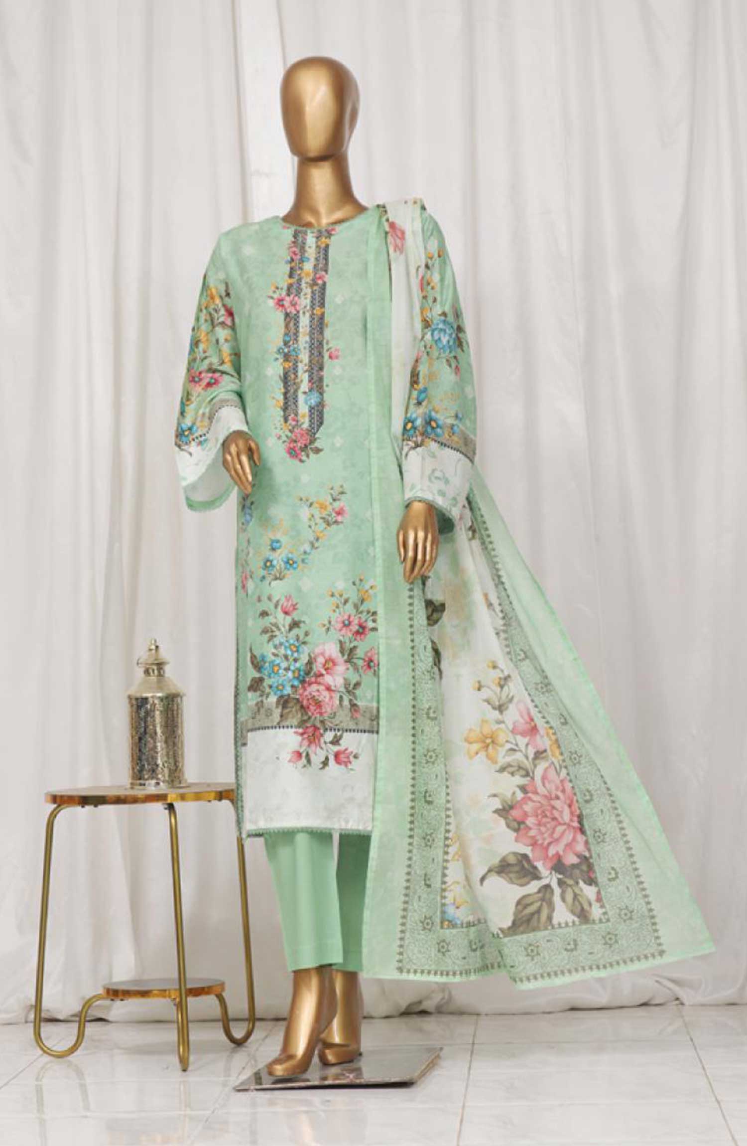 Home Bin Saeed Printed Lawn Stitched 3 Piece - SM 07 - BS25EL - Pista Green - Summer Collection