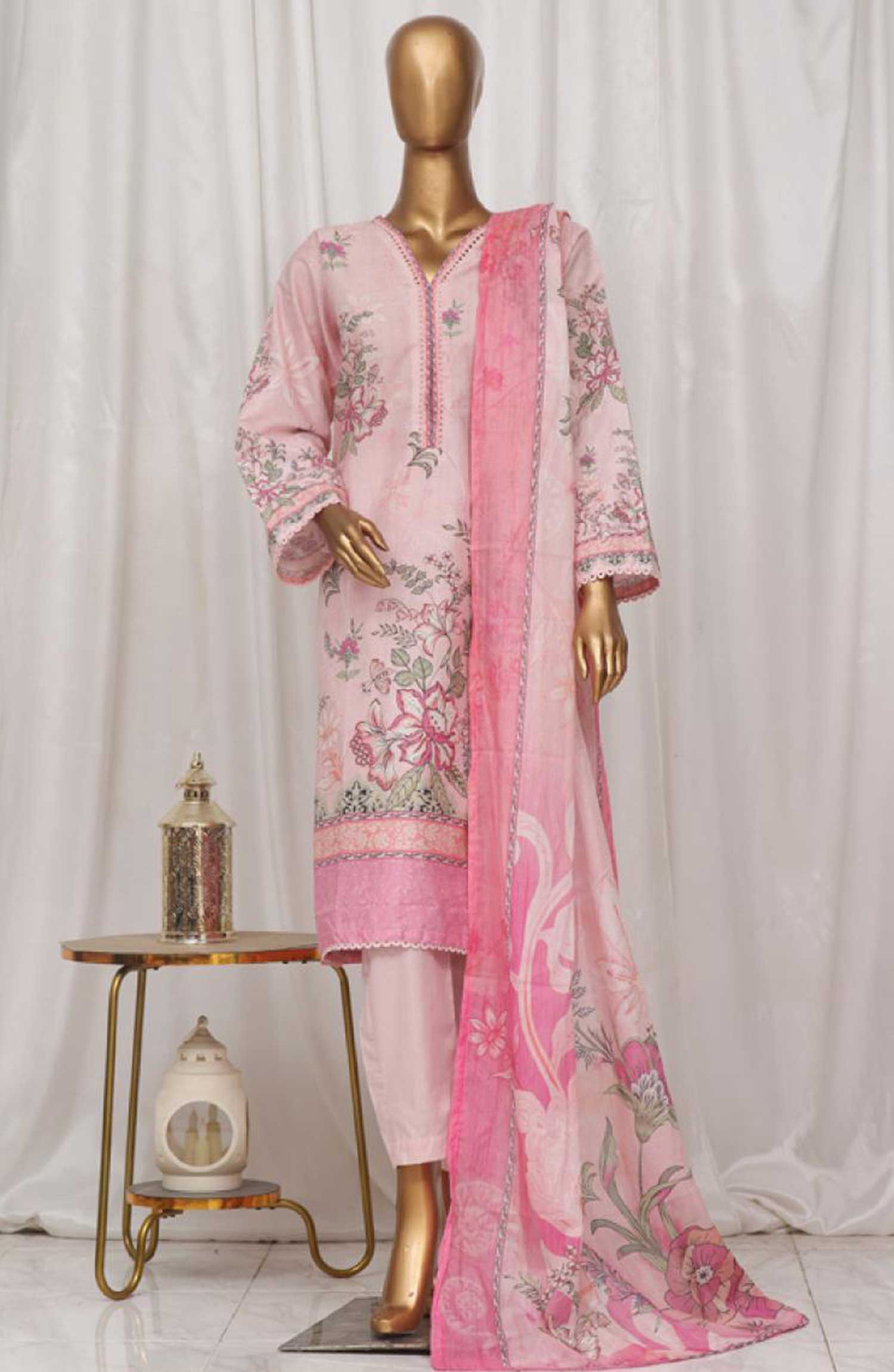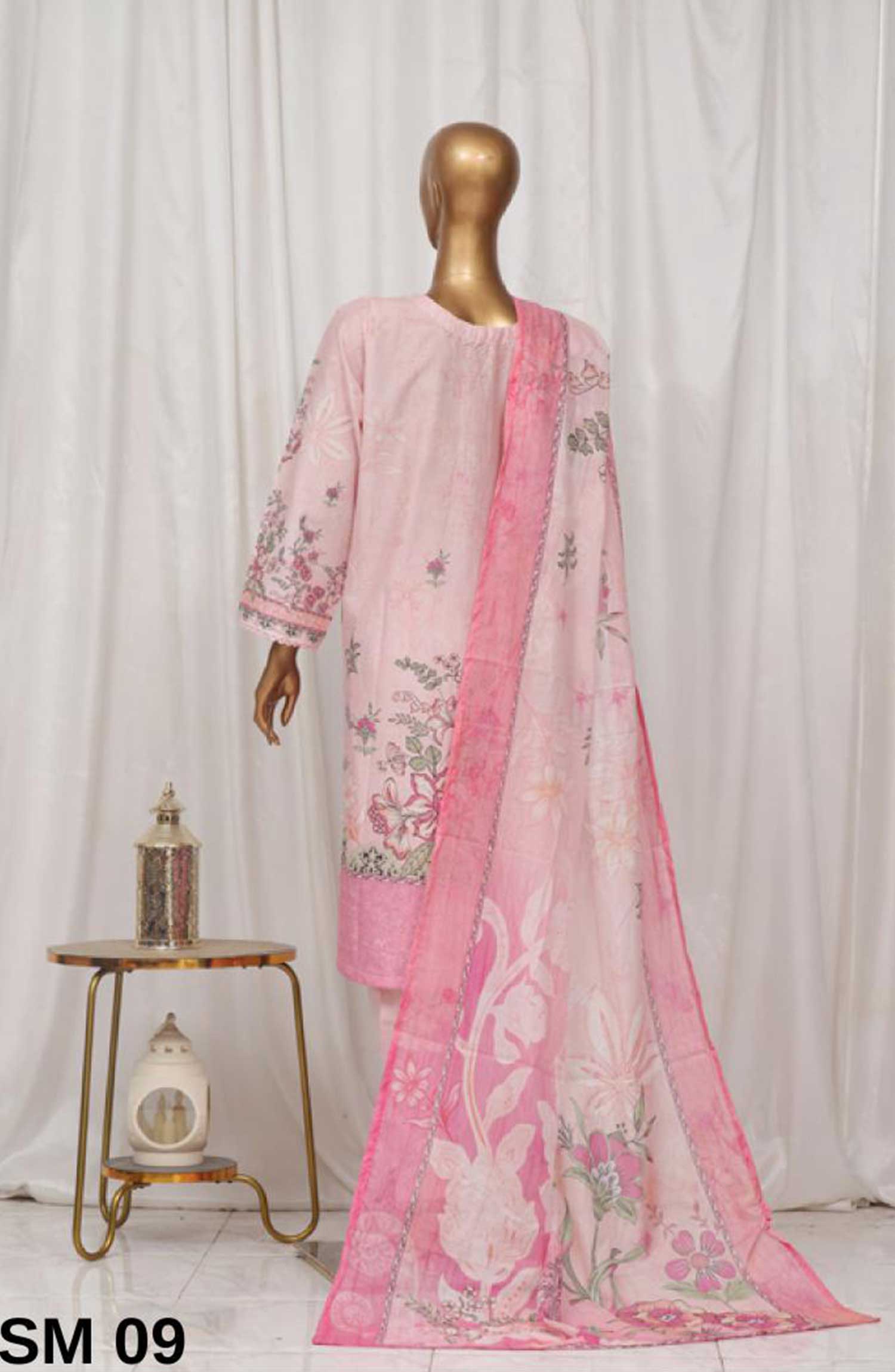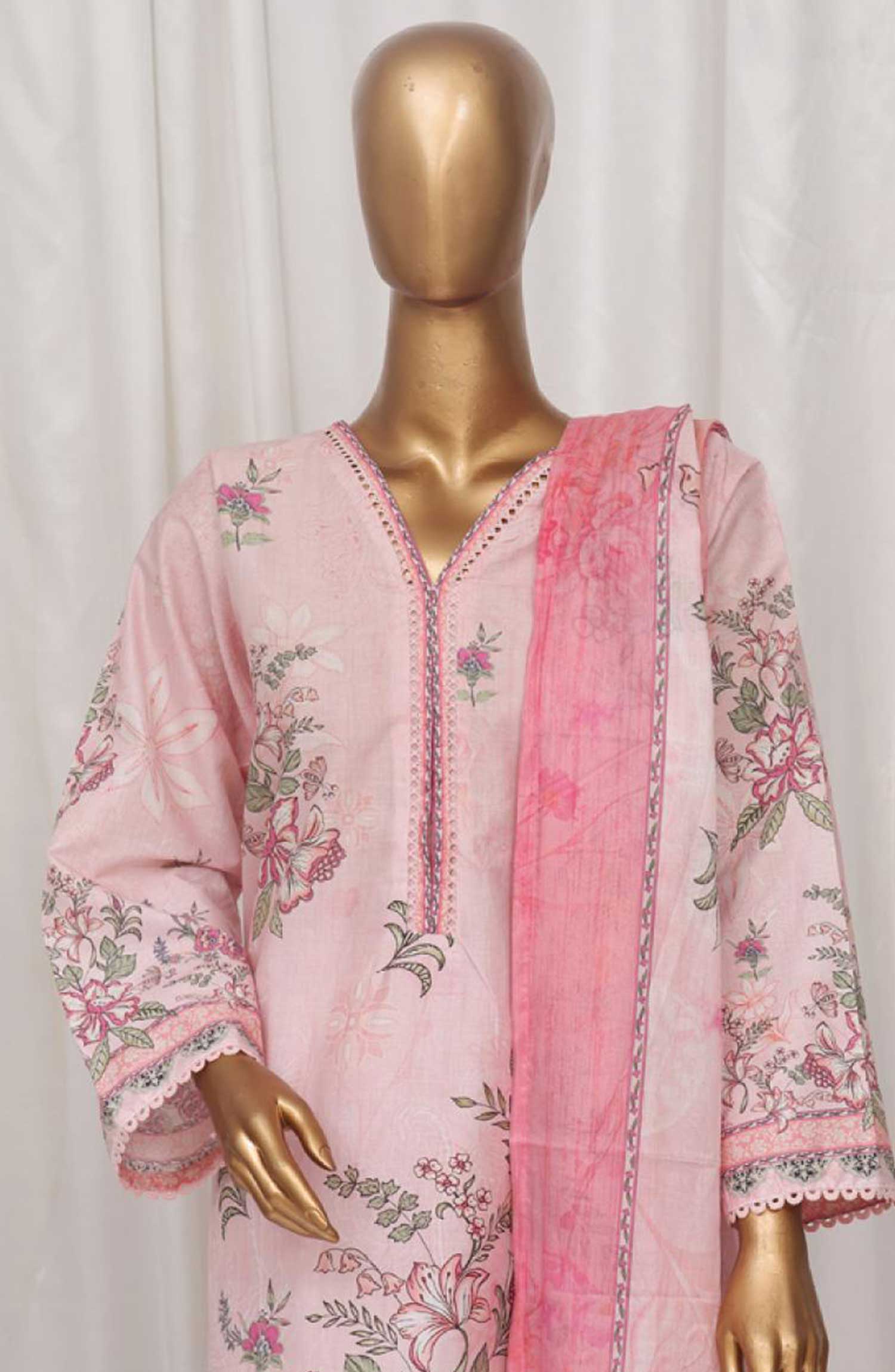 Home Bin Saeed Printed Lawn Stitched 3 Piece - SM-09 - BS25EL - Light Pink - Summer Collection