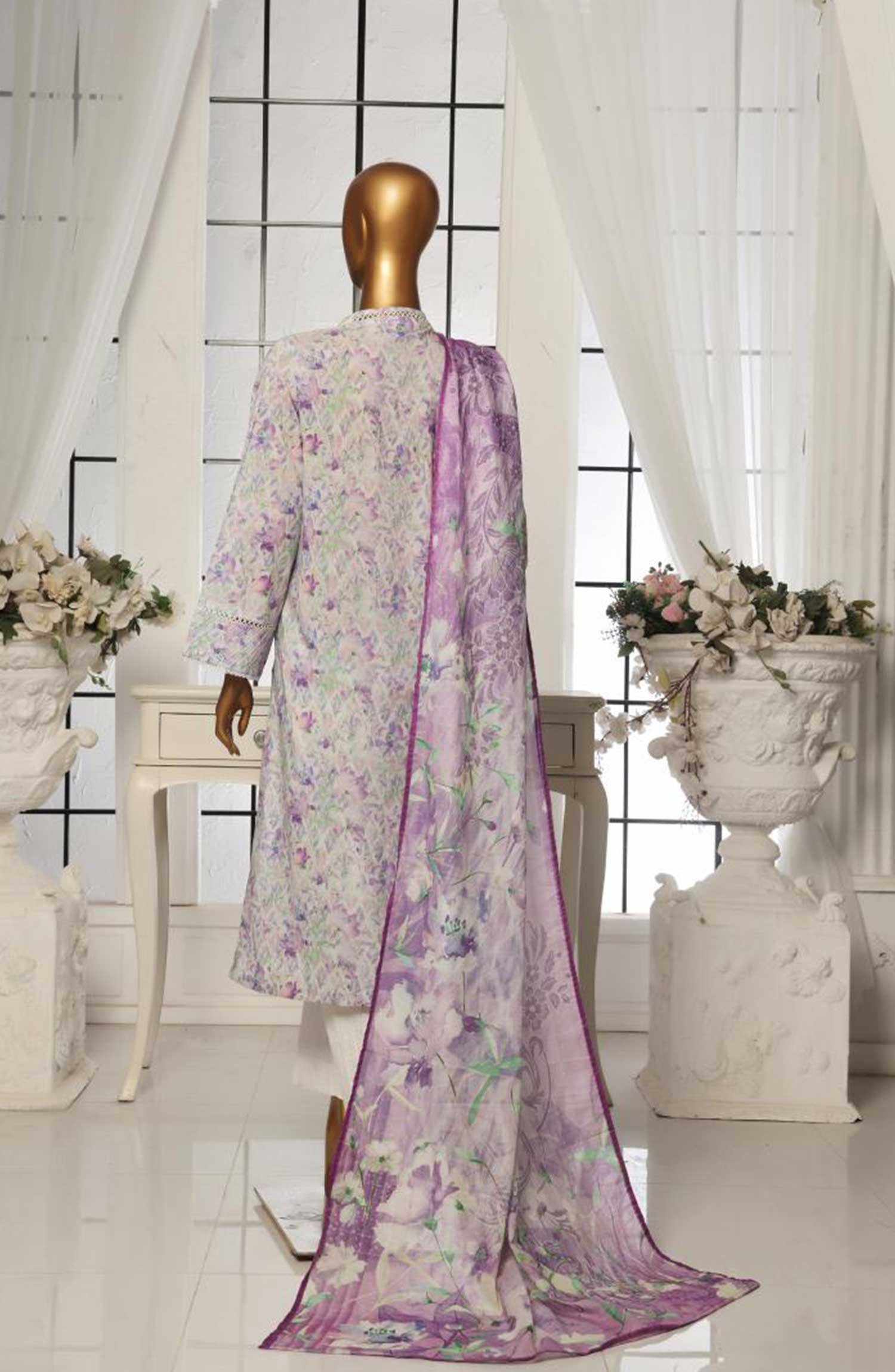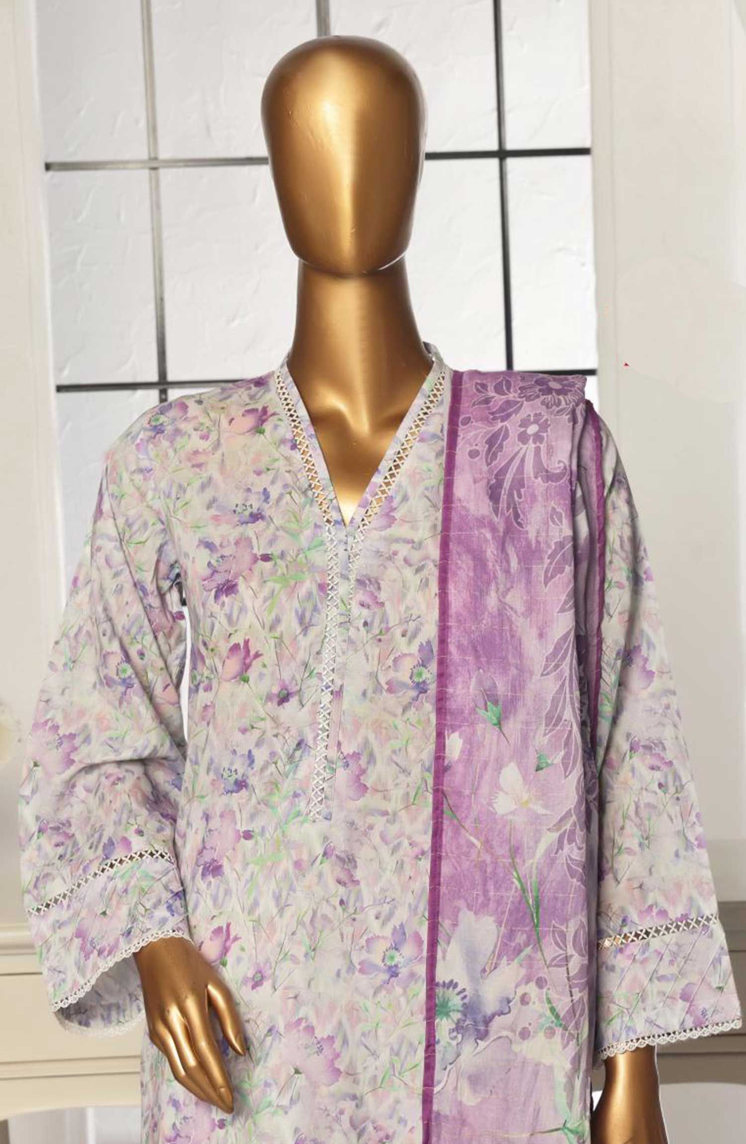 Home Bin Saeed Printed Lawn Stitched 3 Piece - SM 102 - BS25EL - Greyish Purple - Summer Collection