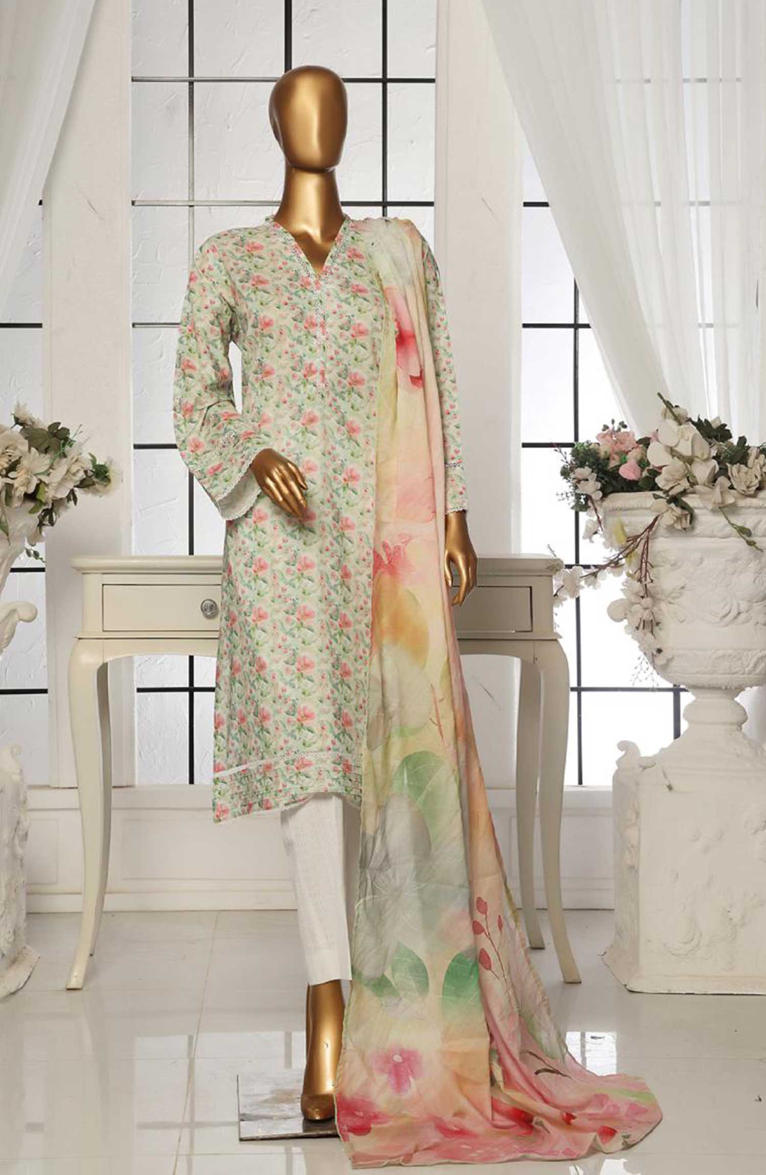 Home Bin Saeed Printed Lawn Stitched 3 Piece - SM 103 B - BS25EL - Pink - Summer Collection