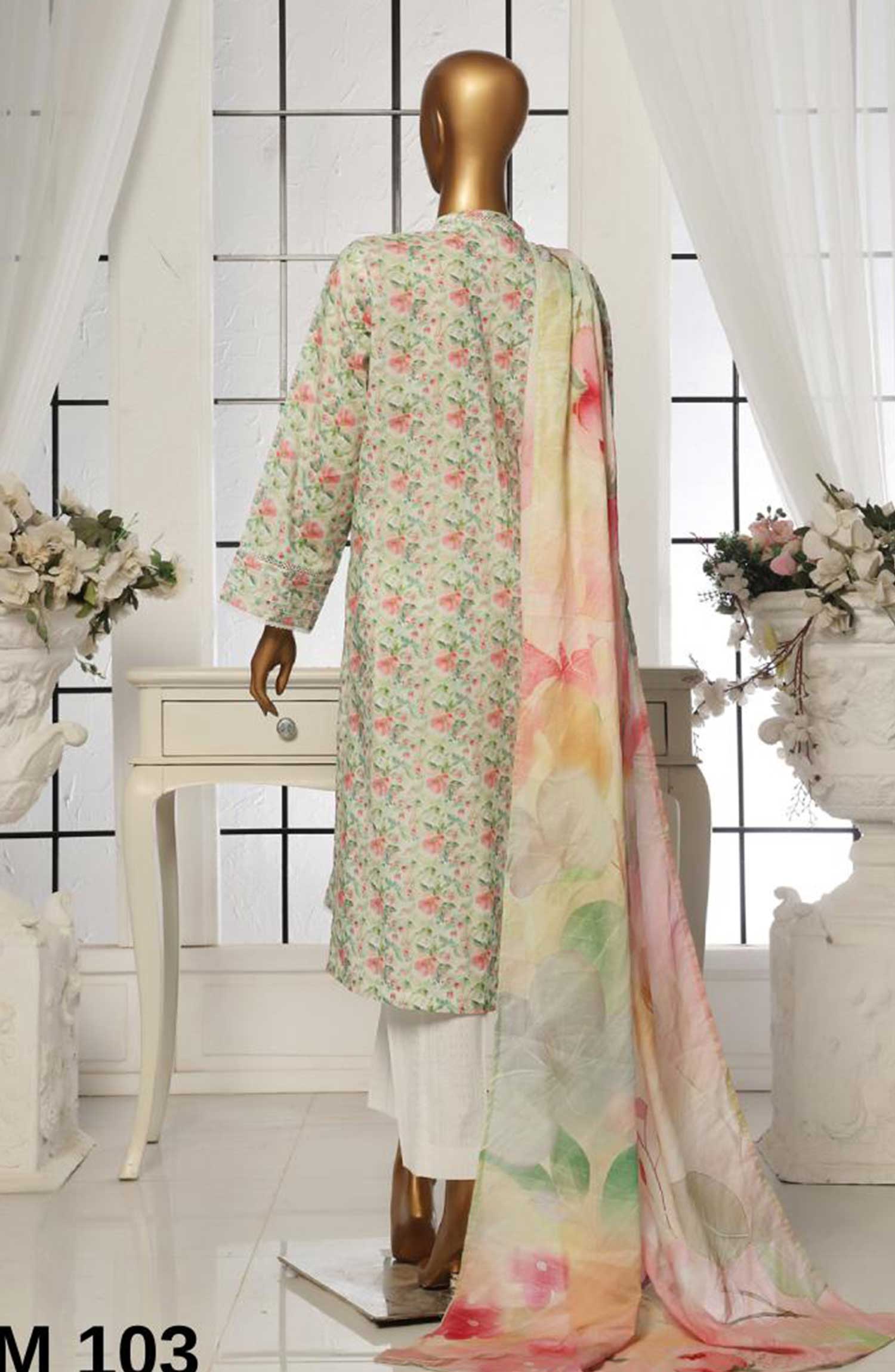Bin Saeed Printed Lawn Stitched 3 Piece - SM 103 B - BS25EL - Pink - Summer Collection