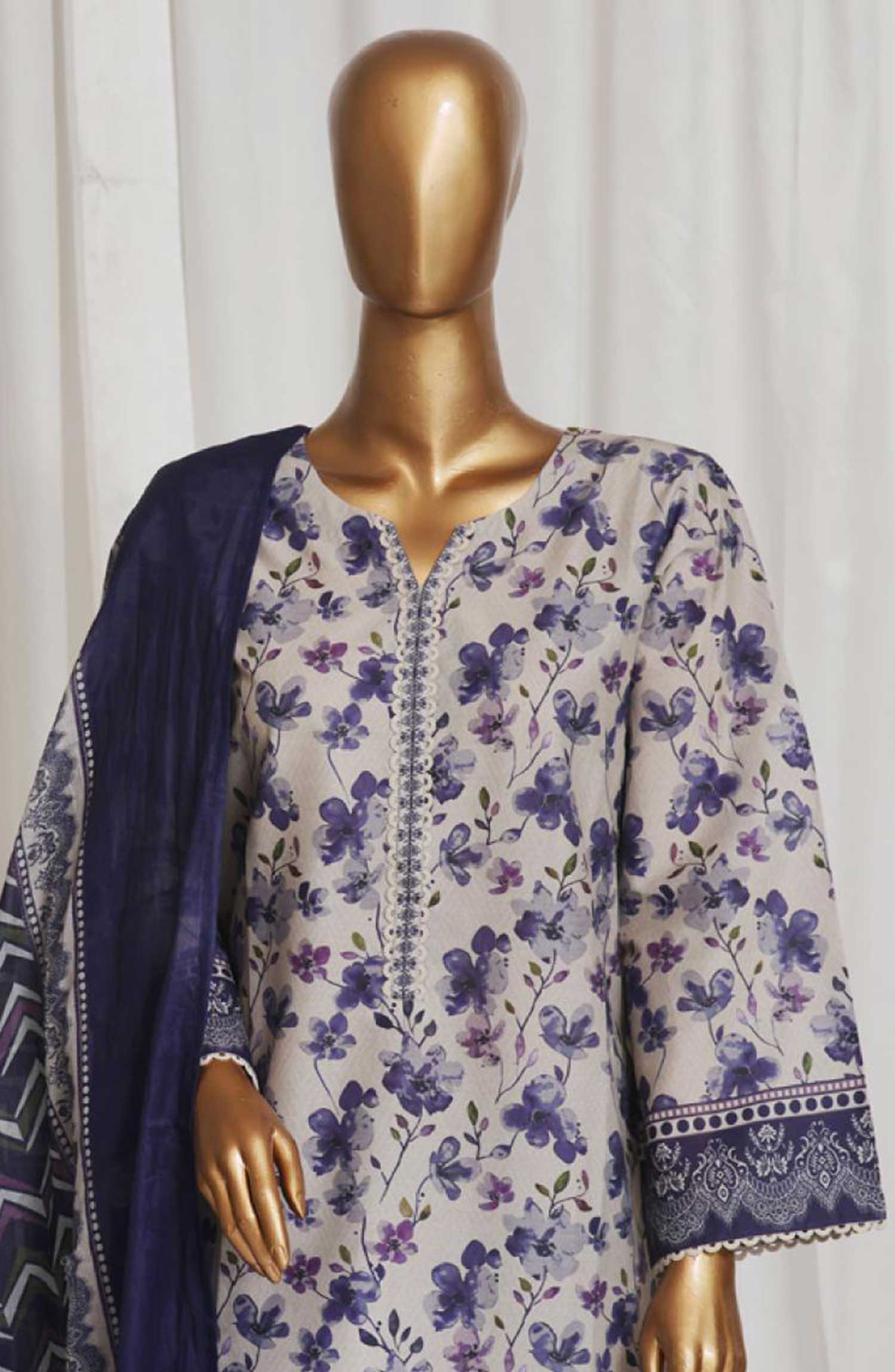 Home Bin Saeed Printed Lawn Stitched 3 Piece - SM-19 - BS25EL - Grey - Summer Collection