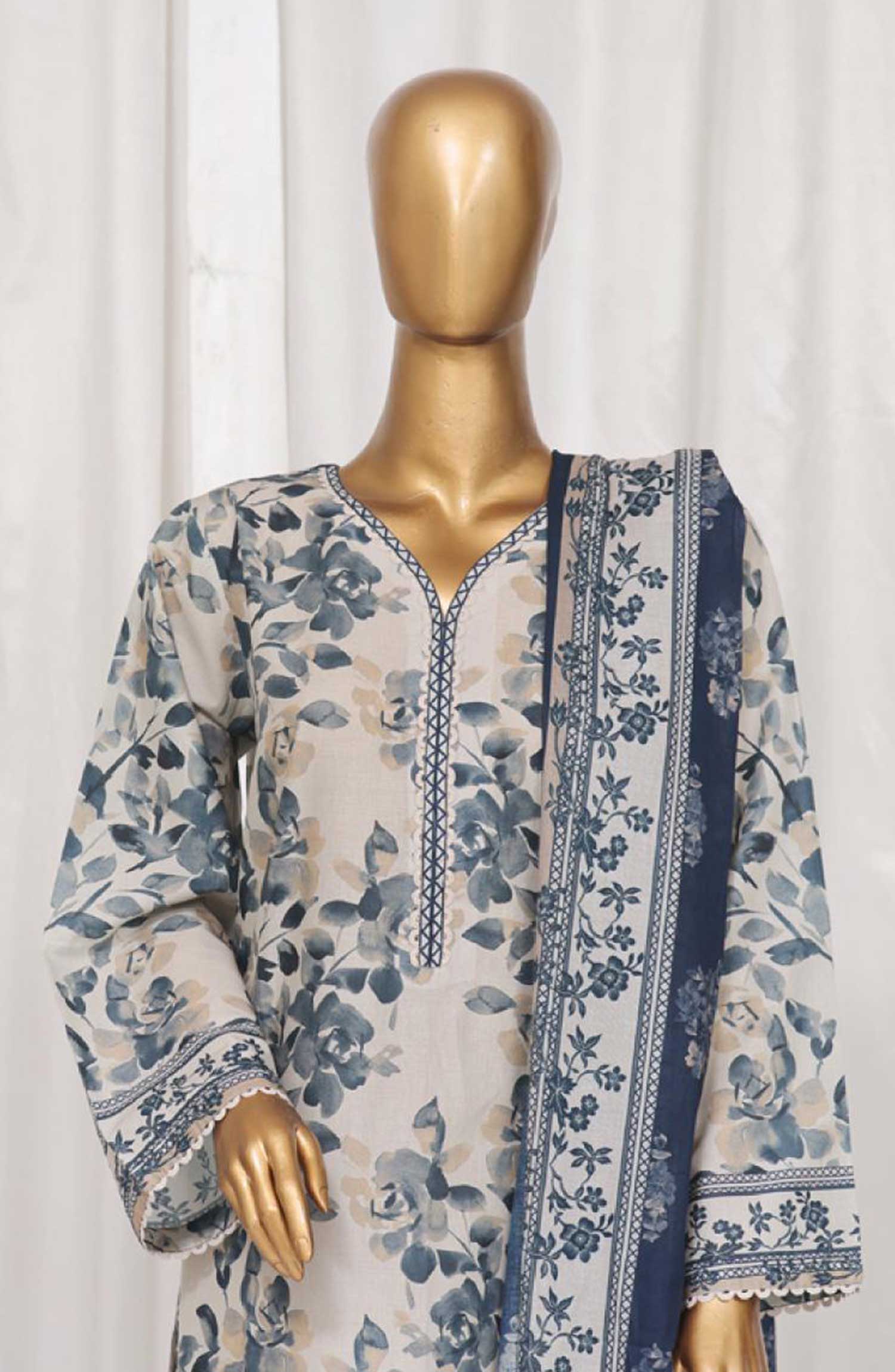 Home Bin Saeed Printed Lawn Stitched 3 Piece - SM 22 - BS25EL - Grey - Summer Collection