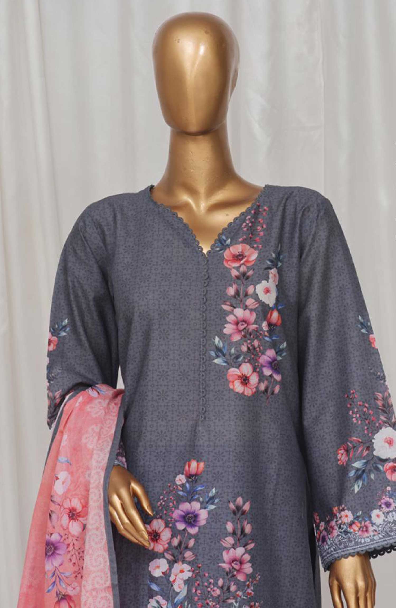 Bin Saeed Printed Lawn Stitched 3 Piece - SM 27 - BS25EL - Dark Grey - Summer Collection