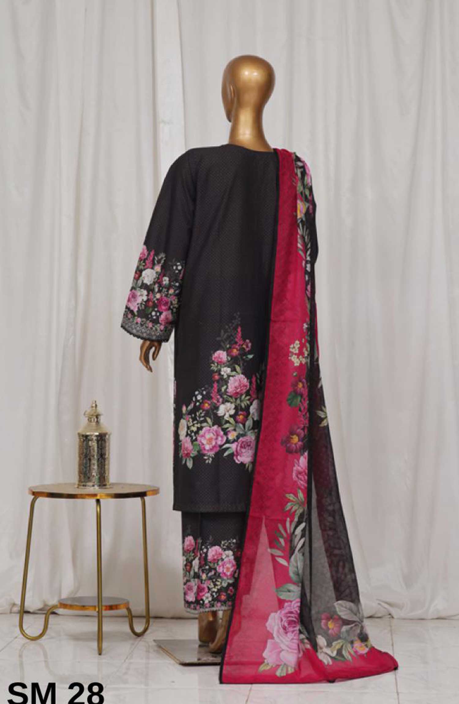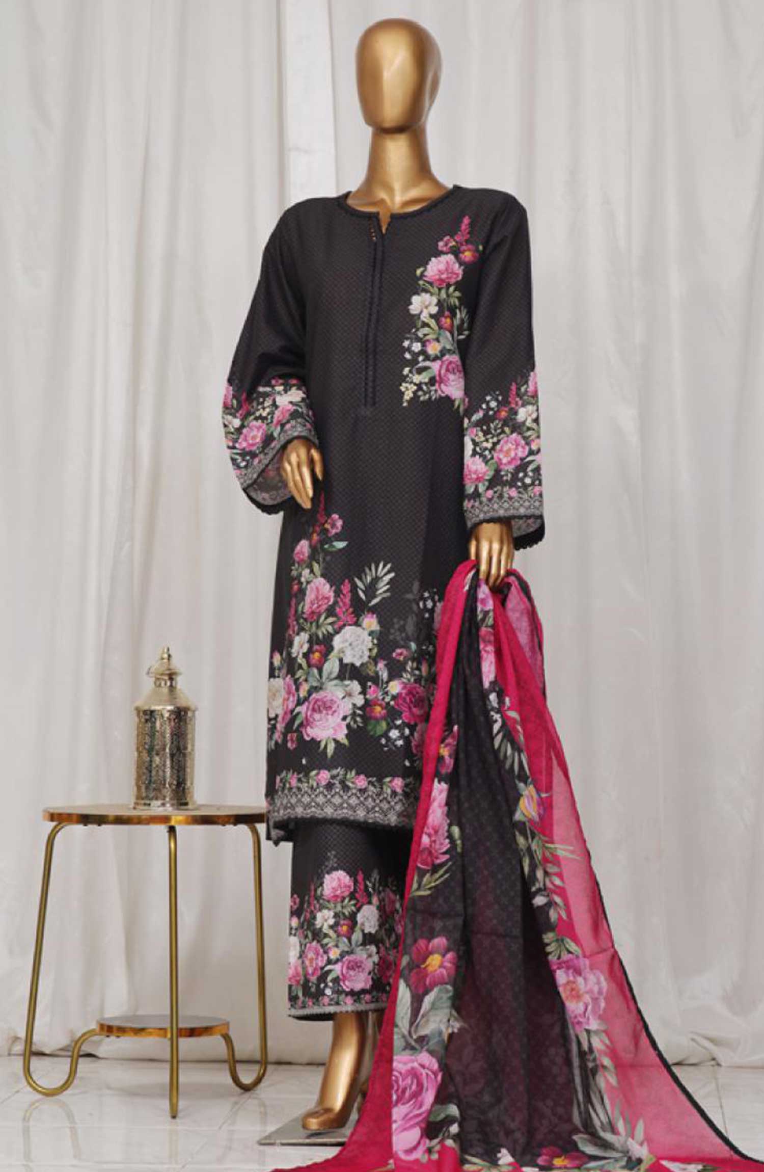 Home Bin Saeed Printed Lawn Stitched 3 Piece - SM-28 - BS25EL - Black - Summer Collection