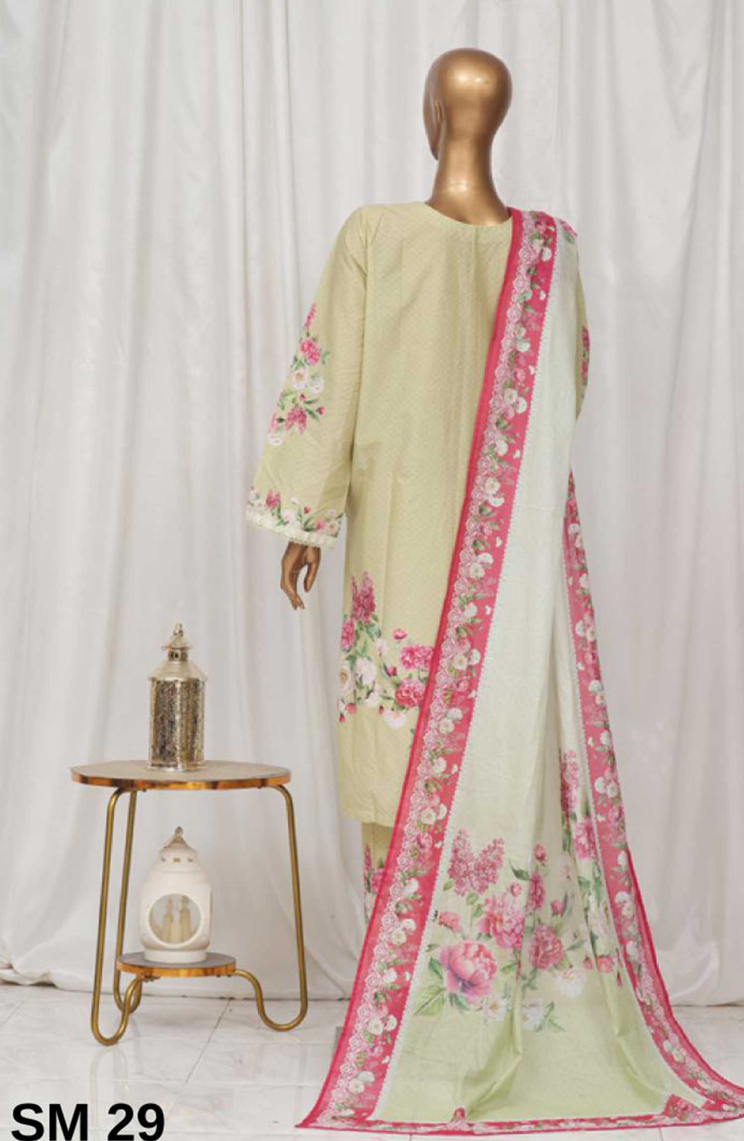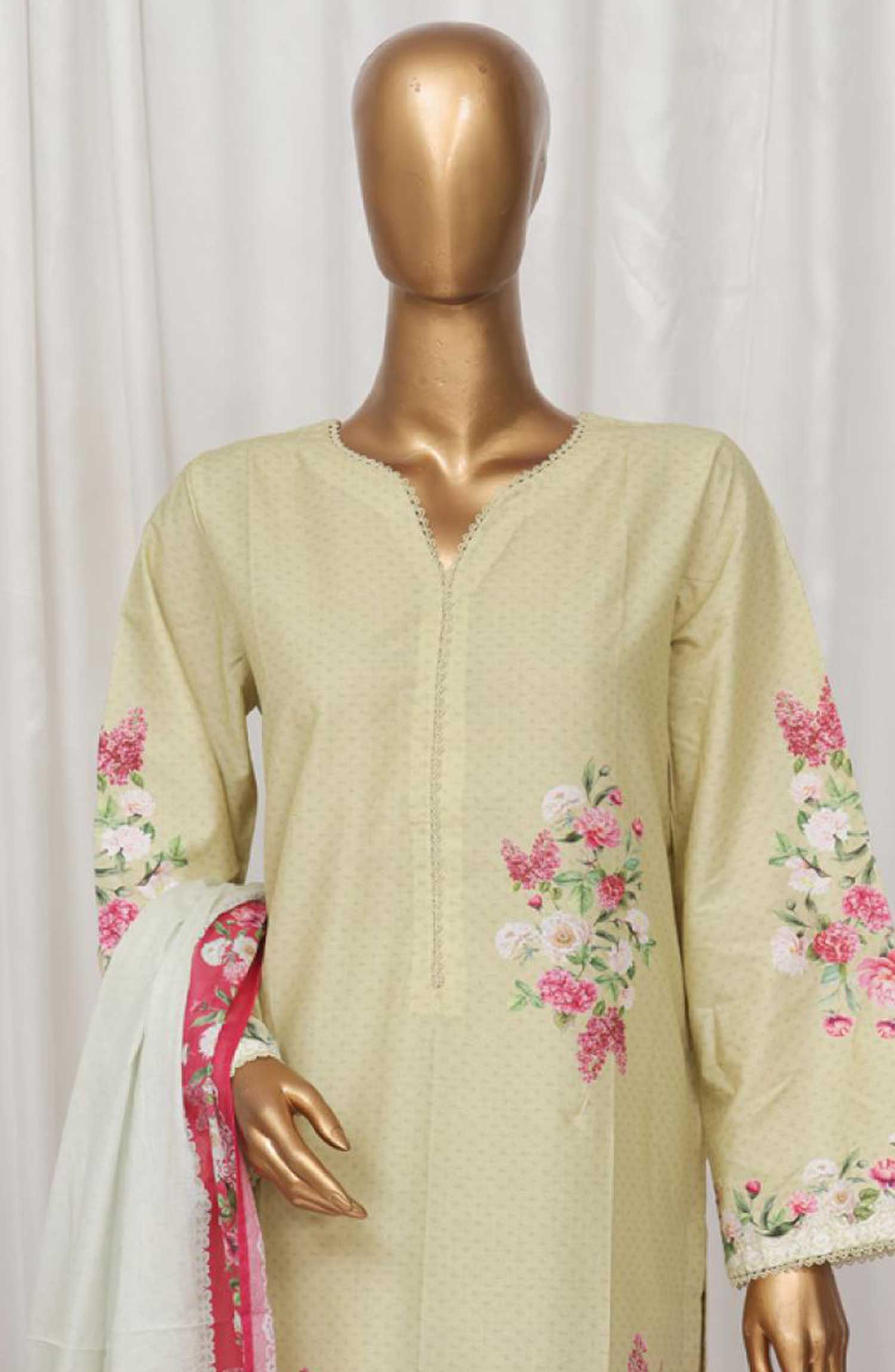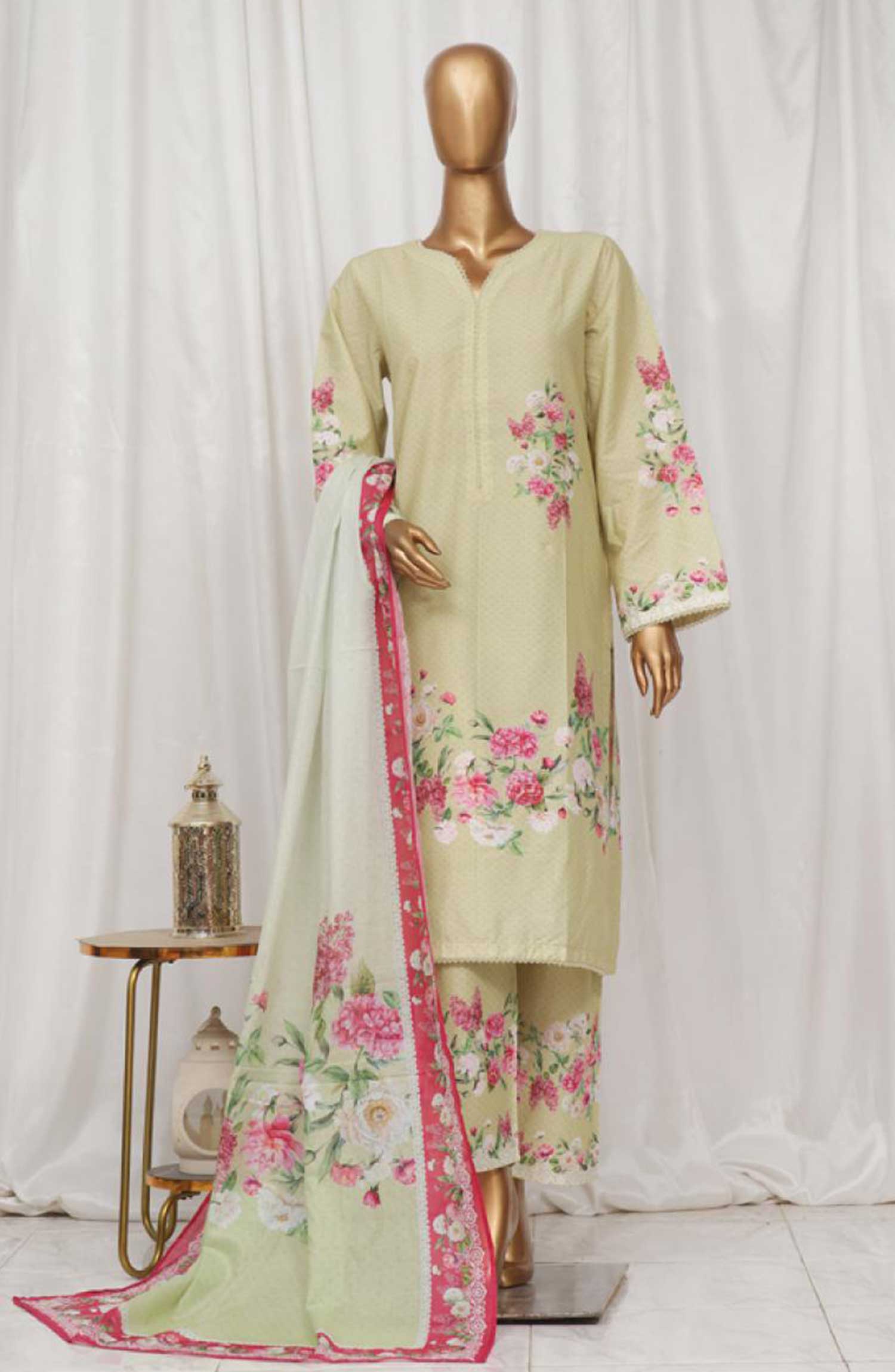 Home Bin Saeed Printed Lawn Stitched 3 Piece - SM-29 - BS25EL - Lime Green - Summer Collection