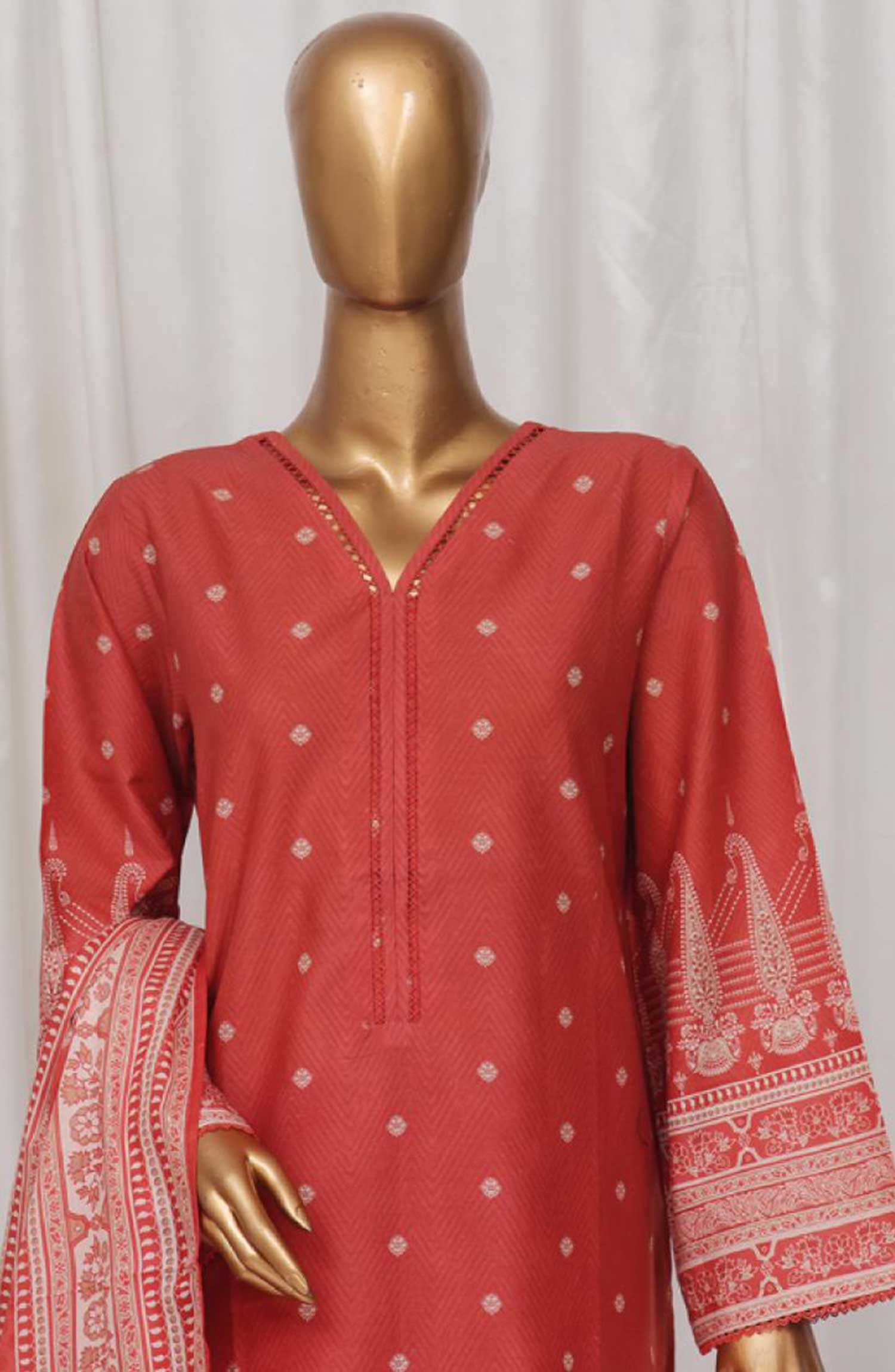 Home Bin Saeed Printed Lawn Stitched 3 Piece - SM-32 - BS25EL - Poppy Red - Summer Collection