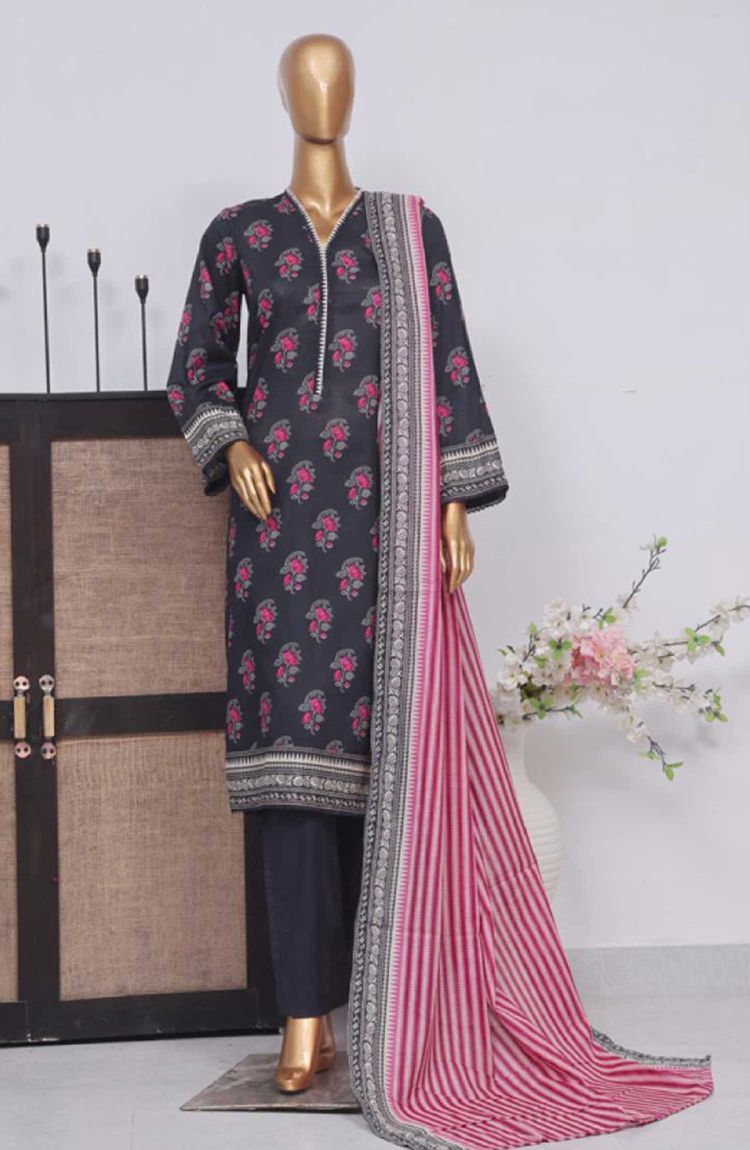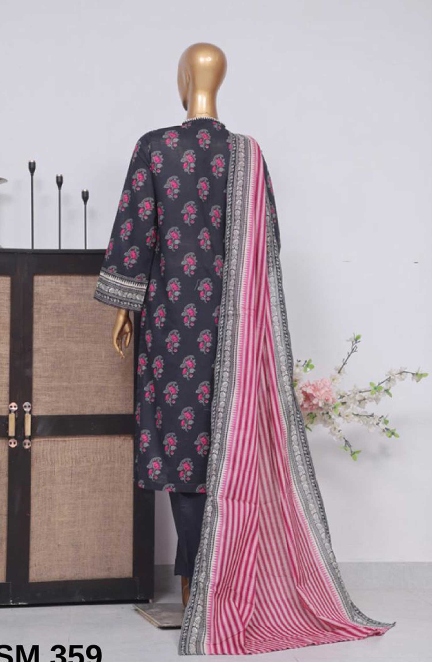 Home Bin Saeed Printed Lawn Stitched 3 Piece - SM 359 - BS25EL - Black - Summer Collection