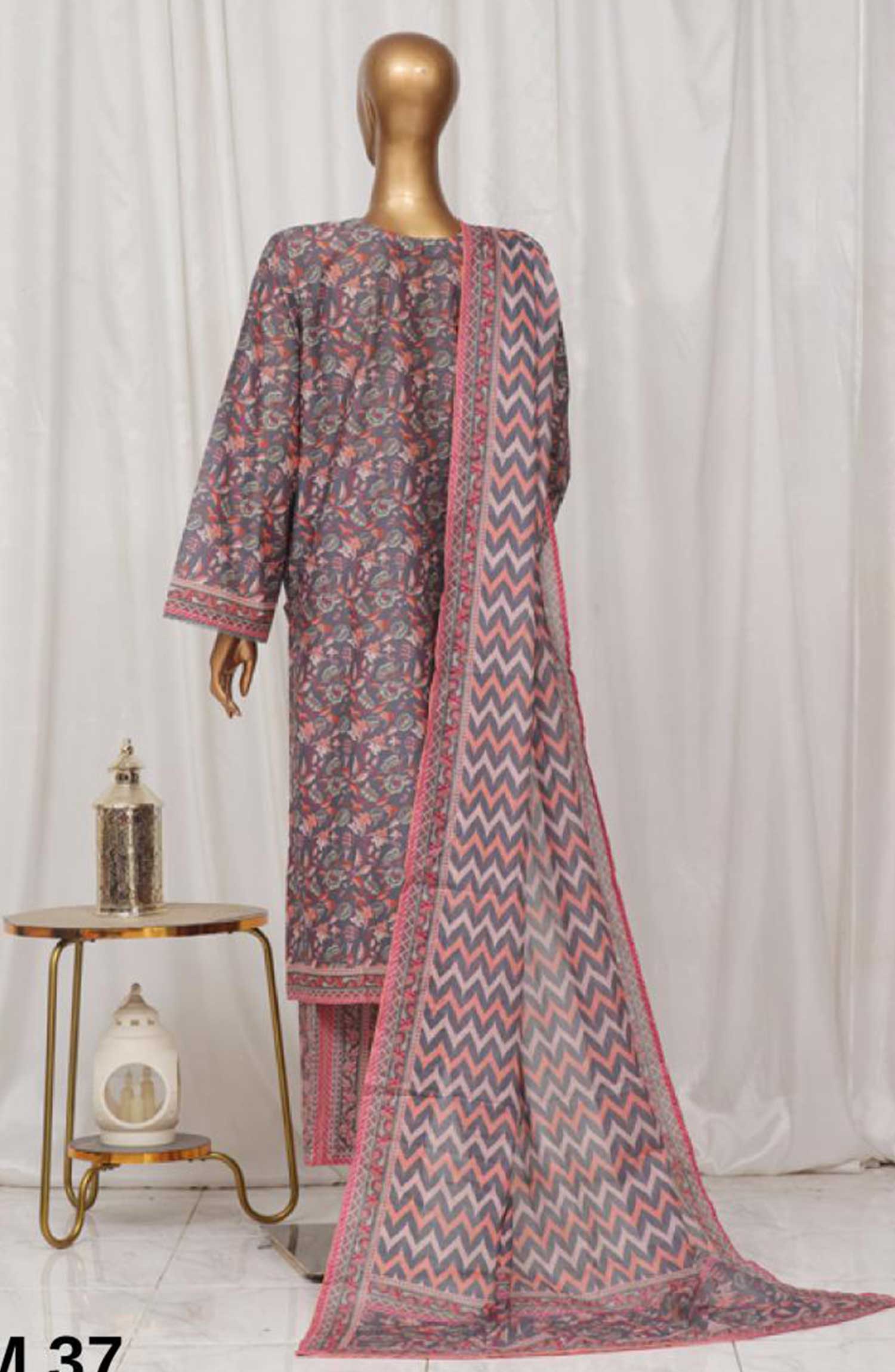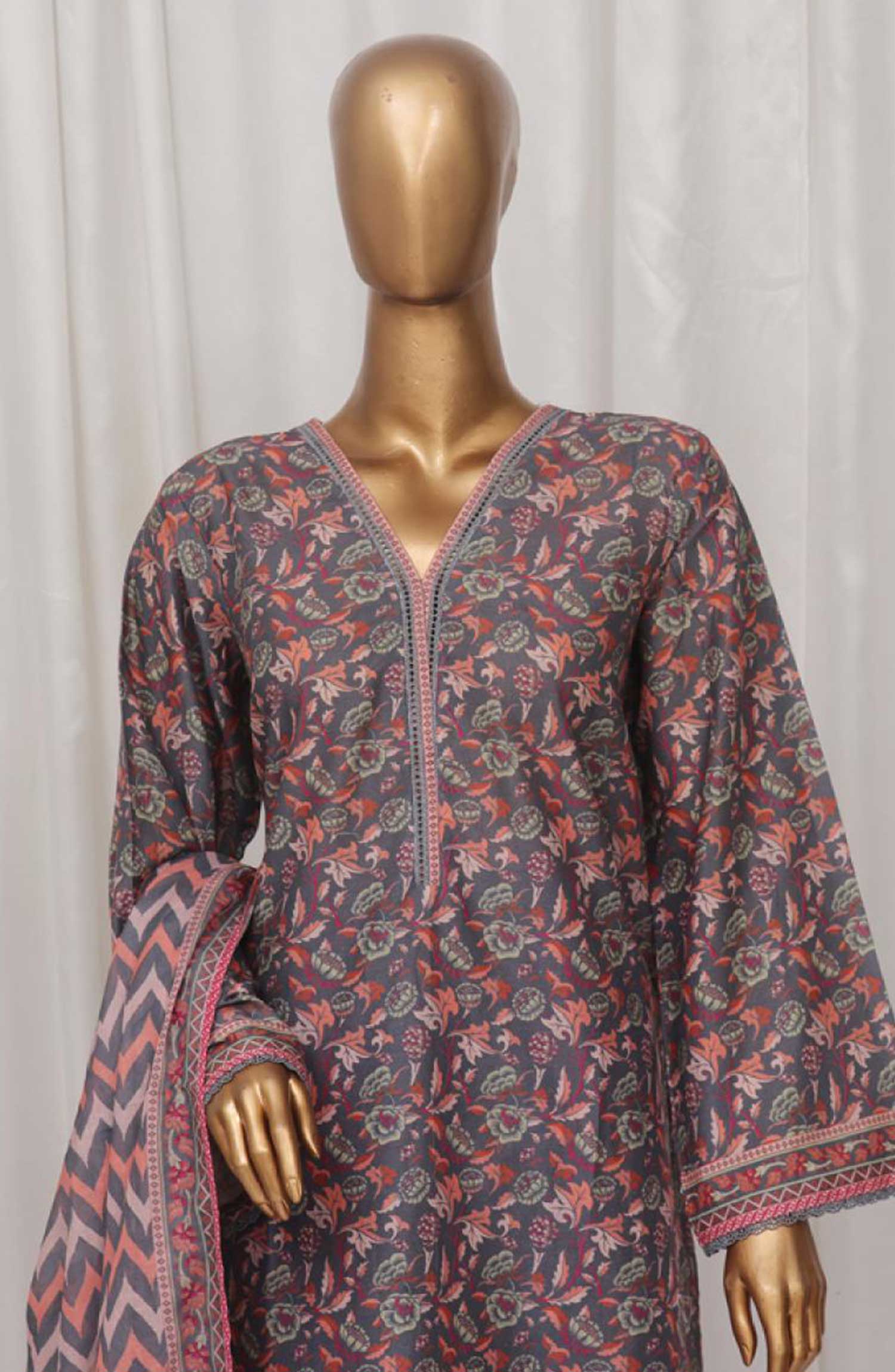 Home Bin Saeed Printed Lawn Stitched 3 Piece - SM-37 - BS25EL - Grey - Summer Collection