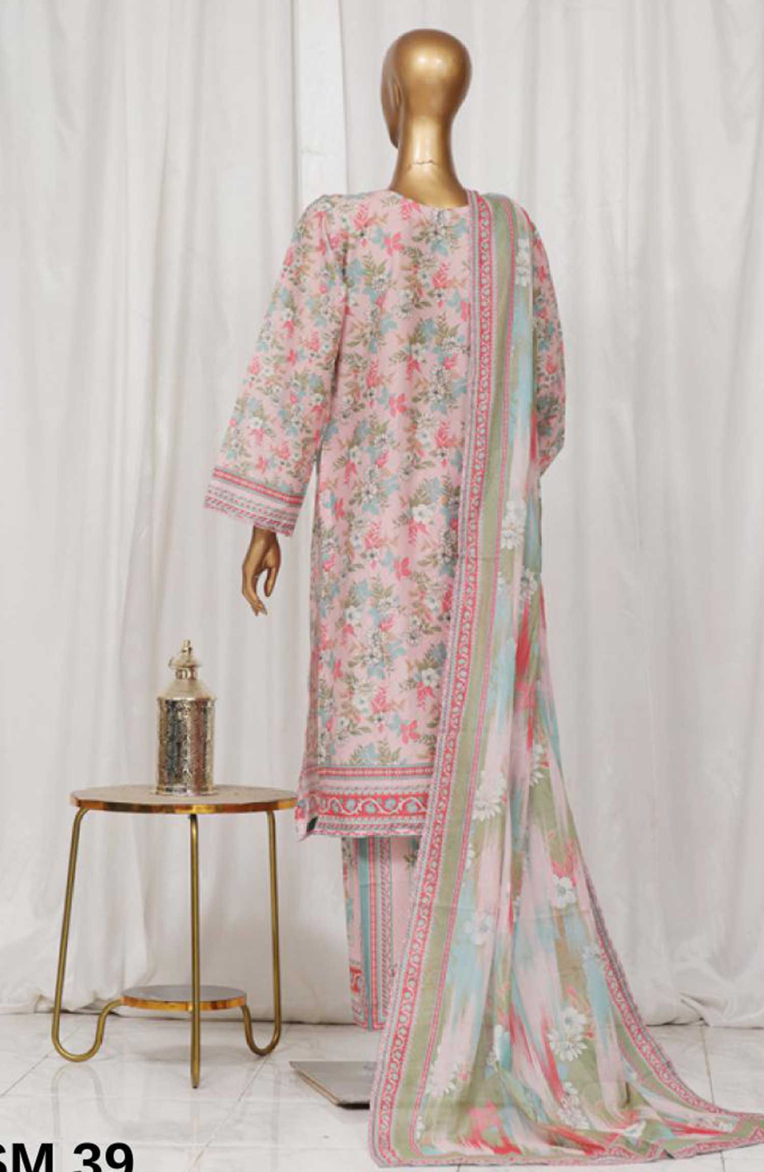 Home Bin Saeed Printed Lawn Stitched 3 Piece - SM-39 - BS25EL - Light Pink - Summer Collection