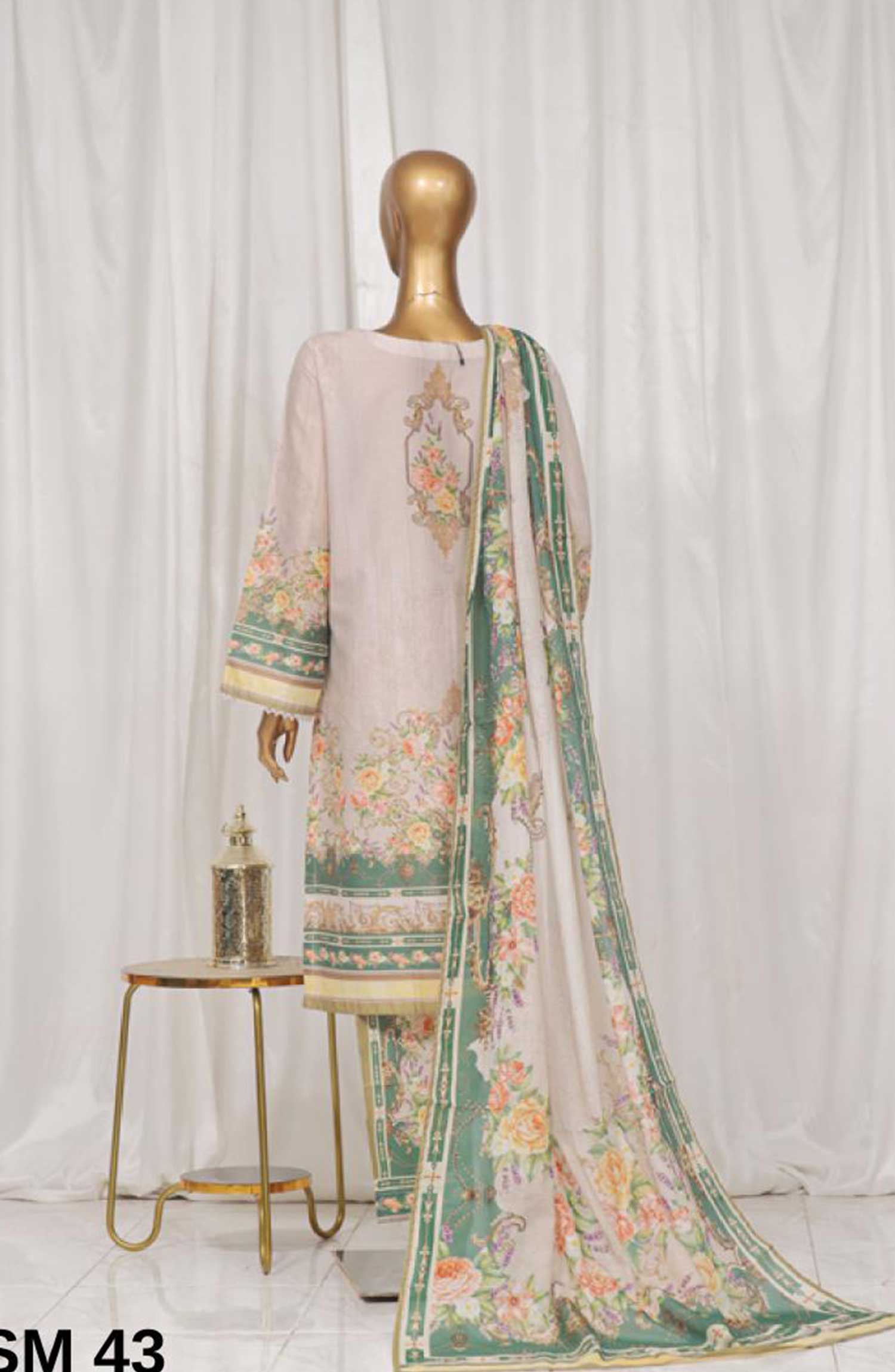 Home Bin Saeed Printed Lawn Stitched 3 Piece - SM 43 - BS25EL - Light Pink - Summer Collection