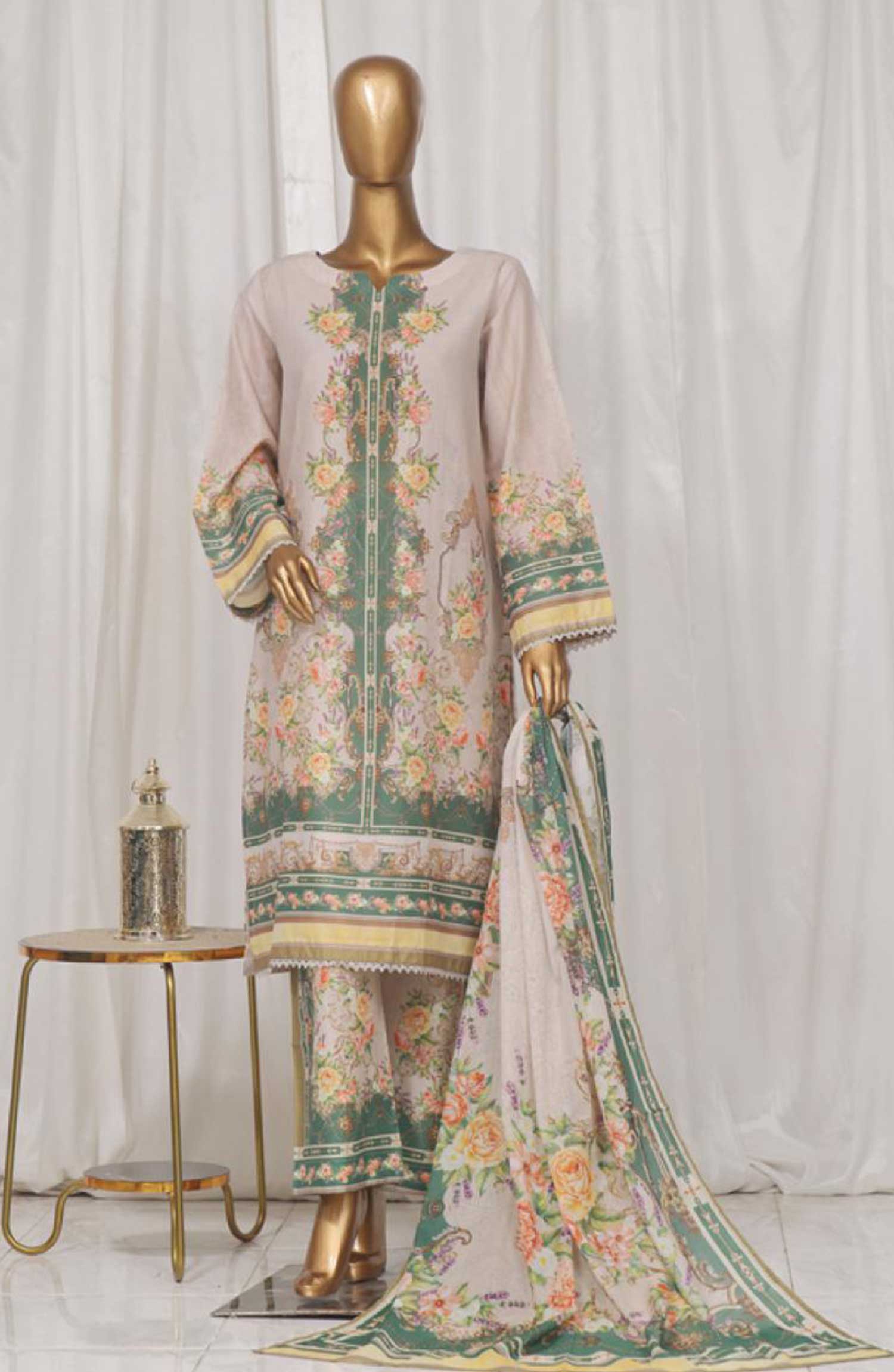 Bin Saeed Exclusive Printed Lawn 3PC Collection has been styled in the image for photography and illustrative purposes.