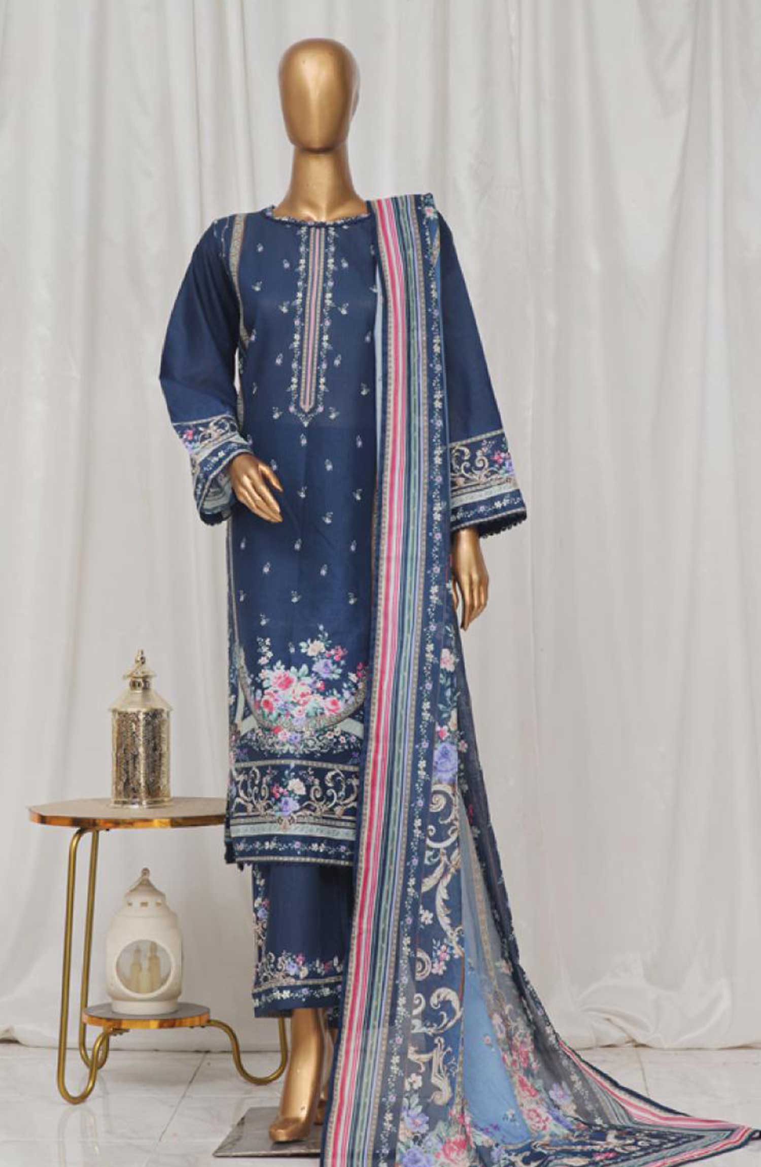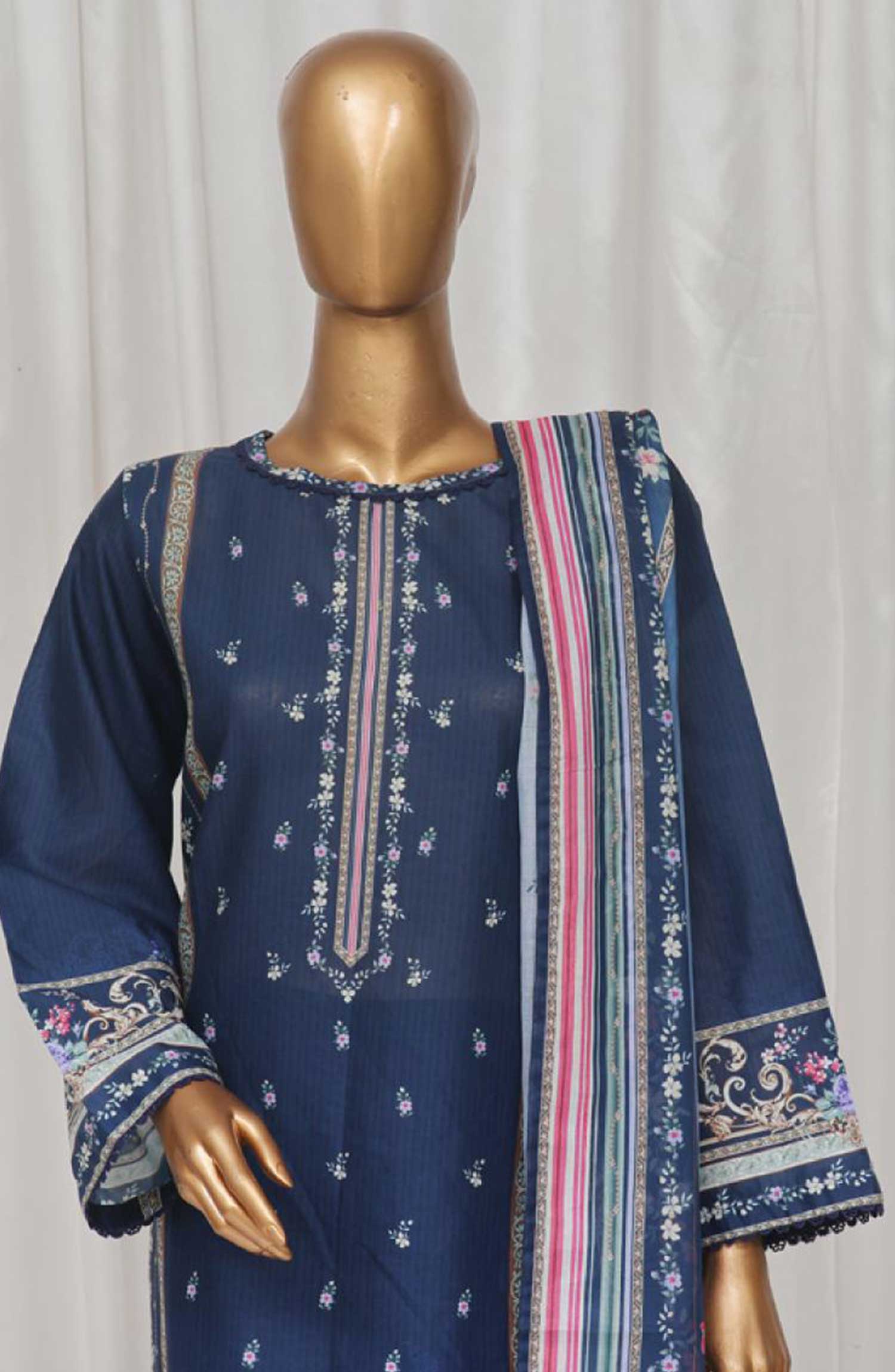 Home Bin Saeed Printed Lawn Stitched 3 Piece - SM 44 - BS25EL - Dark Blue - Summer Collection