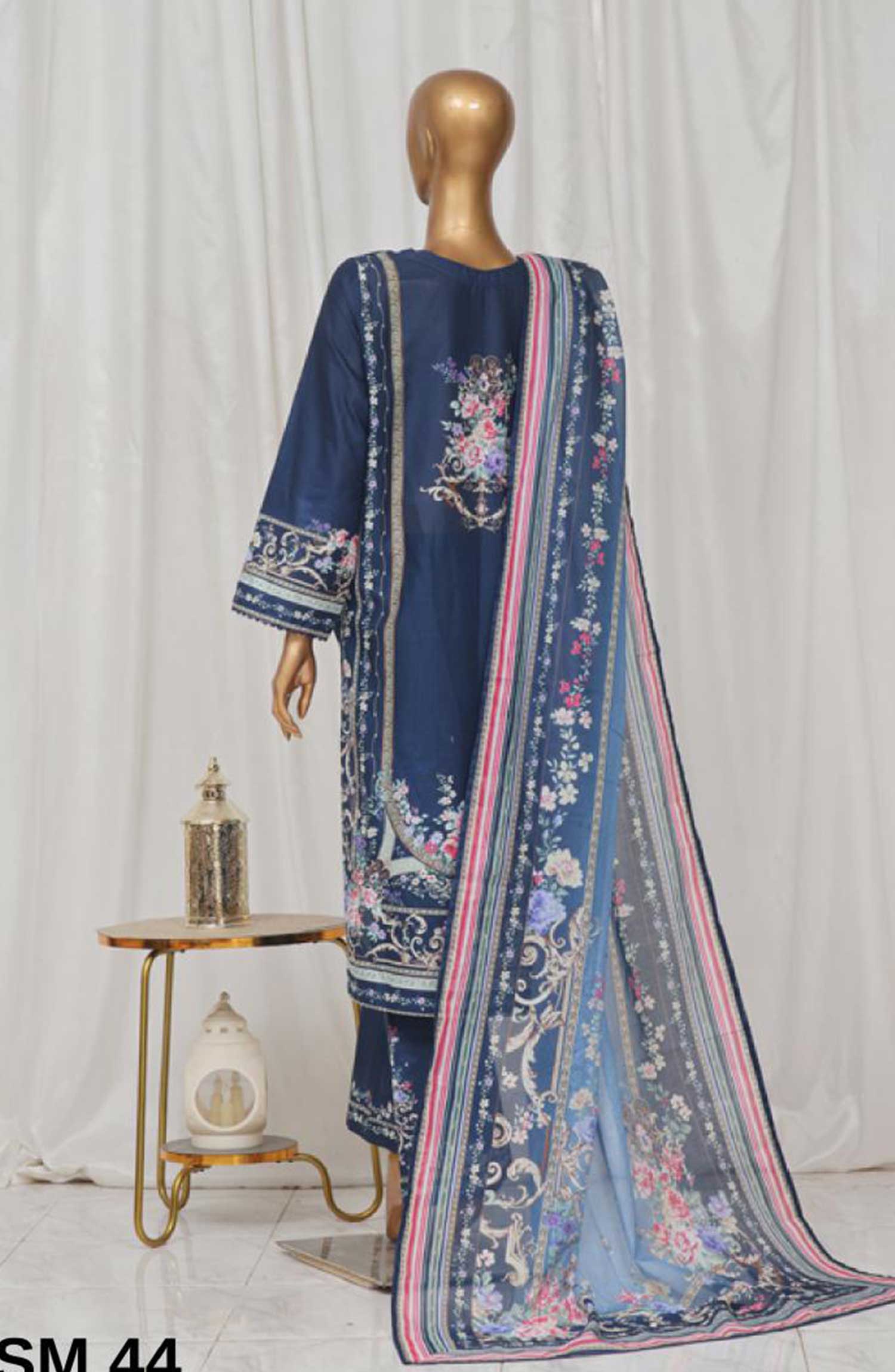 Bin Saeed Printed Lawn Stitched 3 Piece - SM 44 - BS25EL - Dark Blue - Summer Collection