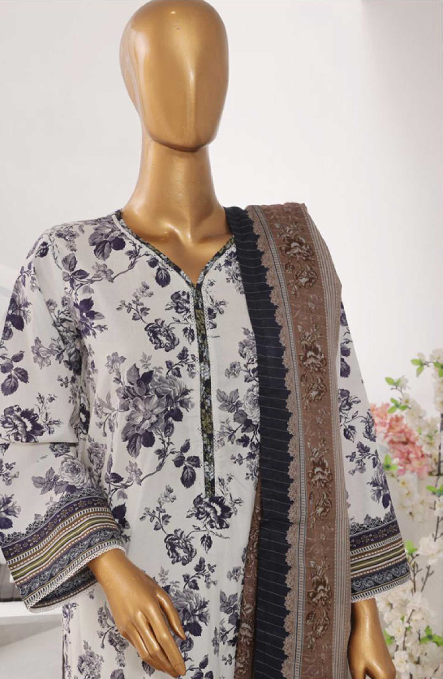 Home Bin Saeed Printed Lawn Stitched 3 Piece - SM 489 - BS25EL - White - Summer Collection