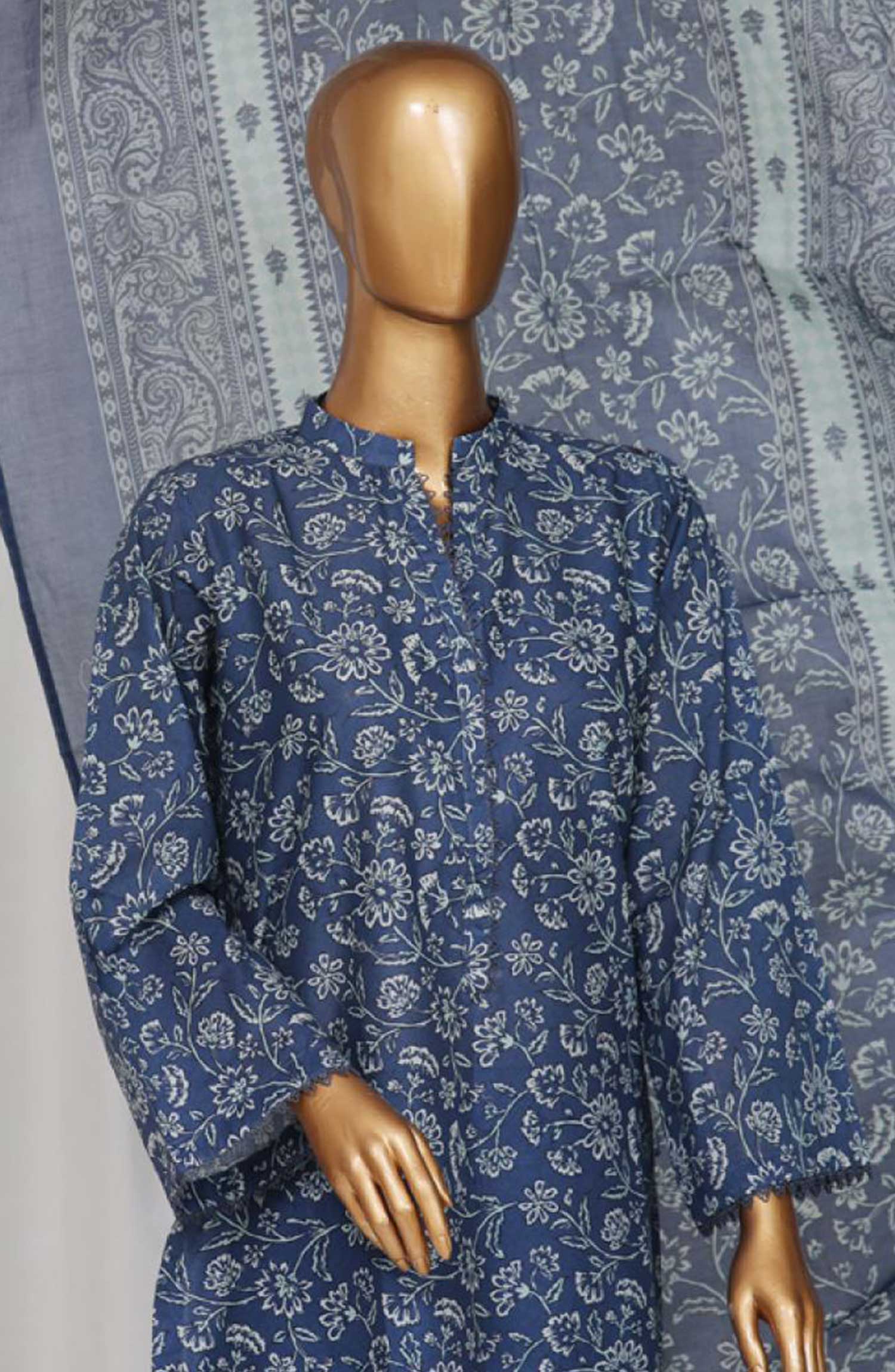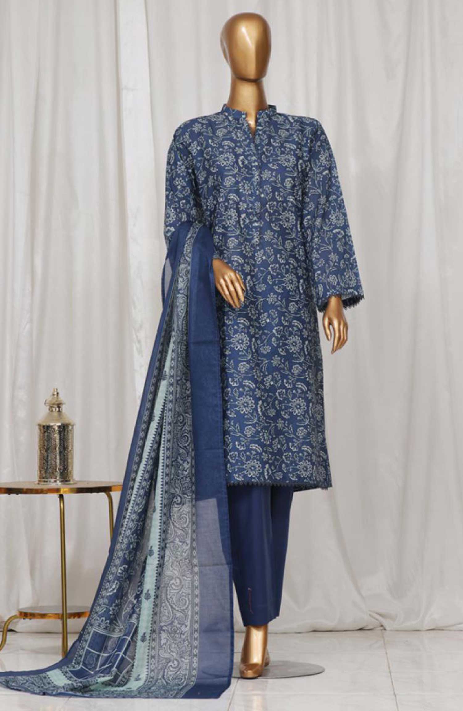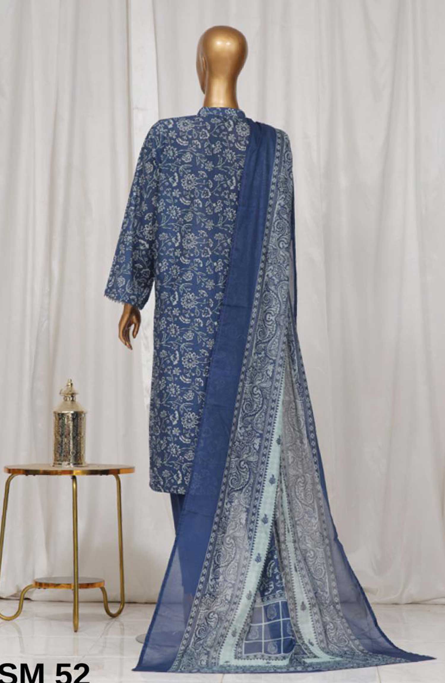 Home Bin Saeed Printed Lawn Stitched 3 Piece - SM-52 - BS25EL - Dark Blue - Summer Collection
