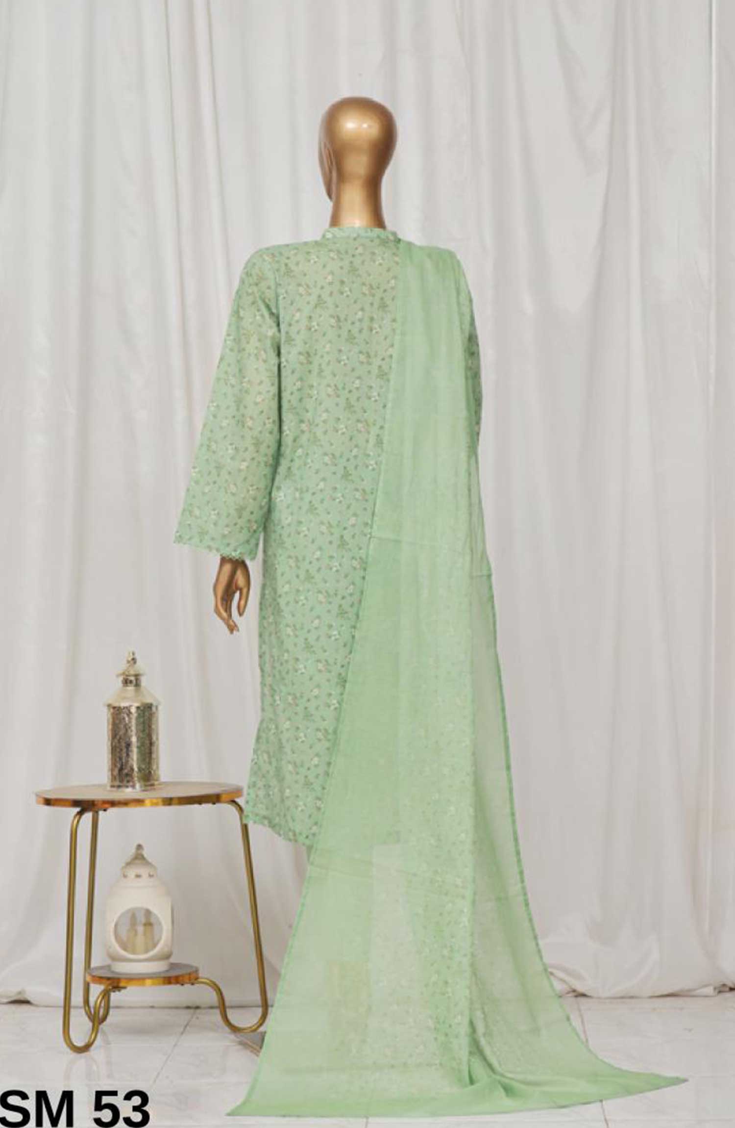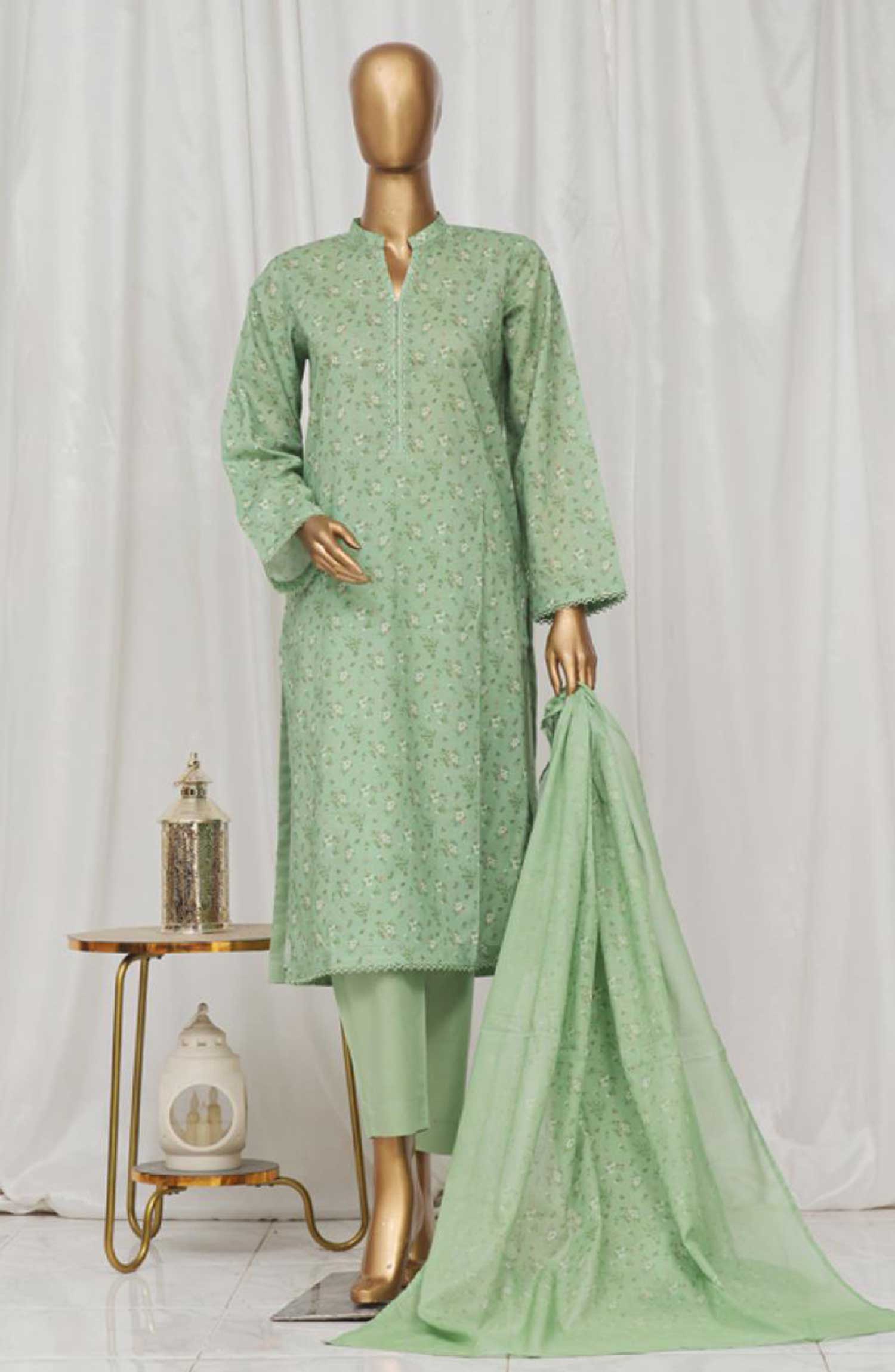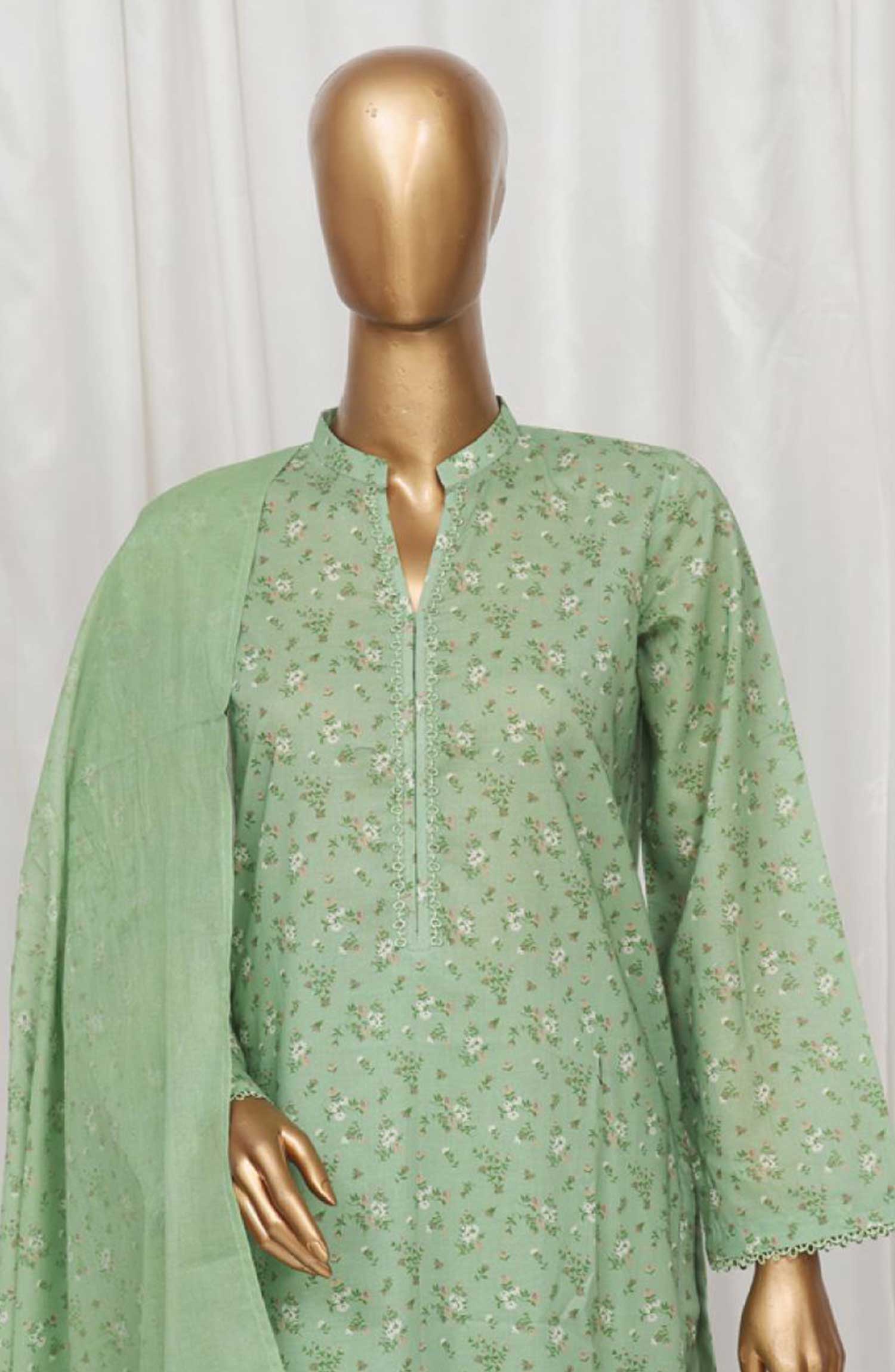 Home Bin Saeed Printed Lawn Stitched 3 Piece - SM 53 - BS25EL - Green - Summer Collection