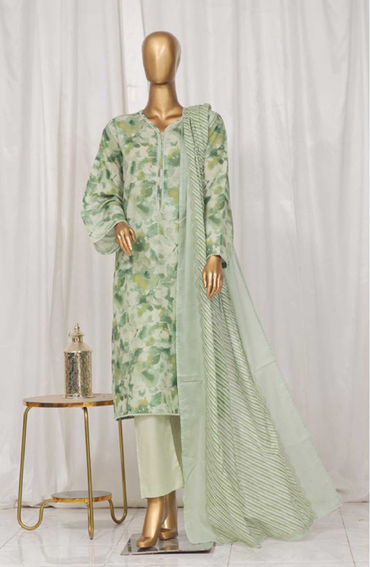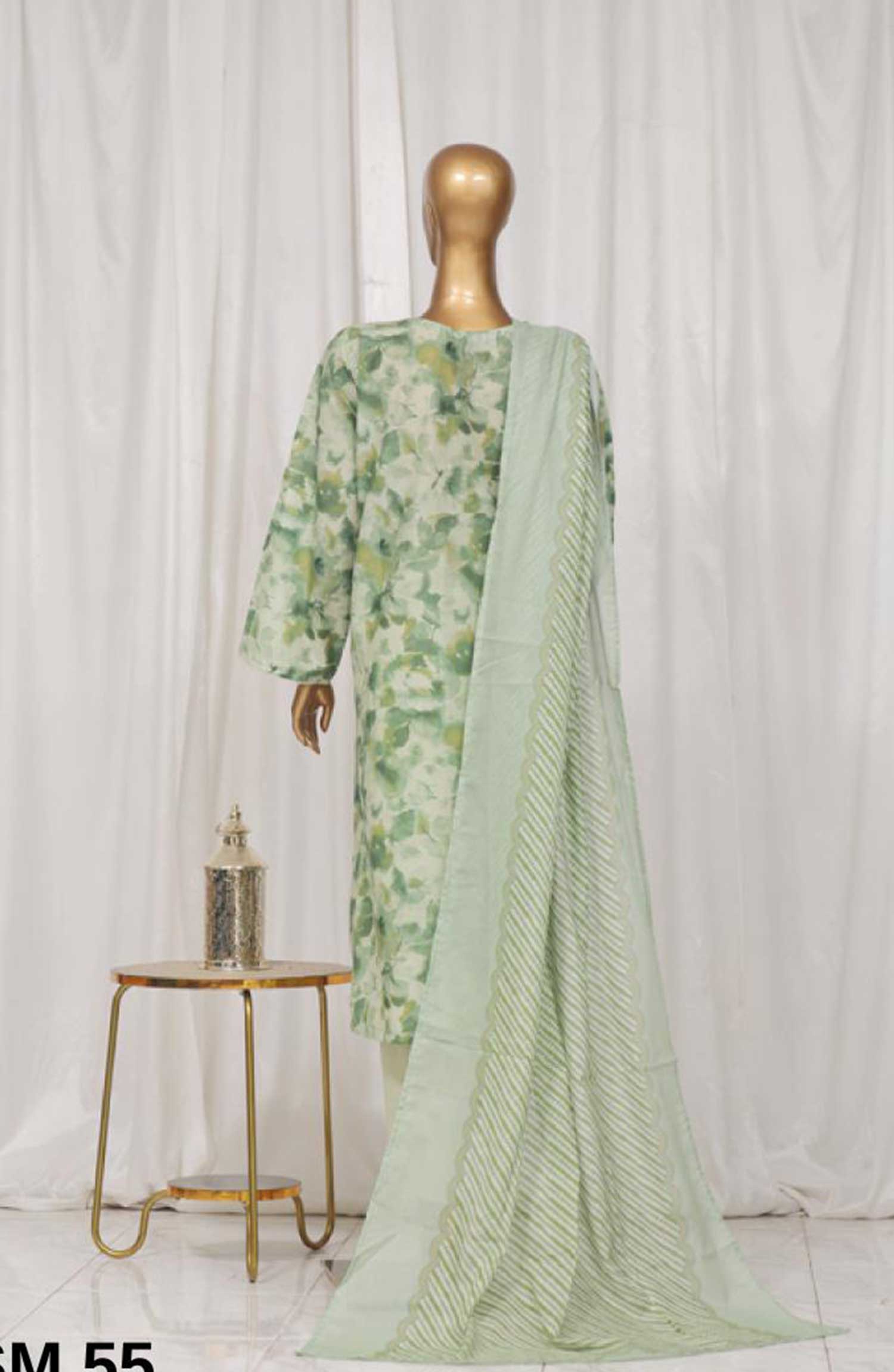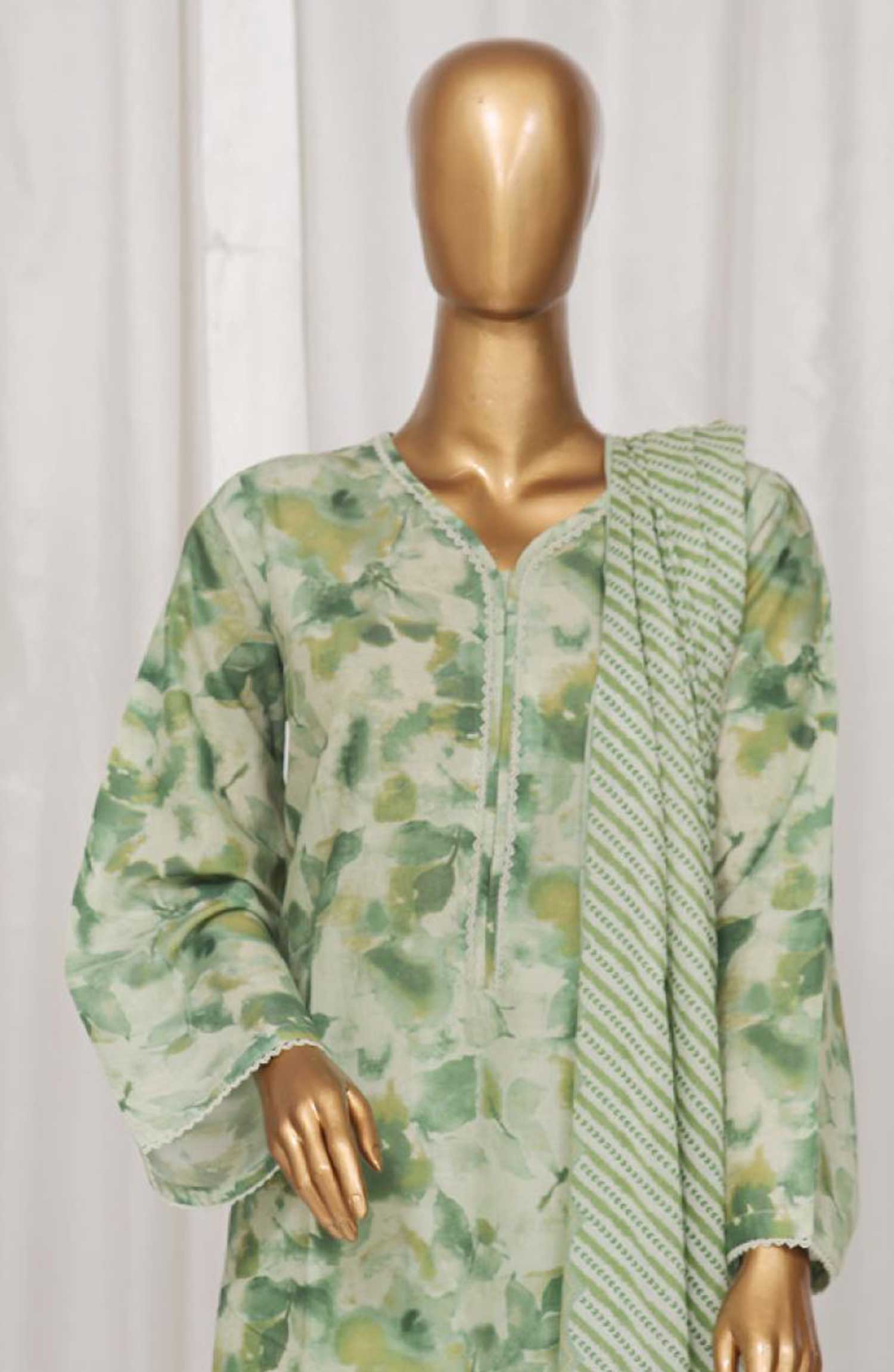 Home Bin Saeed Printed Lawn Stitched 3 Piece - SM 55 - BS25EL - Green - Summer Collection
