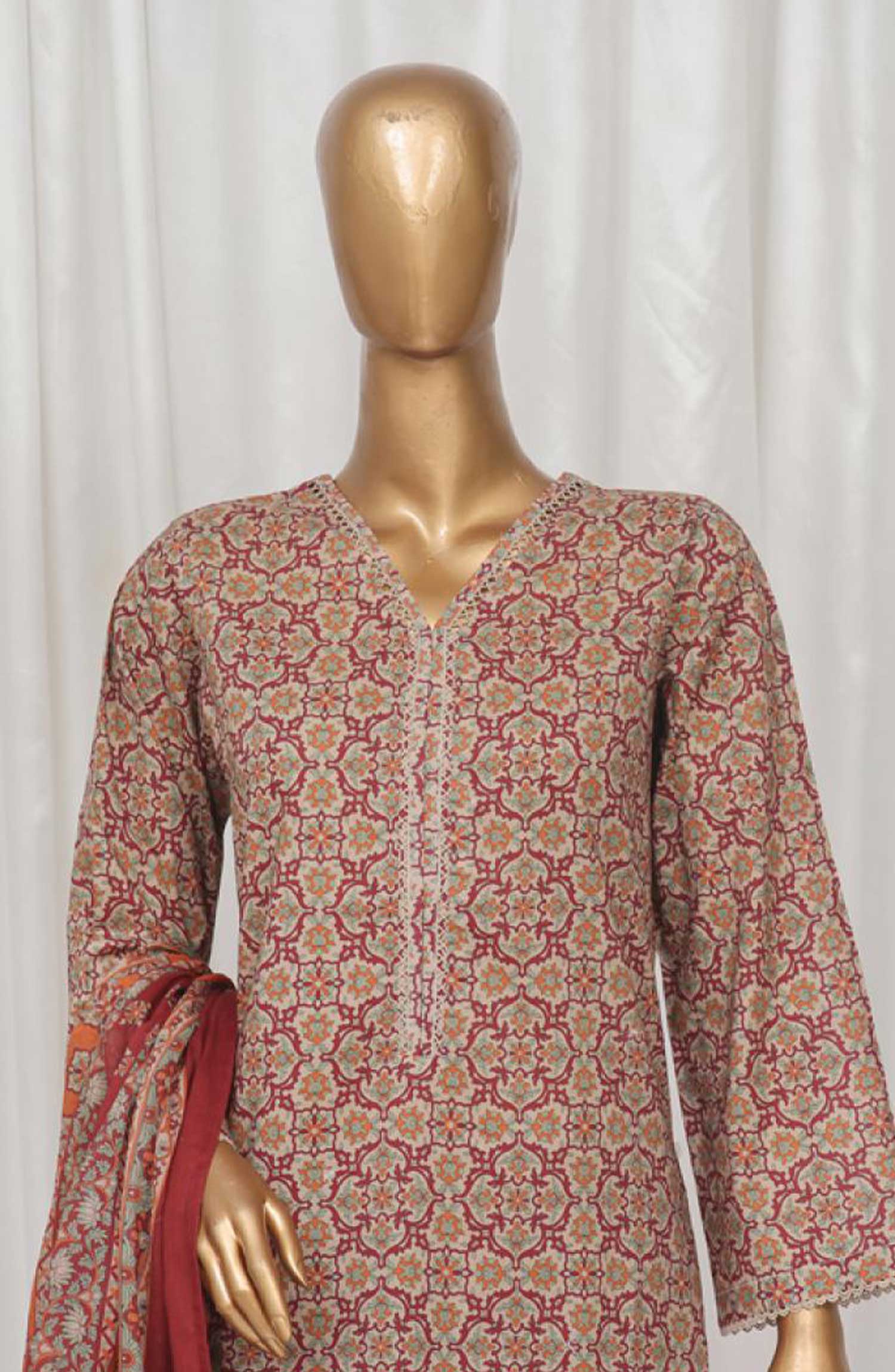 Home Bin Saeed Printed Lawn Stitched 3 Piece - SM 57 - BS25EL - Brown - Summer Collection