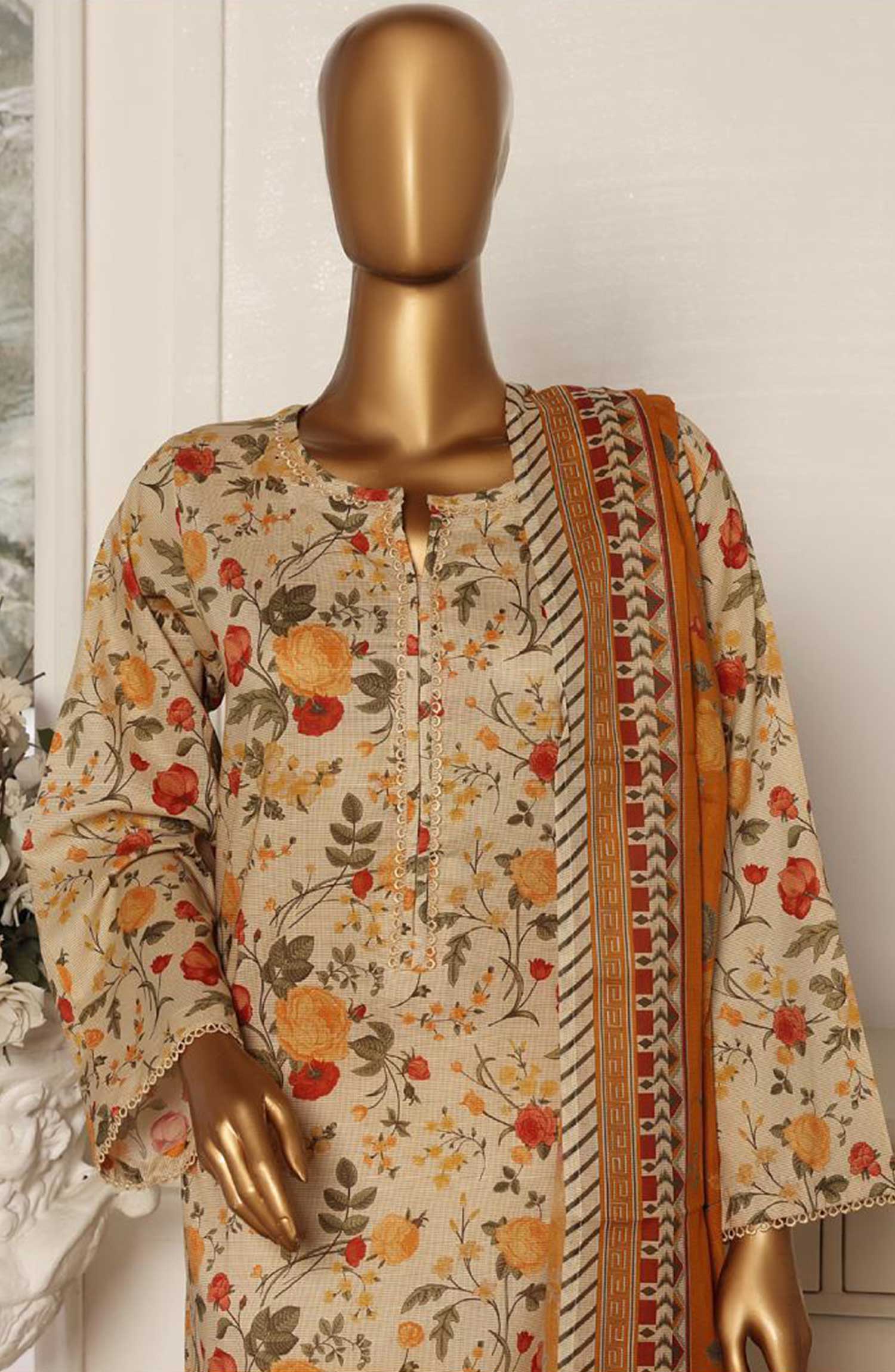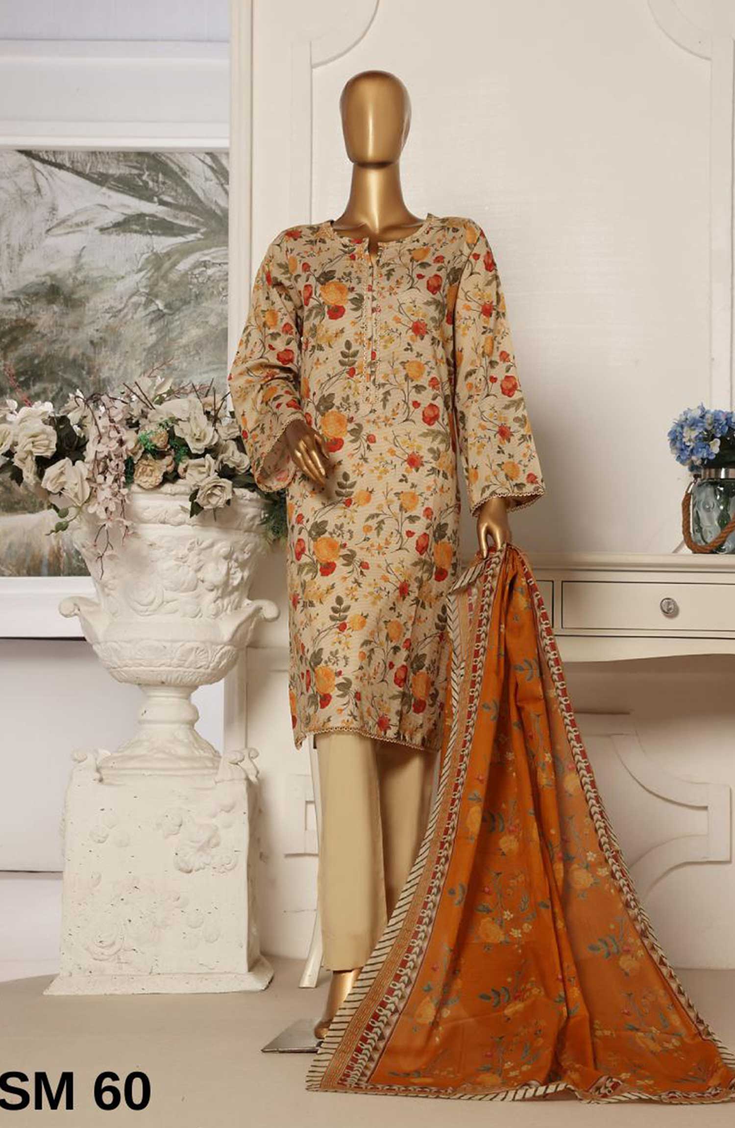Home Bin Saeed Printed Lawn Stitched 3 Piece - SM 60 - BS25EL - Biscotti - Summer Collection