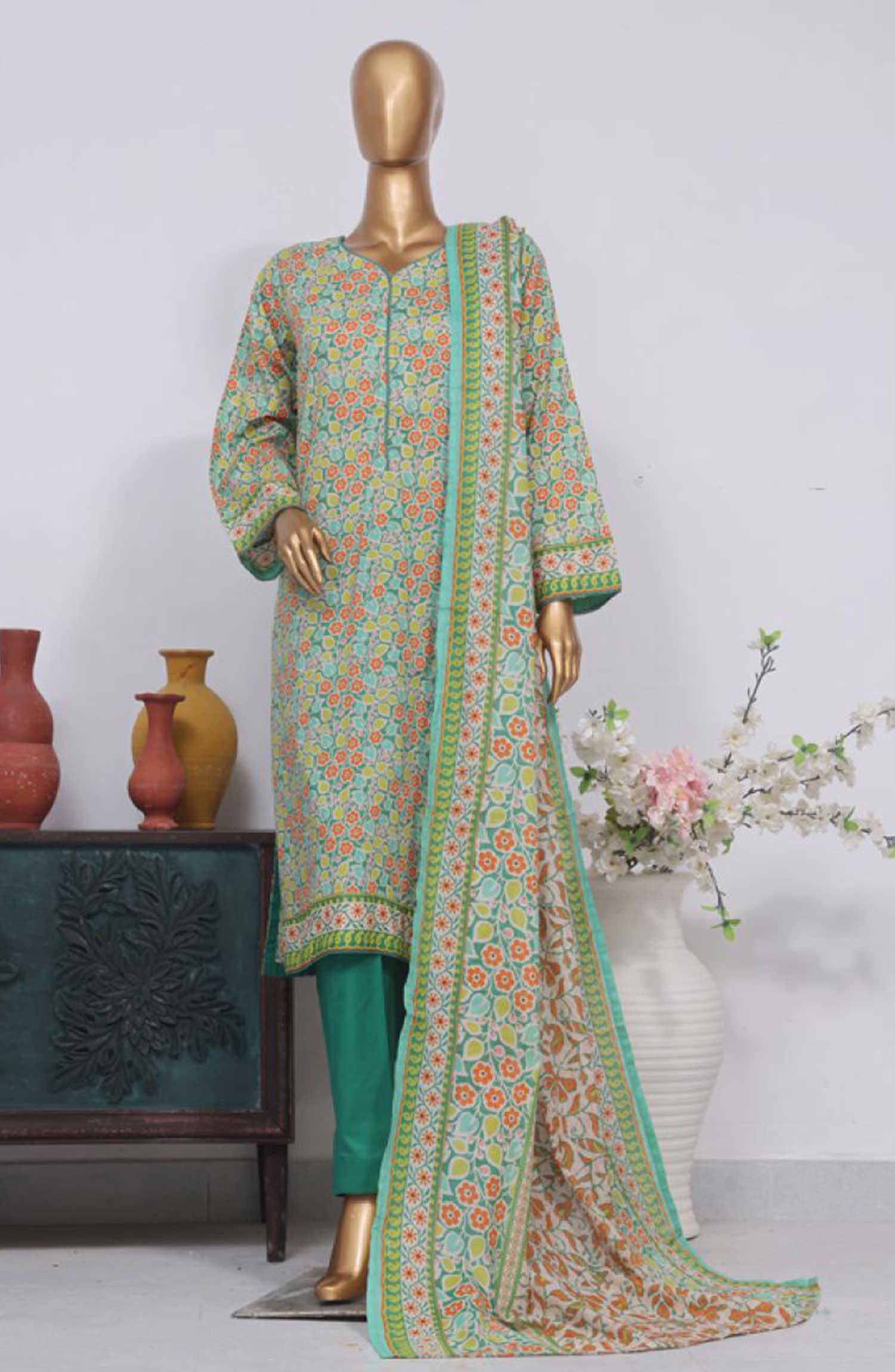 Bin Saeed Exclusive Printed Lawn 3PC Collection has been styled in the image for photography and illustrative purposes.