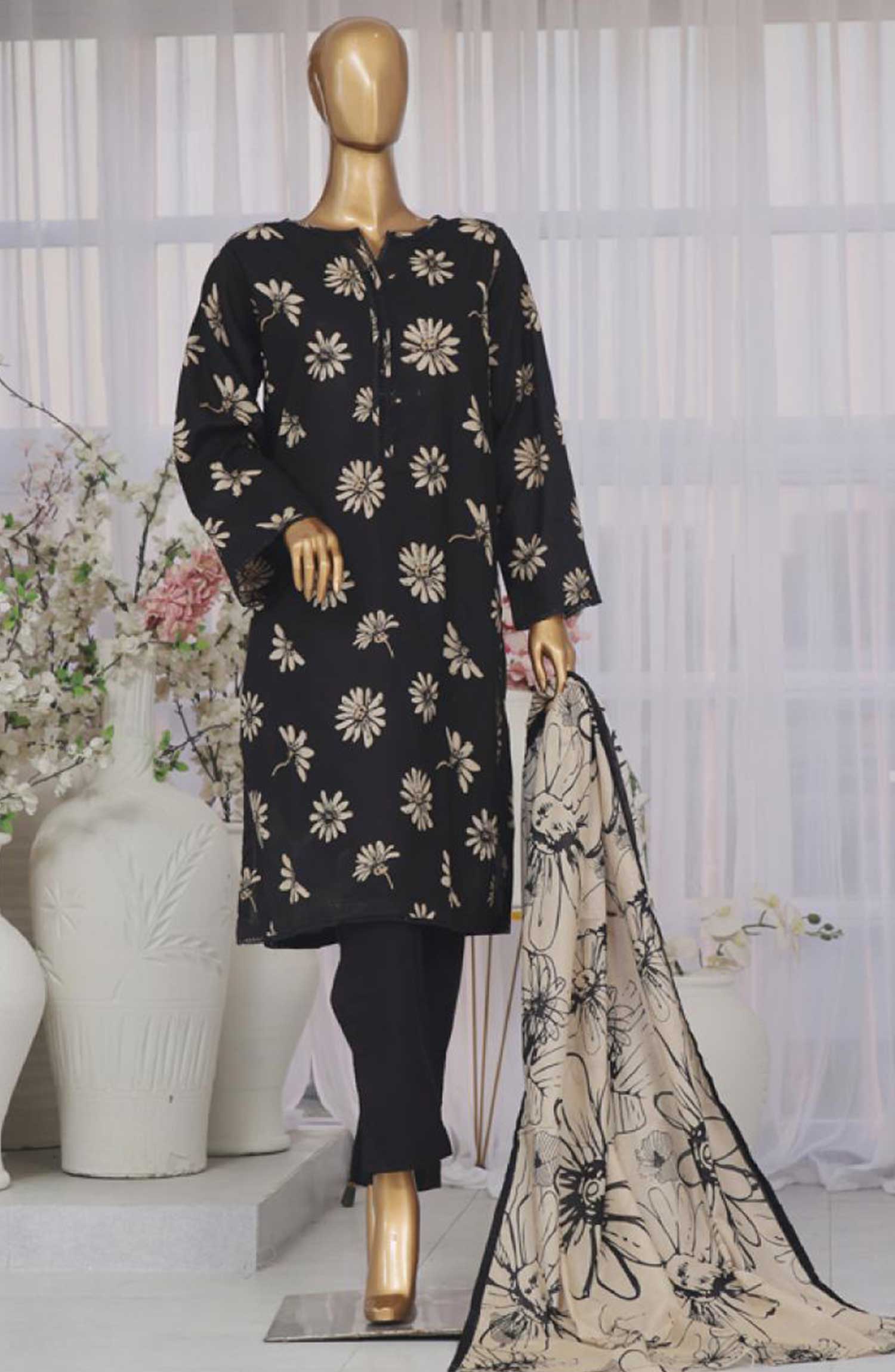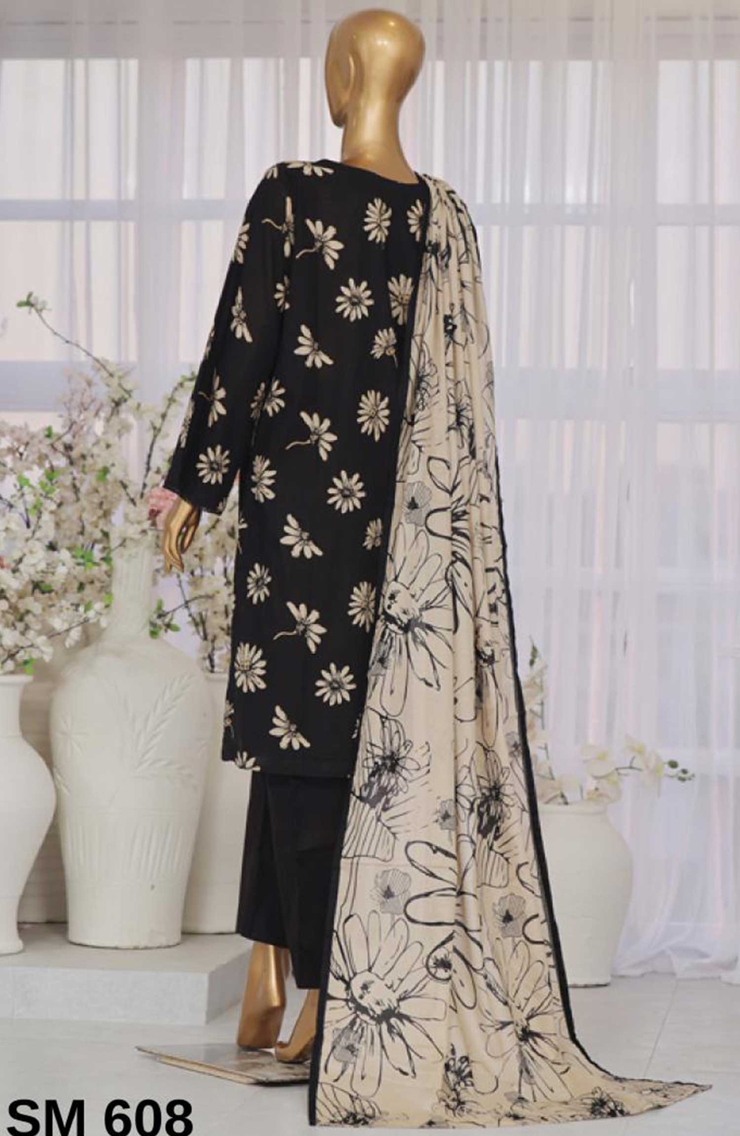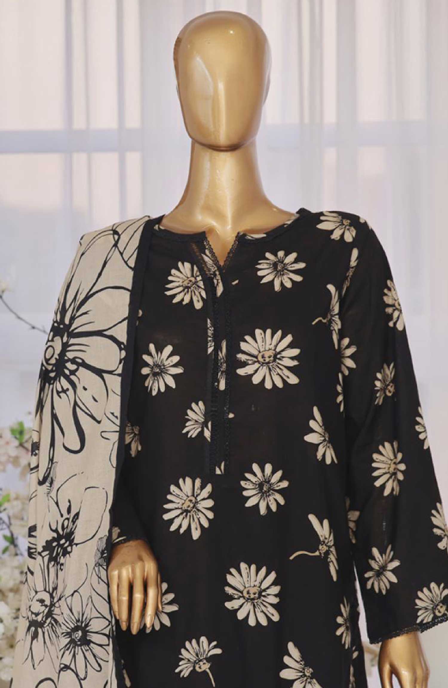 Home Bin Saeed Printed Lawn Stitched 3 Piece - SM-608 - BS25EL - Black - Summer Collection