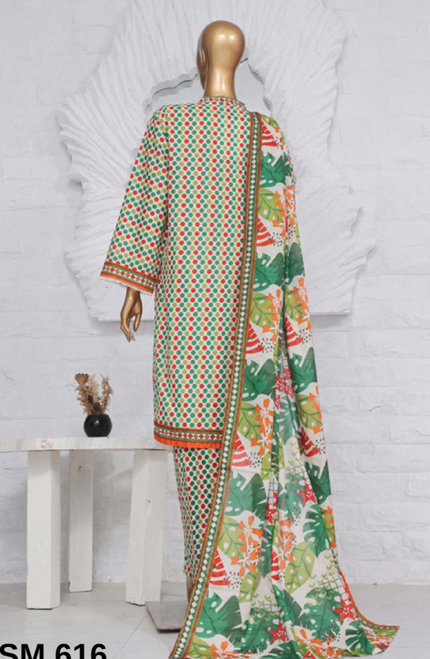Home Bin Saeed Printed Lawn Stitched 3 Piece - SM-616 - BS25EL - Green - Summer Collection