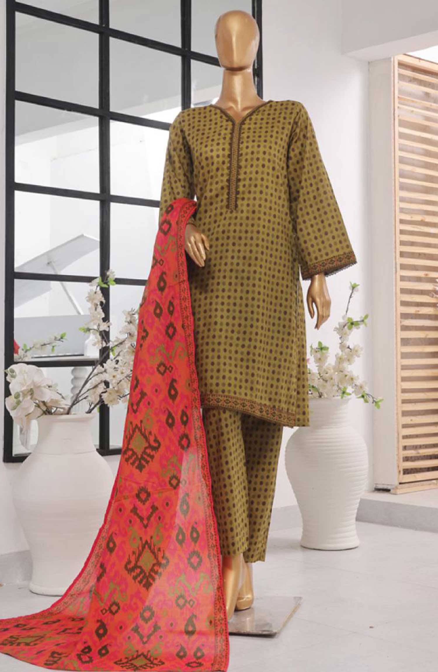 Home Bin Saeed Printed Lawn Stitched 3 Piece - SM 618 - BS25EL - Green - Summer Collection
