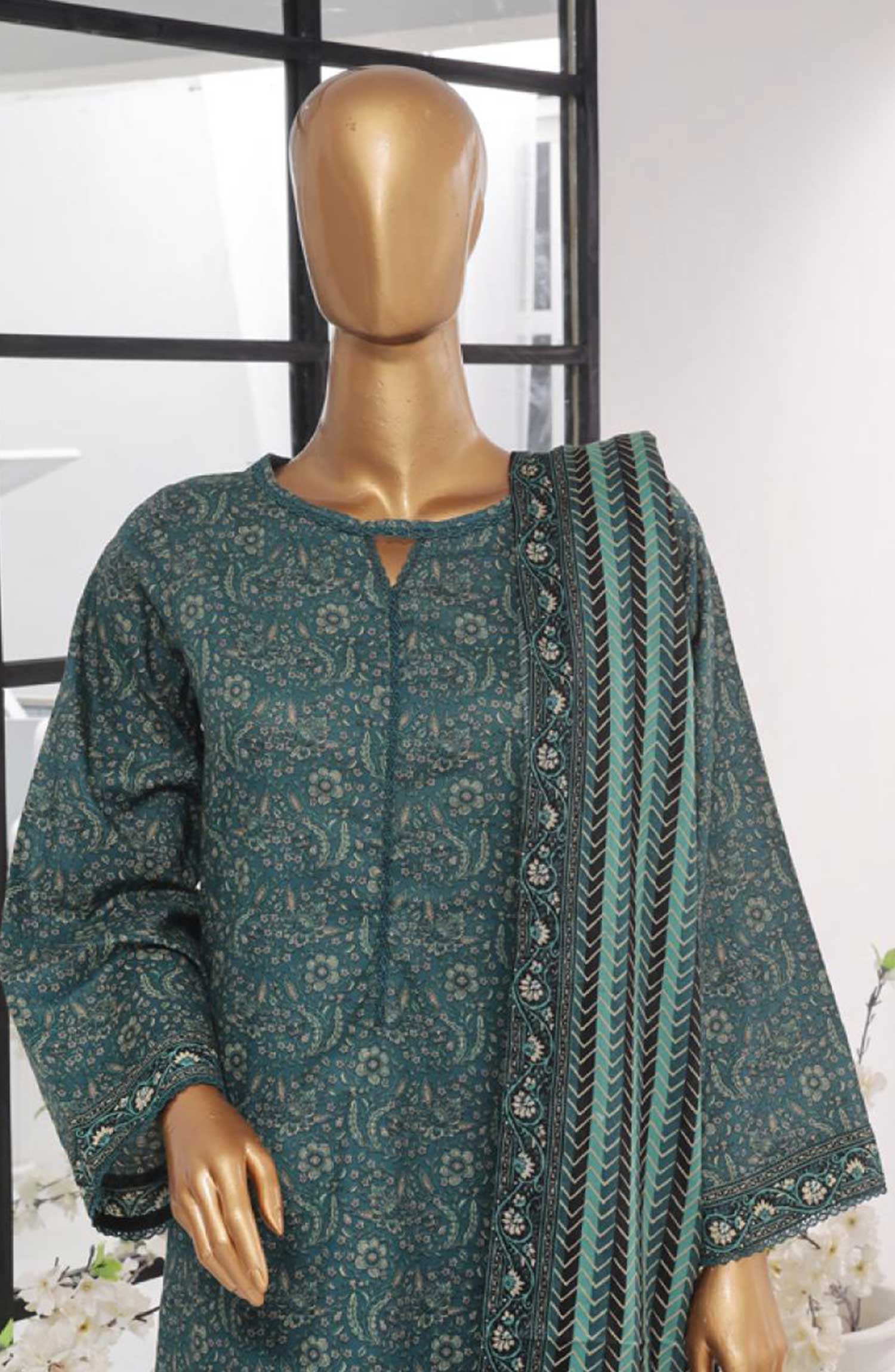 Modest Embroidered Khaddar Stitched 3 Piece Suit - 10040-Pnk - MOD25WNT - Pink - Winter Collection