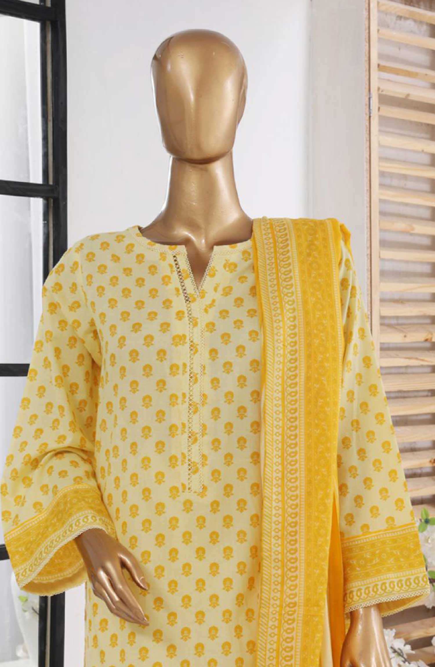 Home Bin Saeed Printed Lawn Stitched 3 Piece - SM-713 - BS25EL - Creamy Yellow - Summer Collection