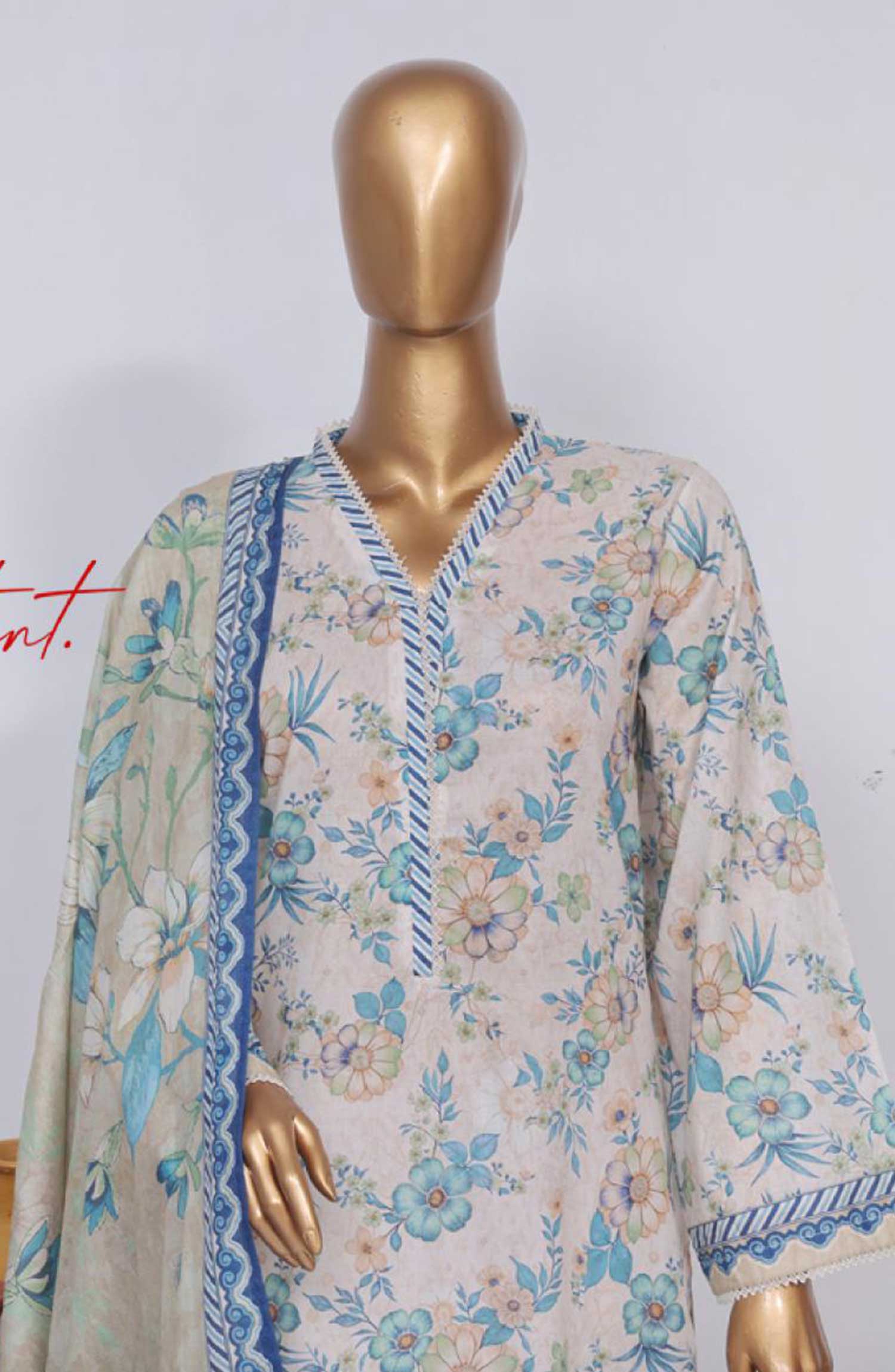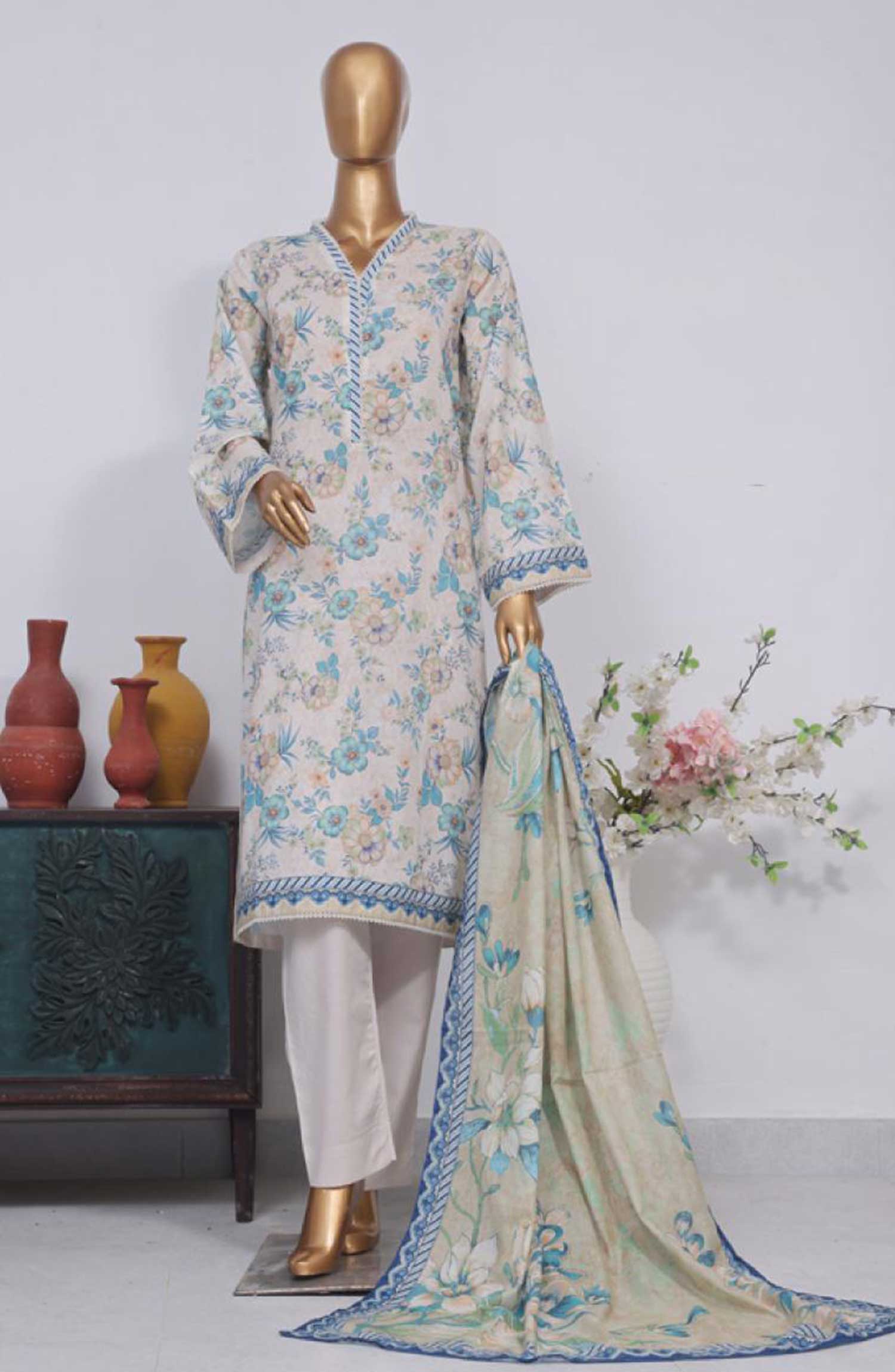 Bin Saeed Printed Lawn Stitched 3 Piece - SM-735 - BS25EL - White - Summer Collection
