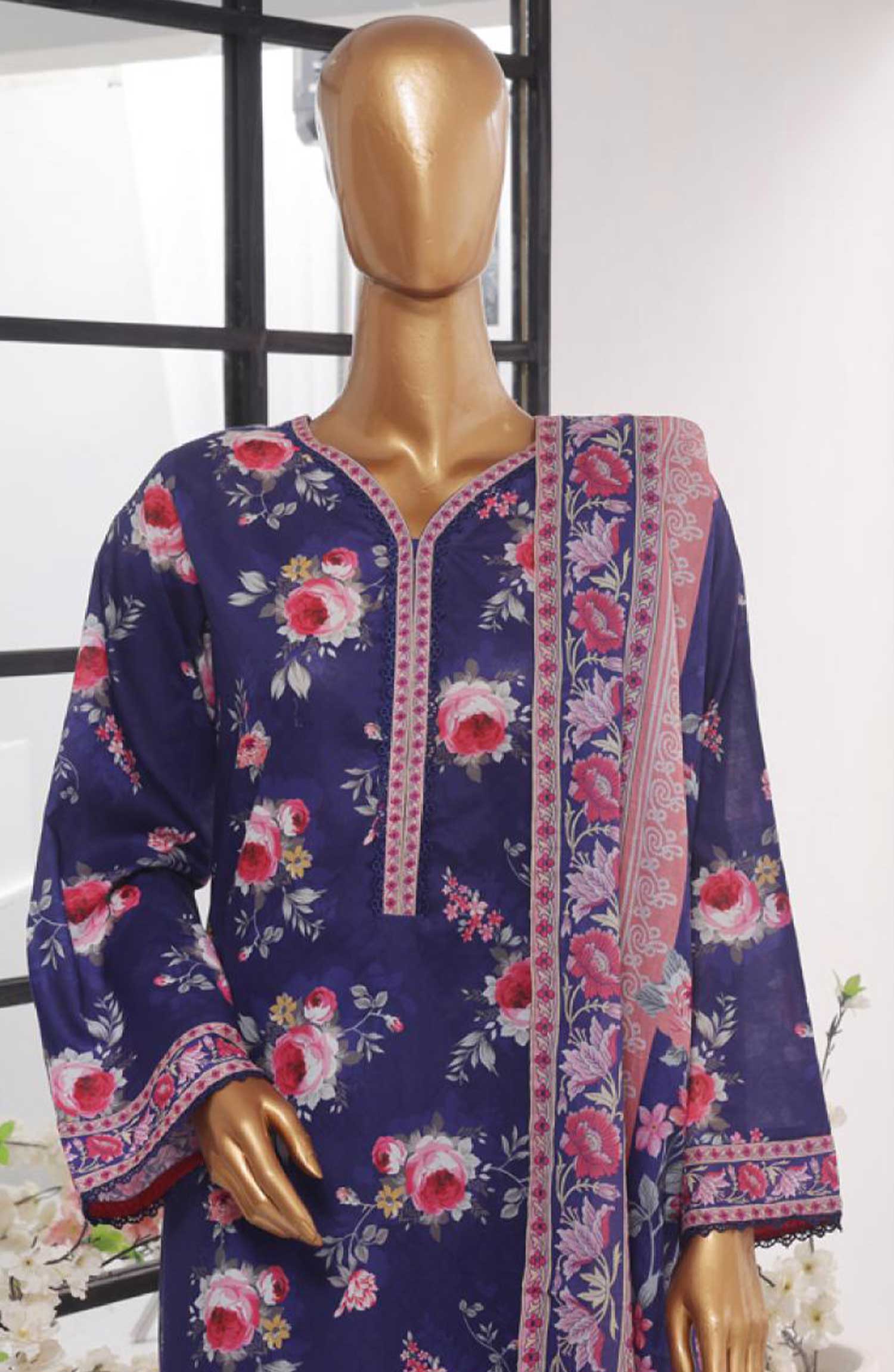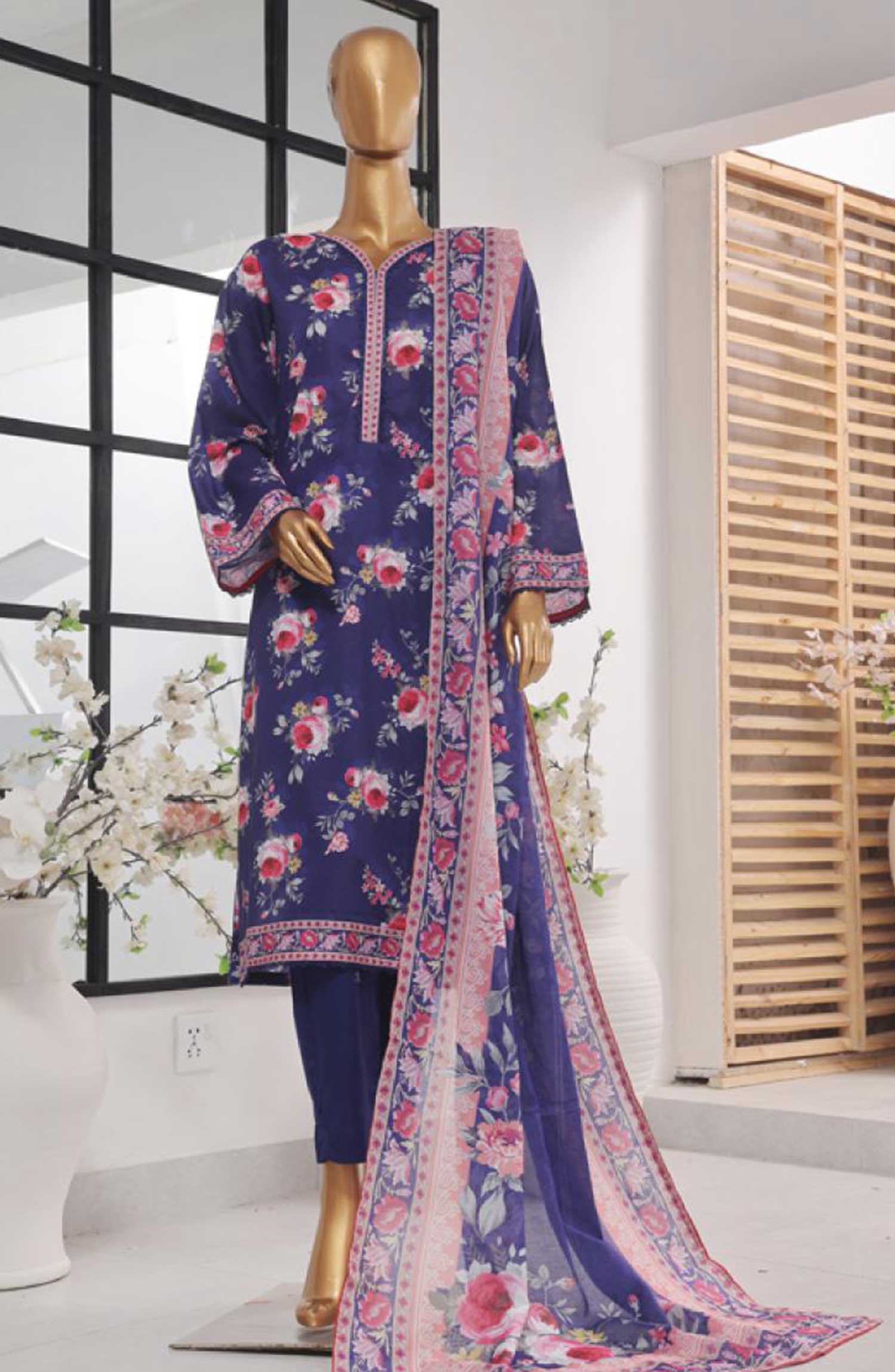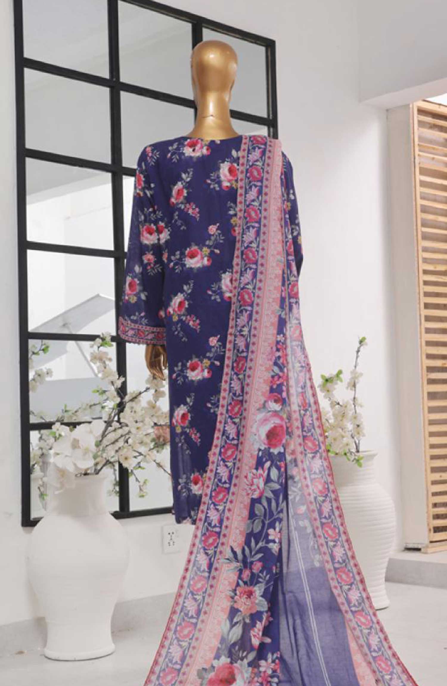 Home Bin Saeed Printed Lawn Stitched 3 Piece - SM 736 - BS25EL - Dark Blue - Summer Collection