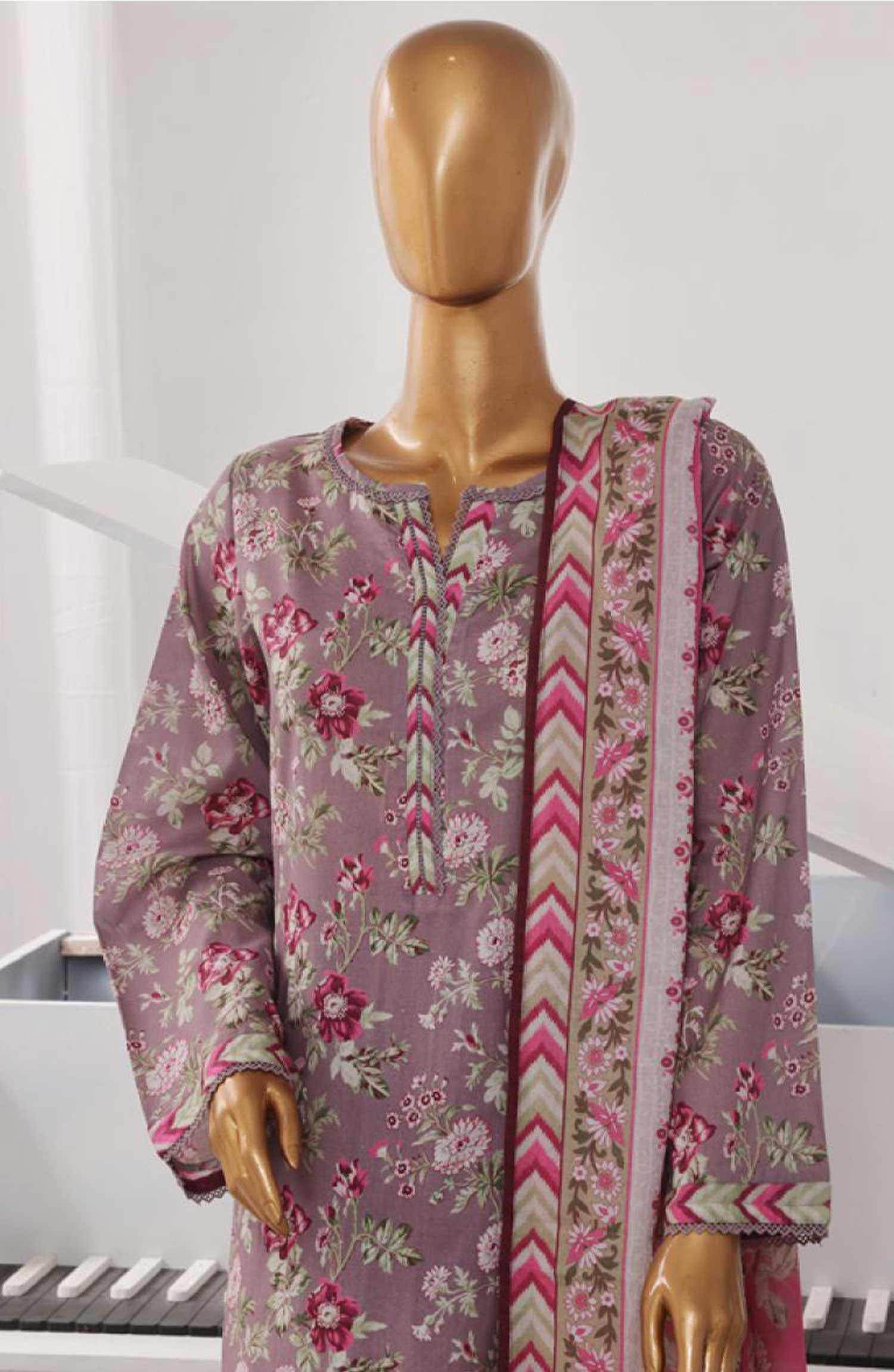 Home Bin Saeed Printed Lawn Stitched 3 Piece - SM 737 - BS25EL - Greyish Purple - Summer Collection