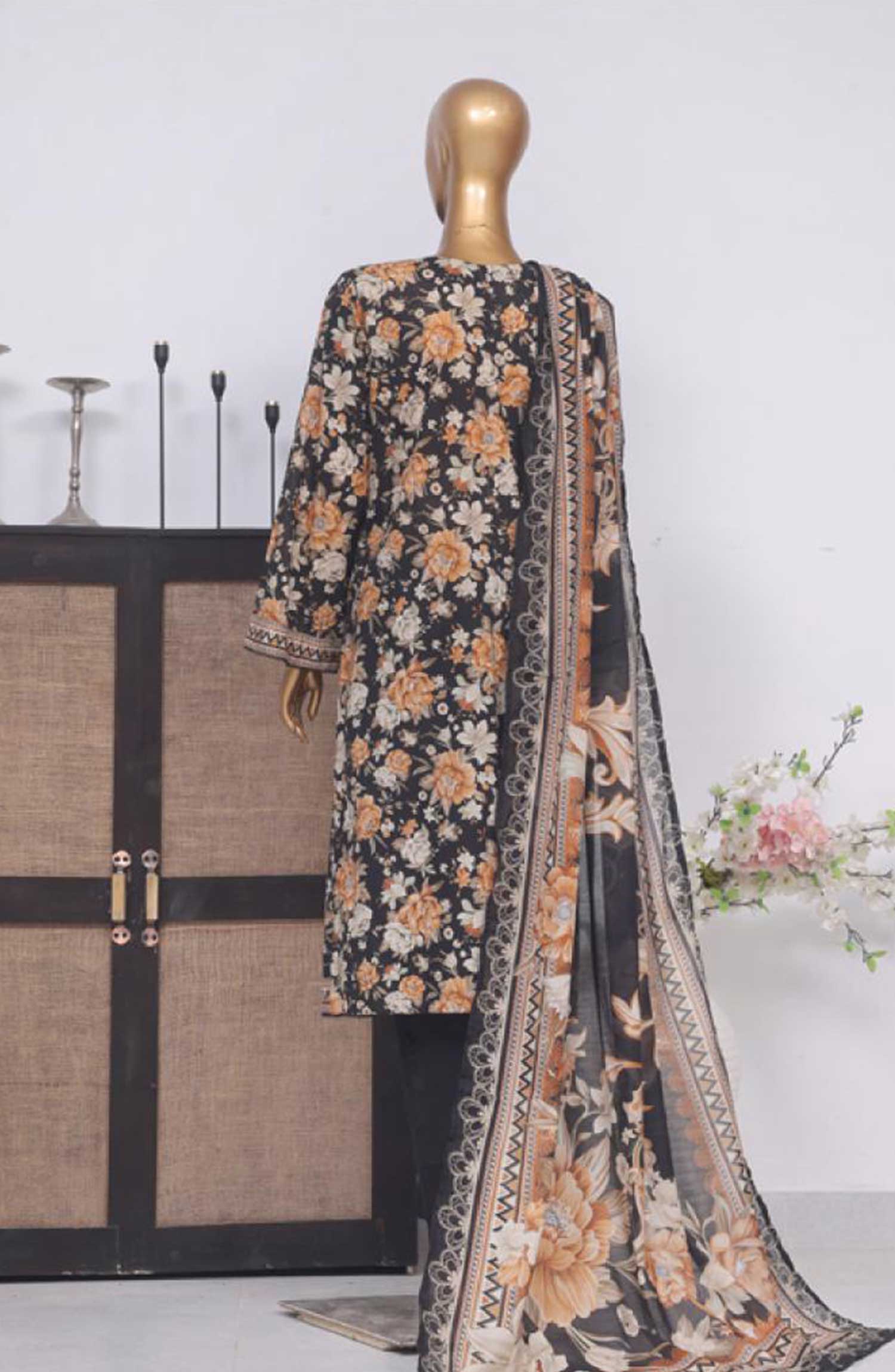 Home Bin Saeed Printed Lawn Stitched 3 Piece - SM 743 - BS25EL - Black - Summer Collection