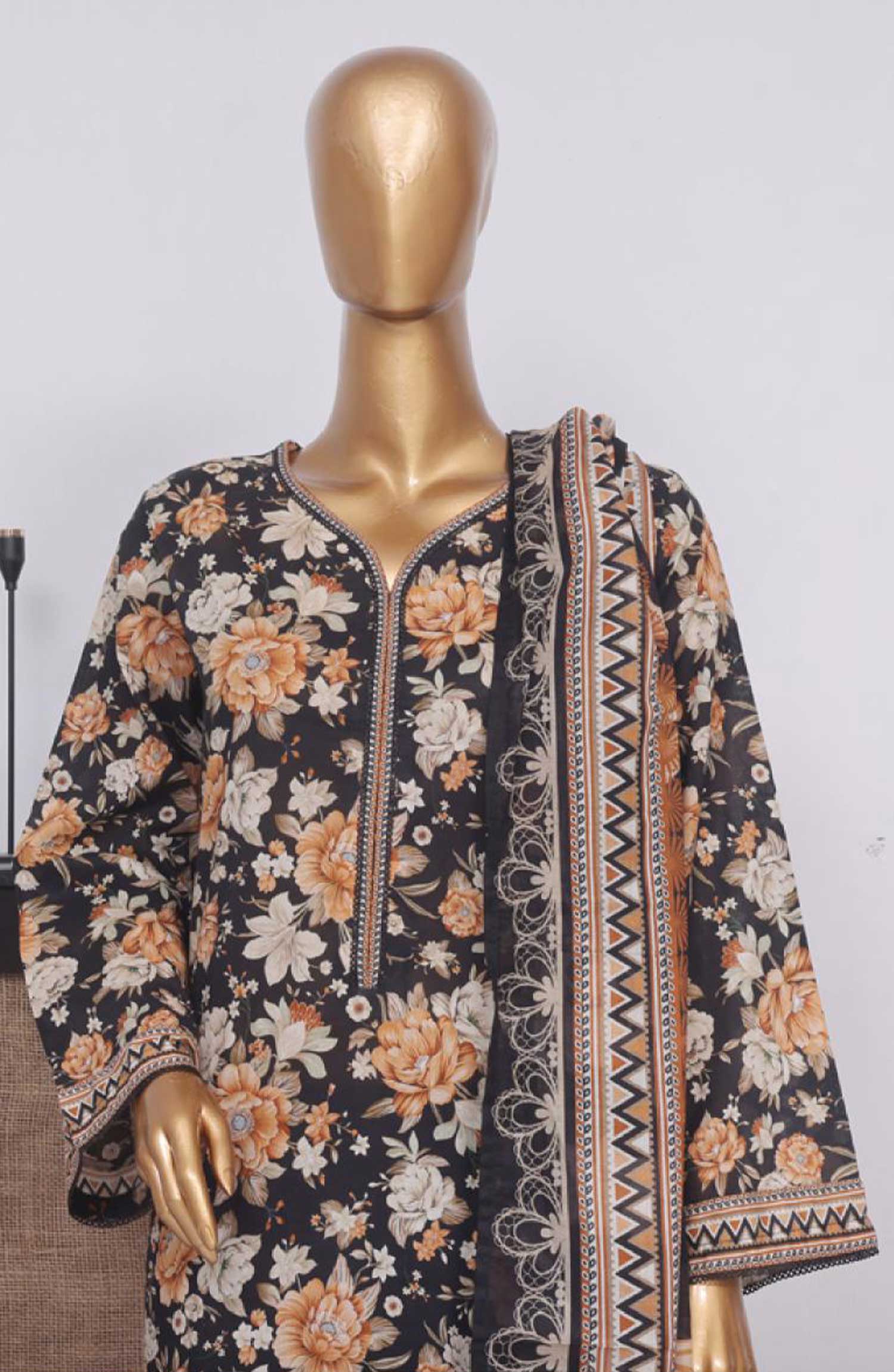 Bin Saeed Printed Lawn Stitched 3 Piece - SM 743 - BS25EL - Black - Summer Collection