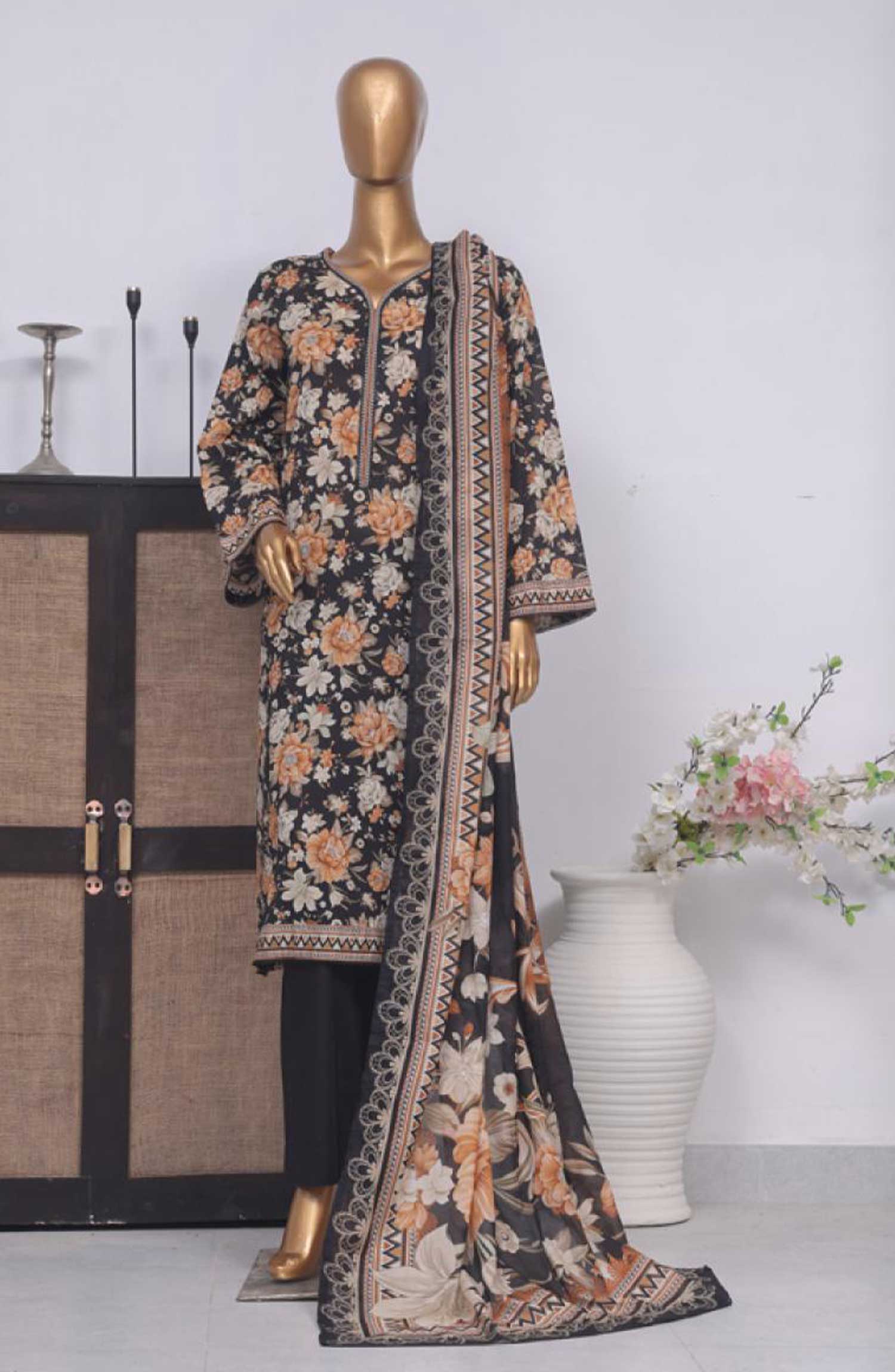 Modest Embroidered Khaddar Stitched 3 Piece Suit - 9990-Blk - MOD25WNT - Black - Winter Collection