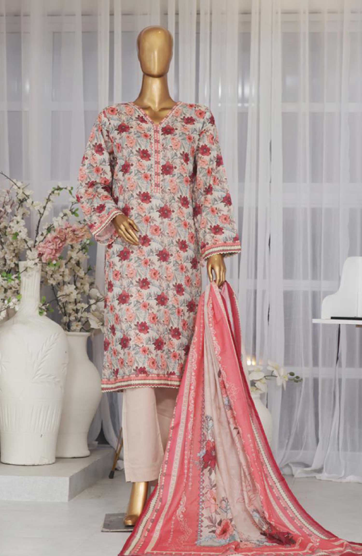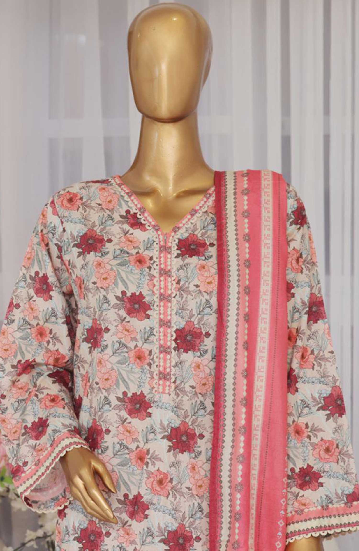Home Bin Saeed Printed Lawn Stitched 3 Piece - SM-744 - BS25EL - Tea Pink - Summer Collection