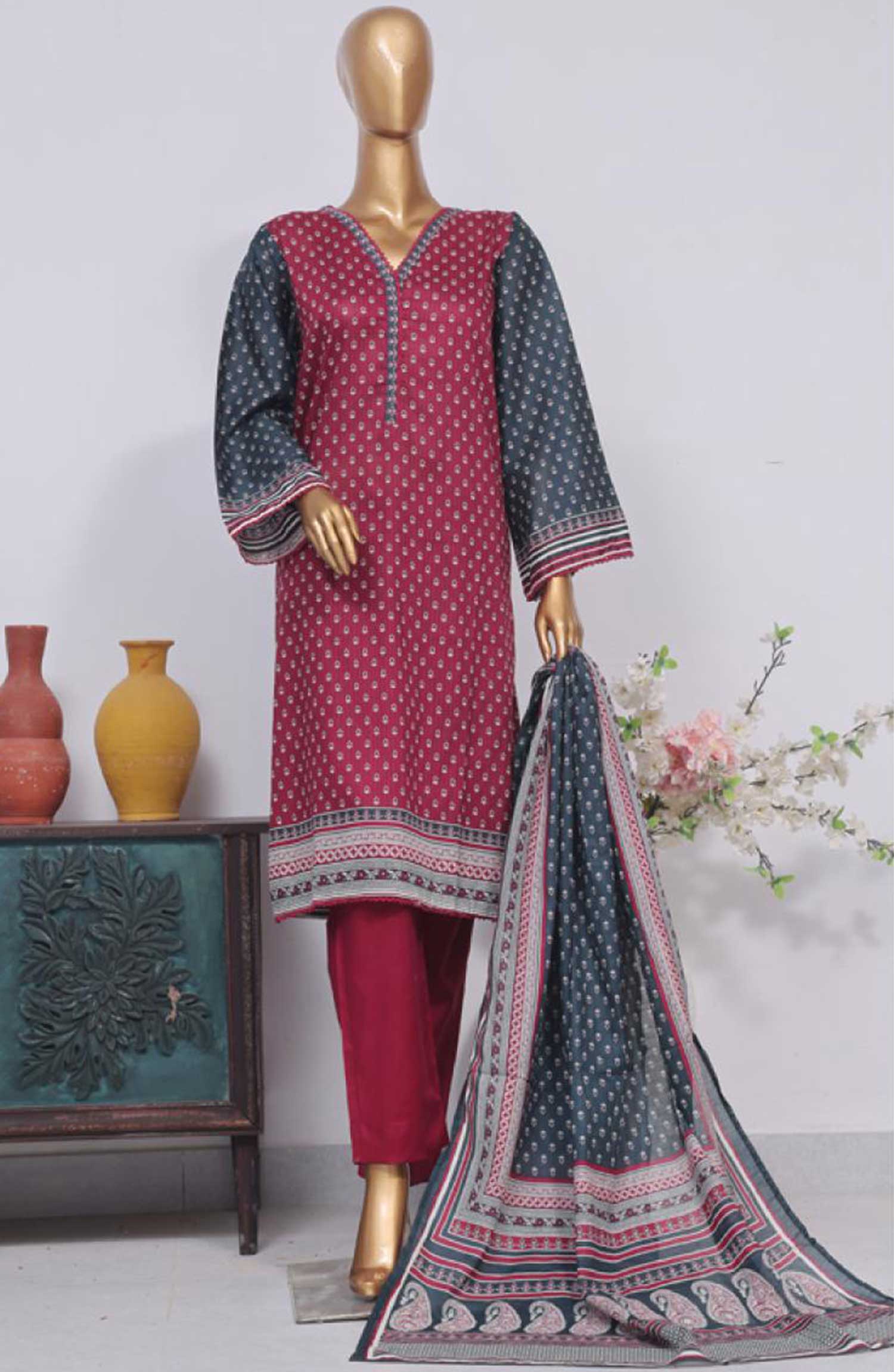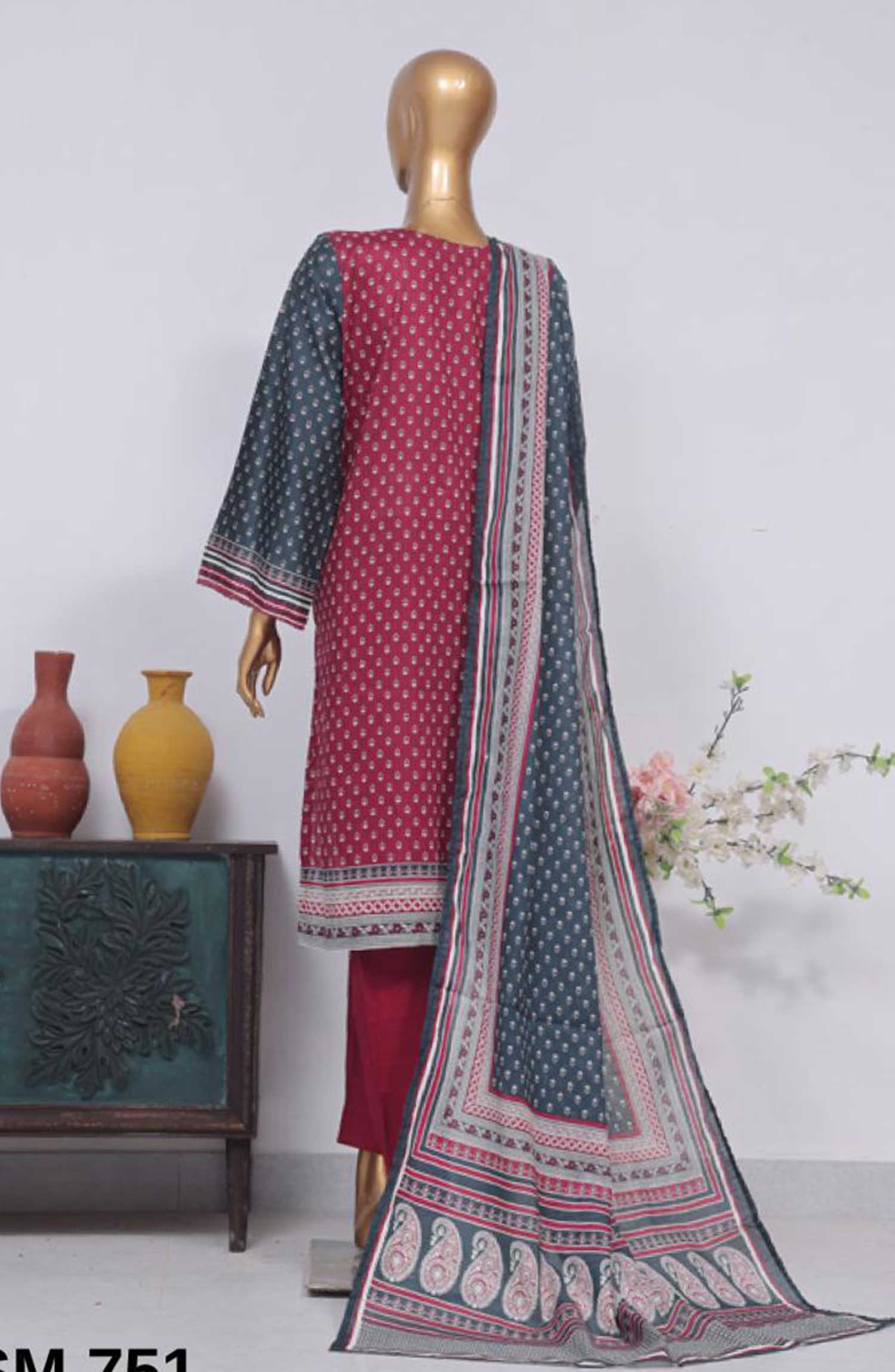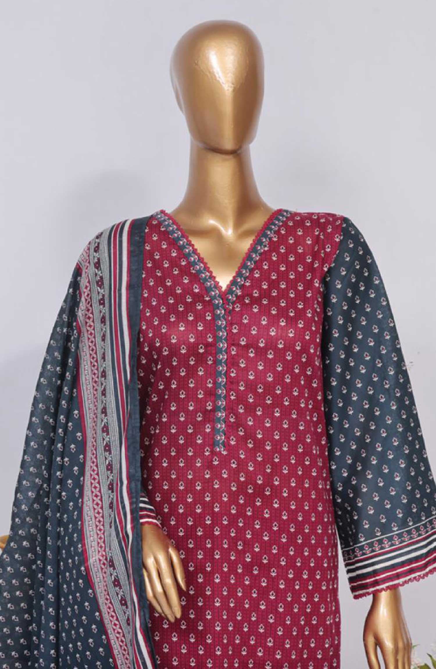 Home Bin Saeed Printed Lawn Stitched 3 Piece - SM-751 - BS25EL - Hot Pink - Summer Collection