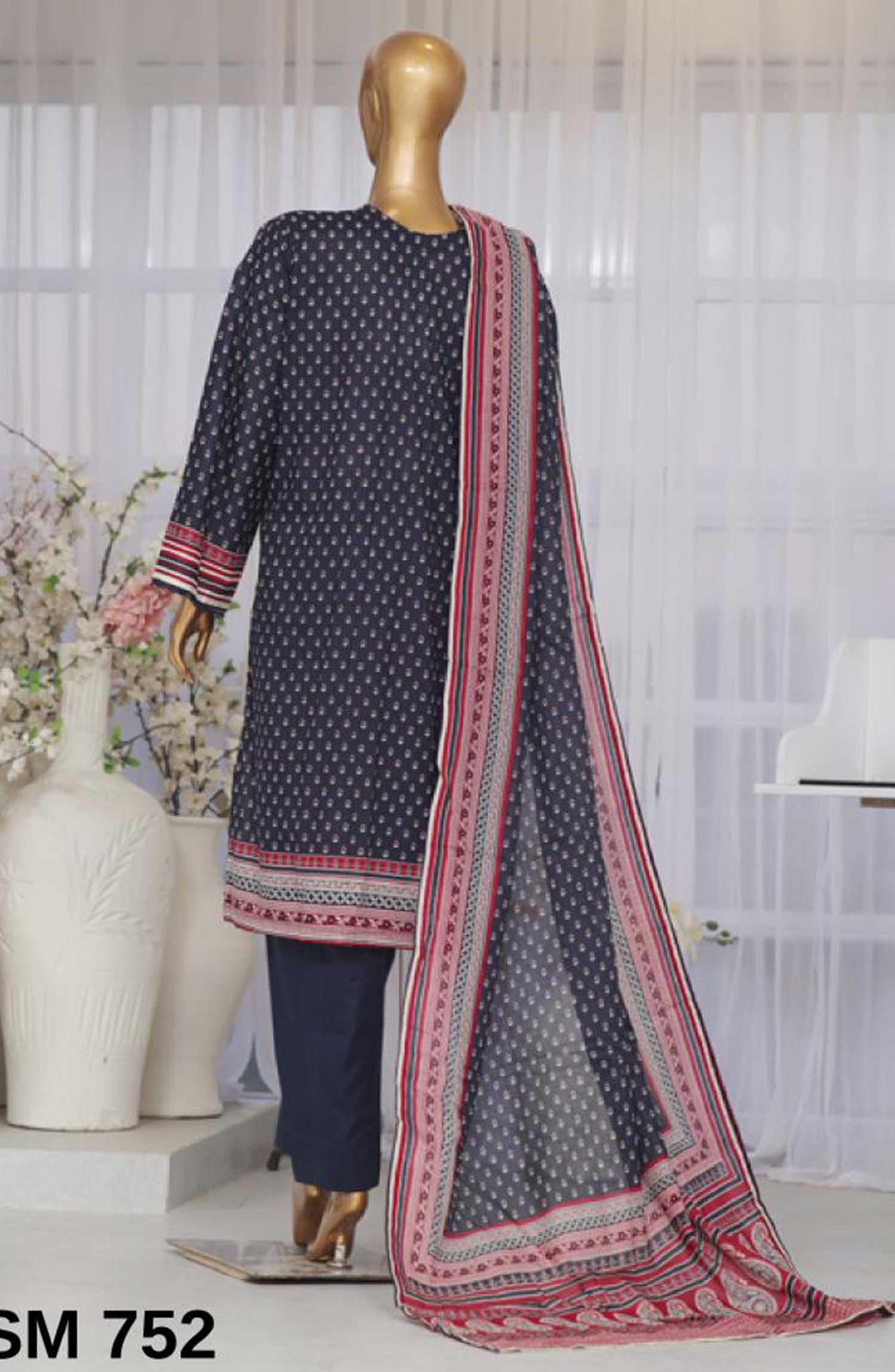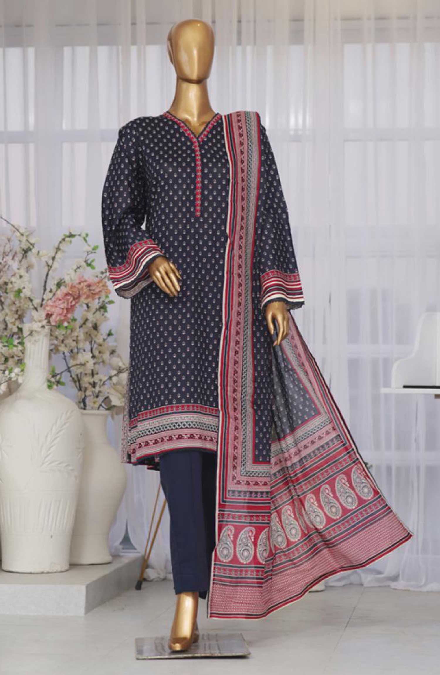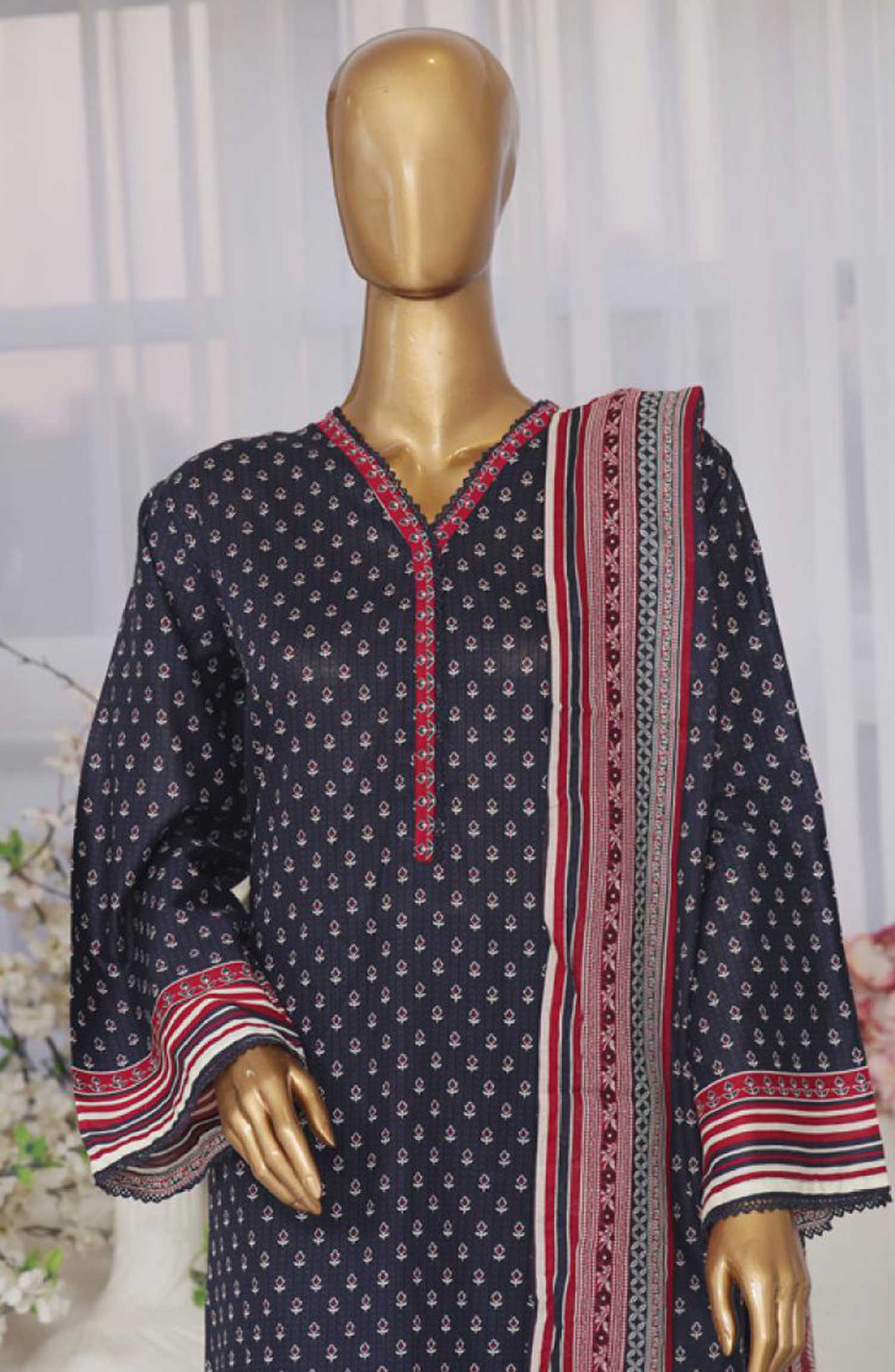 Home Bin Saeed Printed Lawn Stitched 3 Piece - SM-752 - BS25EL - Navy Blue - Summer Collection