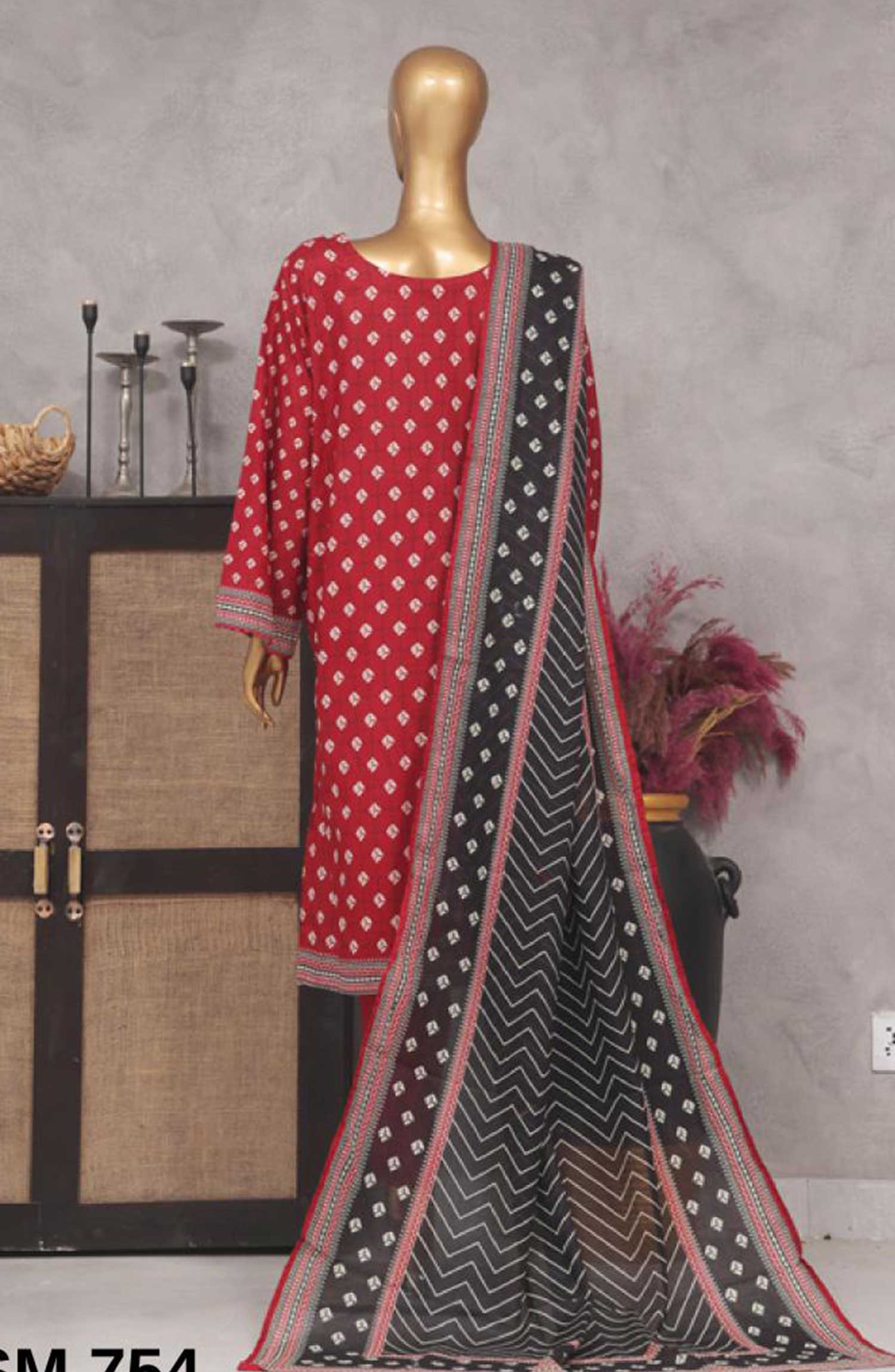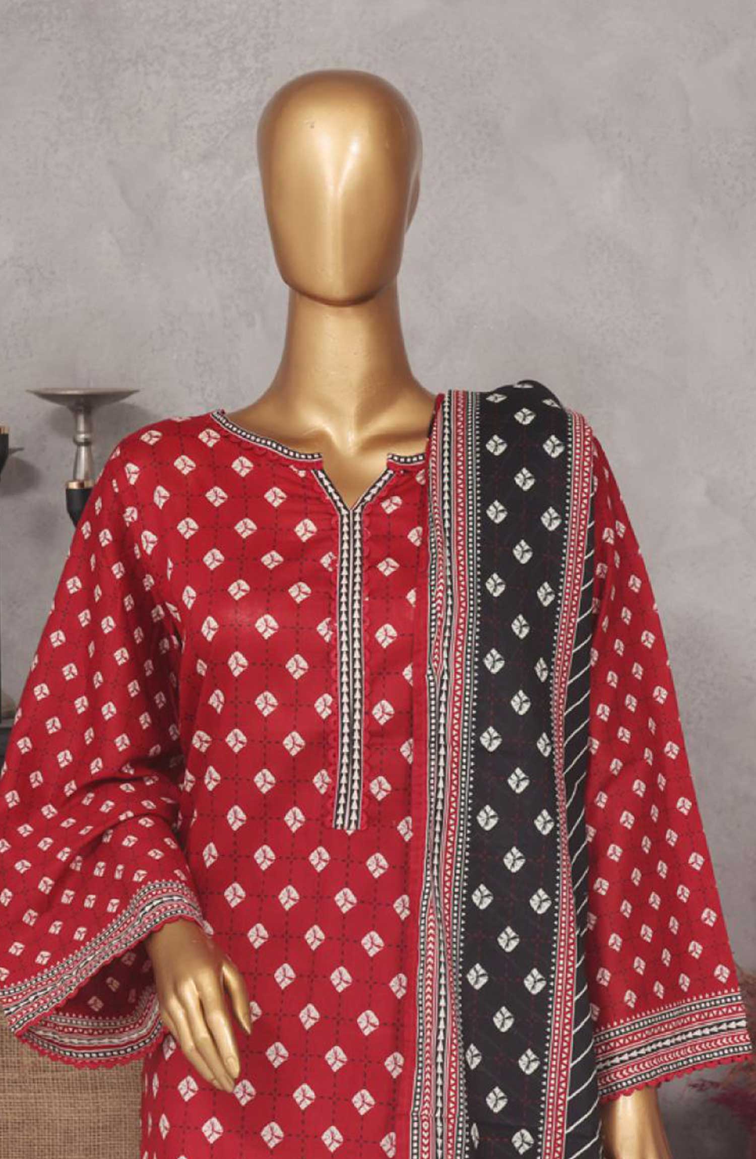 Home Bin Saeed Printed Lawn Stitched 3 Piece - SM 754 - BS25EL - Red - Summer Collection