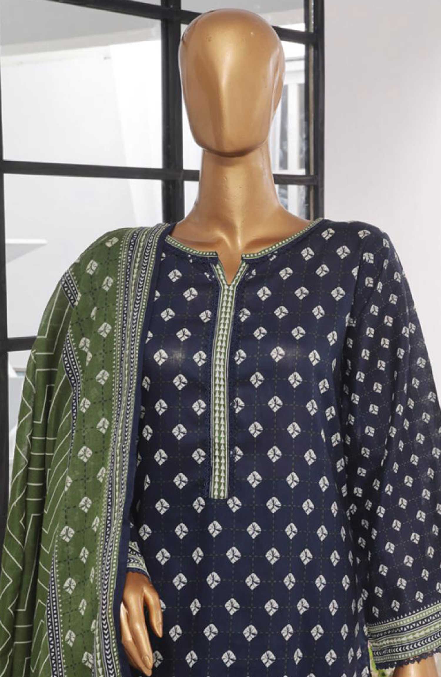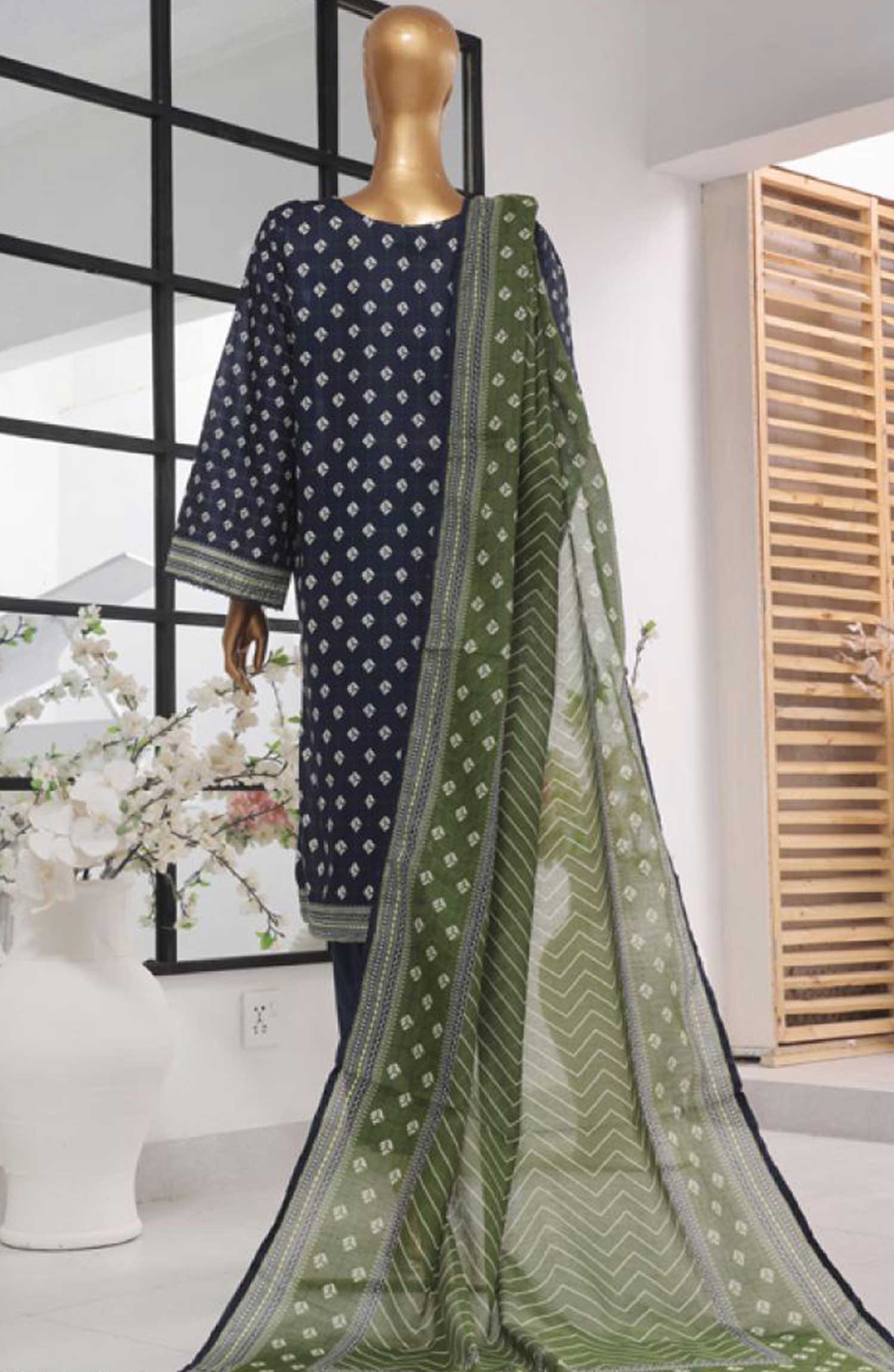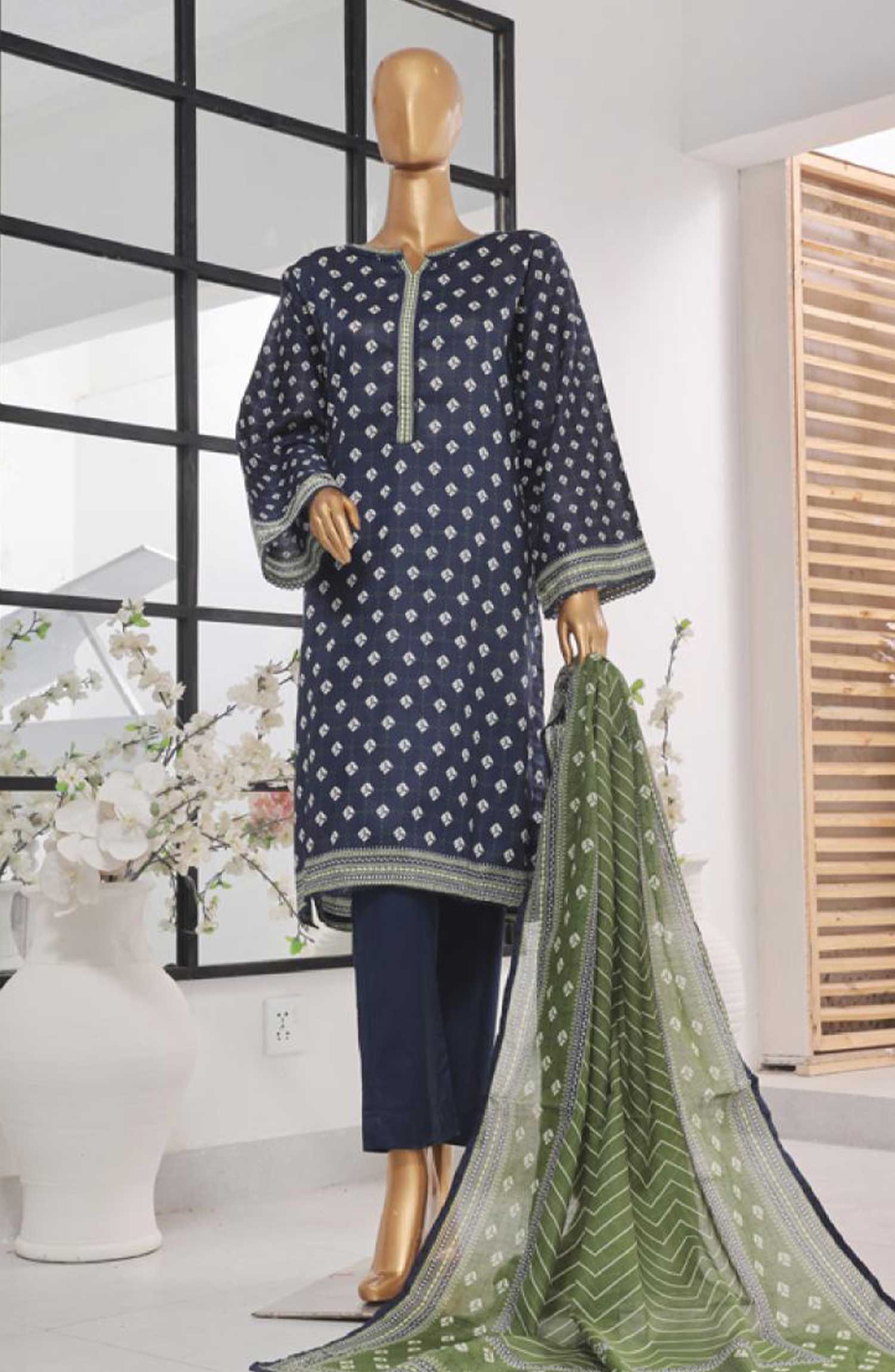 Home Bin Saeed Printed Lawn Stitched 3 Piece - SM 755 - BS25EL - Dark Blue - Summer Collection